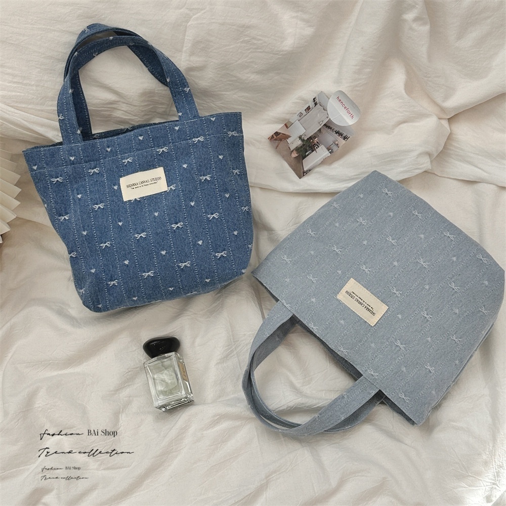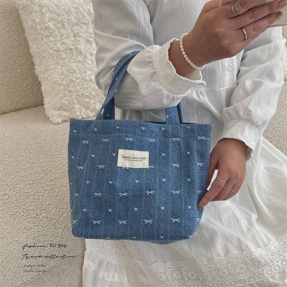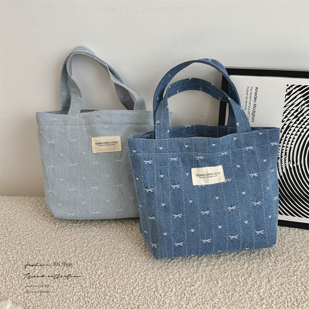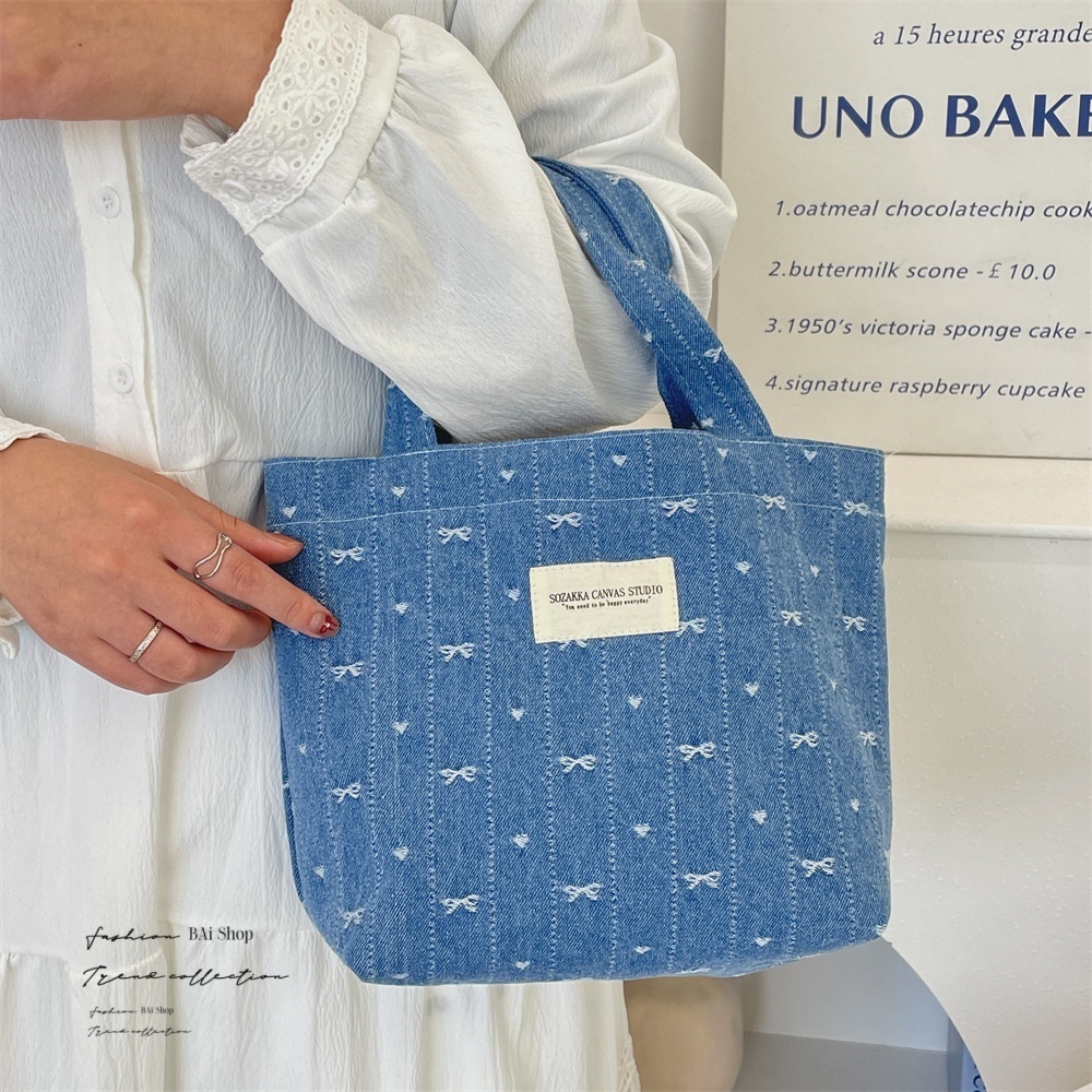BAi白媽媽 牛仔蝴蝶手提包/可愛復古便當袋小提袋-台灣現貨 隔日到貨【356155】深藍(05)|淺藍(18)BAi白媽媽 品牌旗艦店