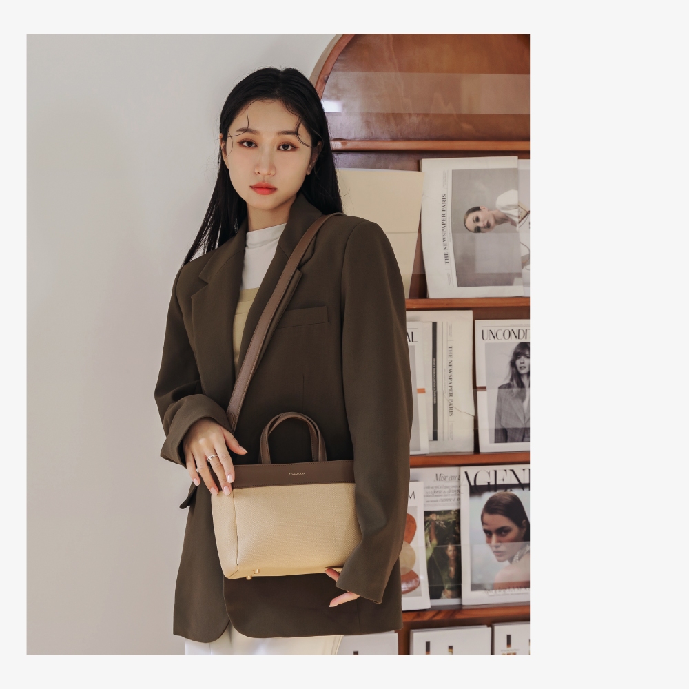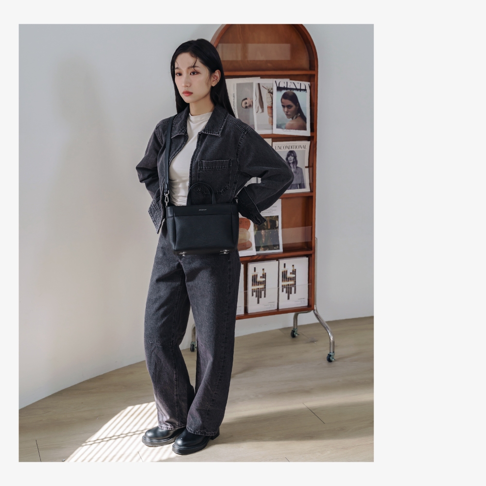 74ounce 質感拼接兩用側背包日韓經典撞色仿皮小方包兩用斜背手提包(小)[LG-1032-Q4-W]奶茶| 黑74ounce