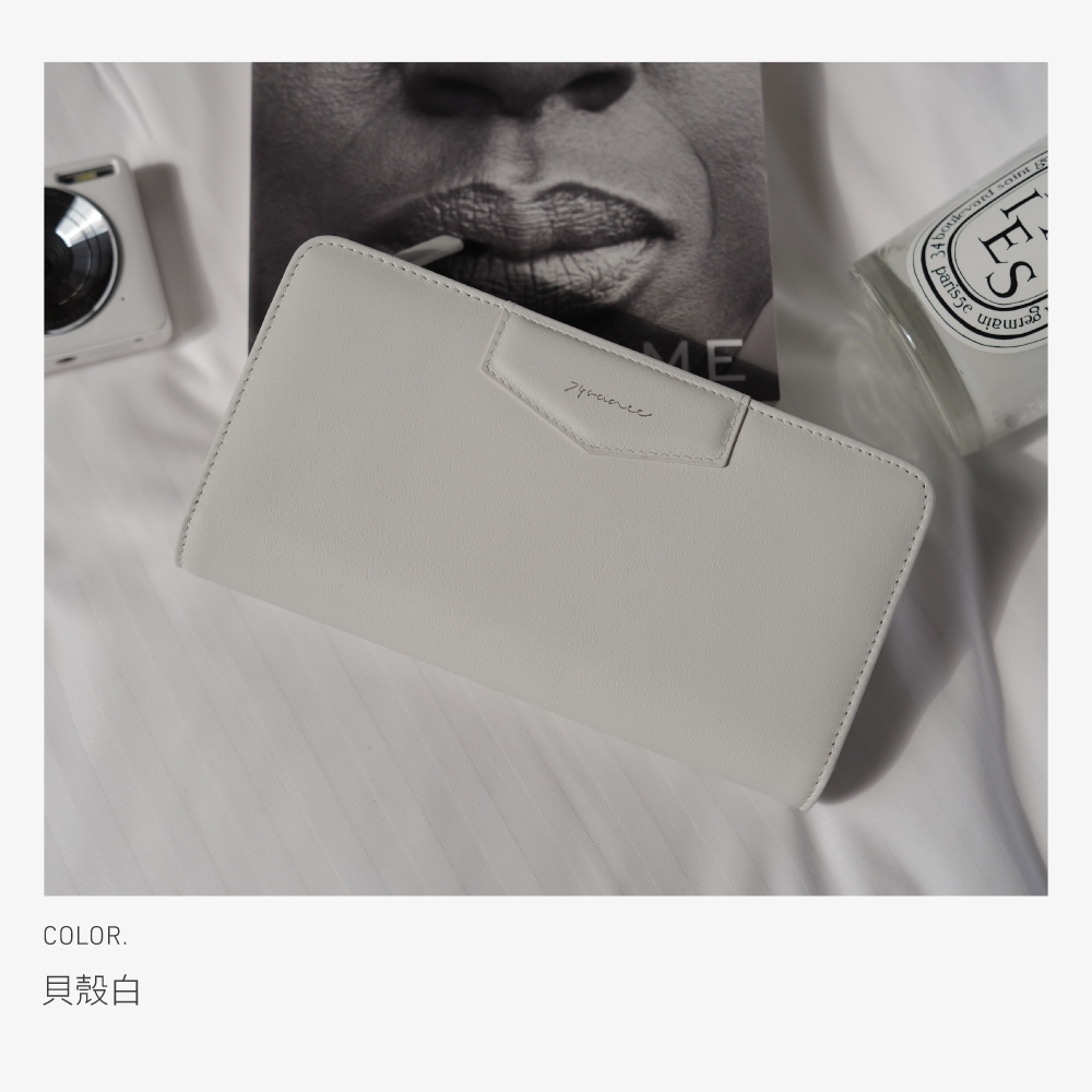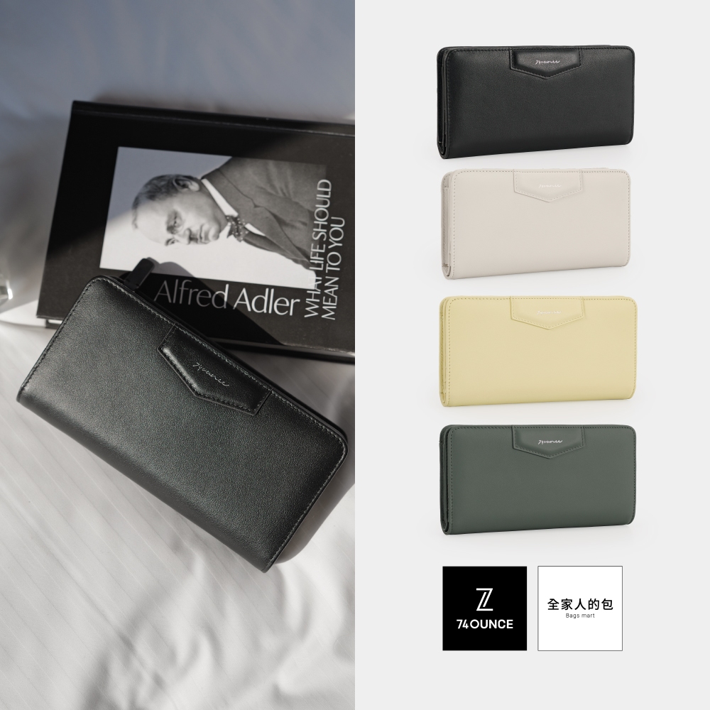 74ounce 經典皮標釦式長夾[LN-820-Q1-W]貝殼白|香草黃|煙灰綠|墨黑Long Wallets74ounce