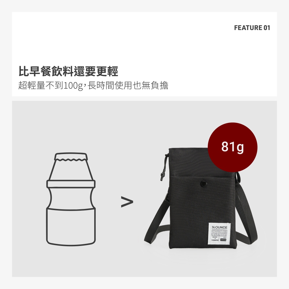 74ounce 極輕巧休閒手機側背包[TG-283-Q2-T]現貨 黑色