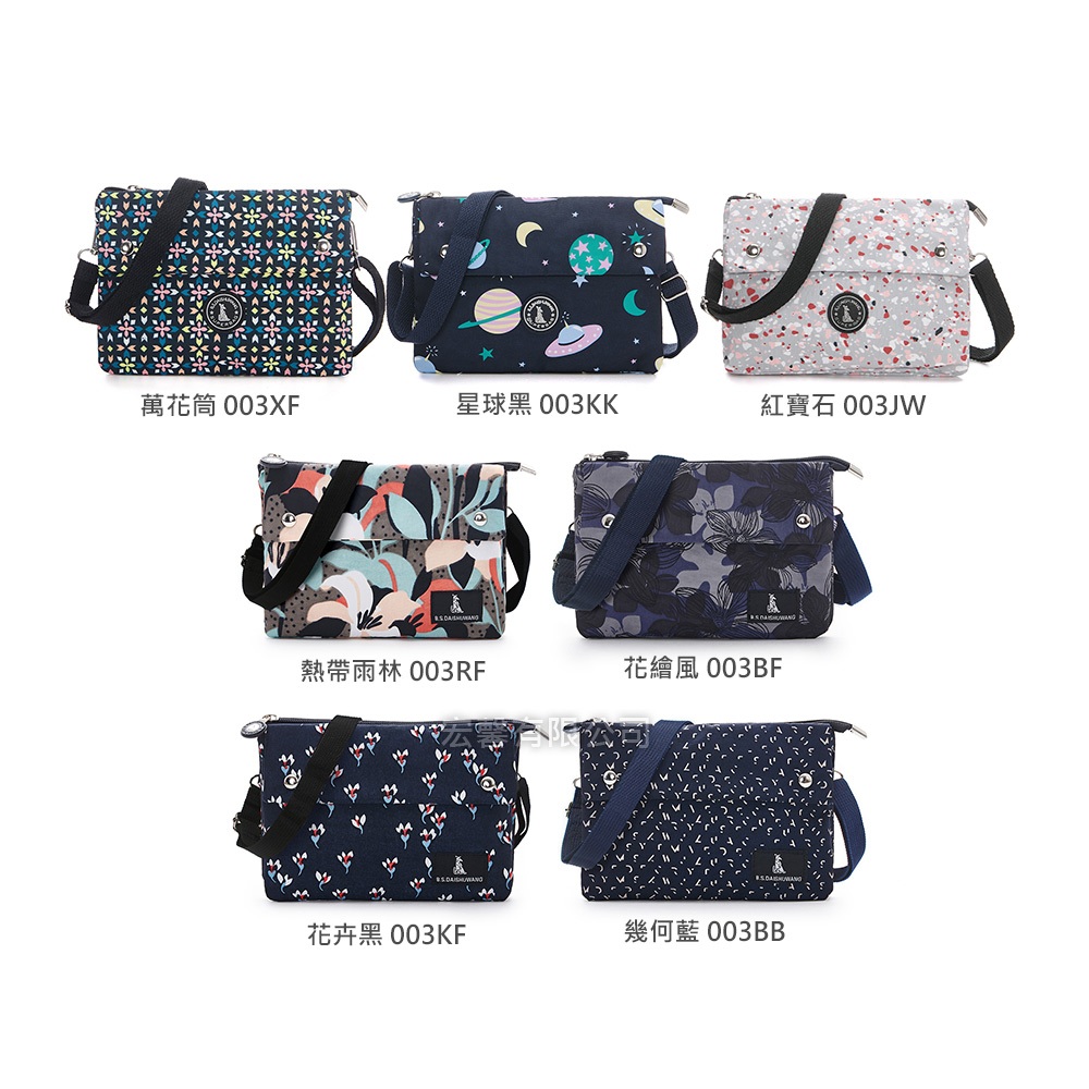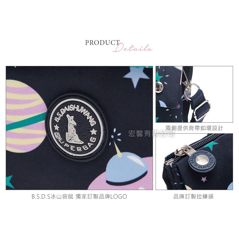 B.S.D.S冰山袋鼠 – 楓糖瑪芝 – 橫式三層斜背小包 – 共七色【003】紅寶石|星球黑|彩虹|萬花筒|花卉黑|花繪風|熱帶雨林|幾何藍B.S.D.S冰山袋鼠