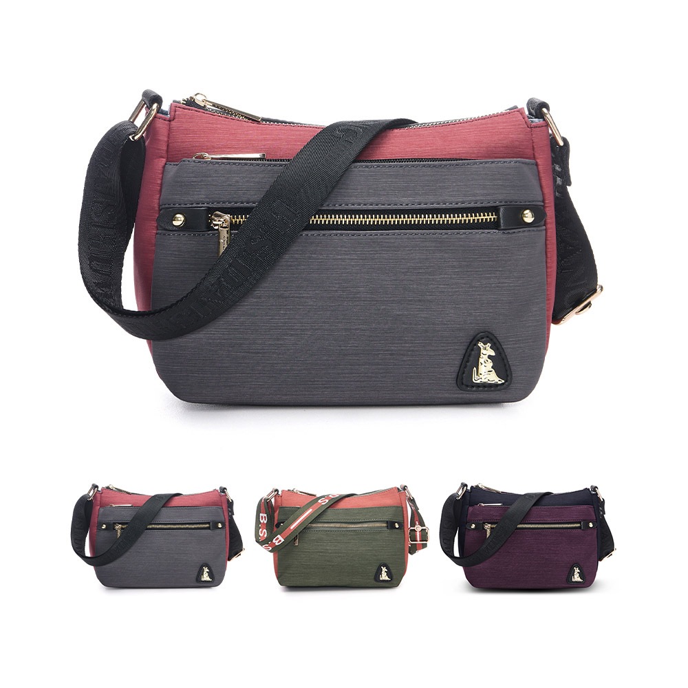B.S.D.S冰山袋鼠 – 玩色主義 – 雙色輕量多層斜背包 – 共三色【9001】甜柚綠|酒紅灰|野莓黑B.S.D.S冰山袋鼠