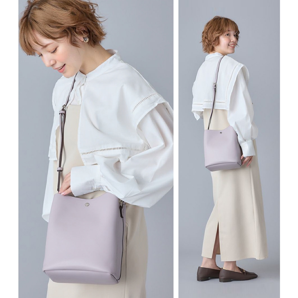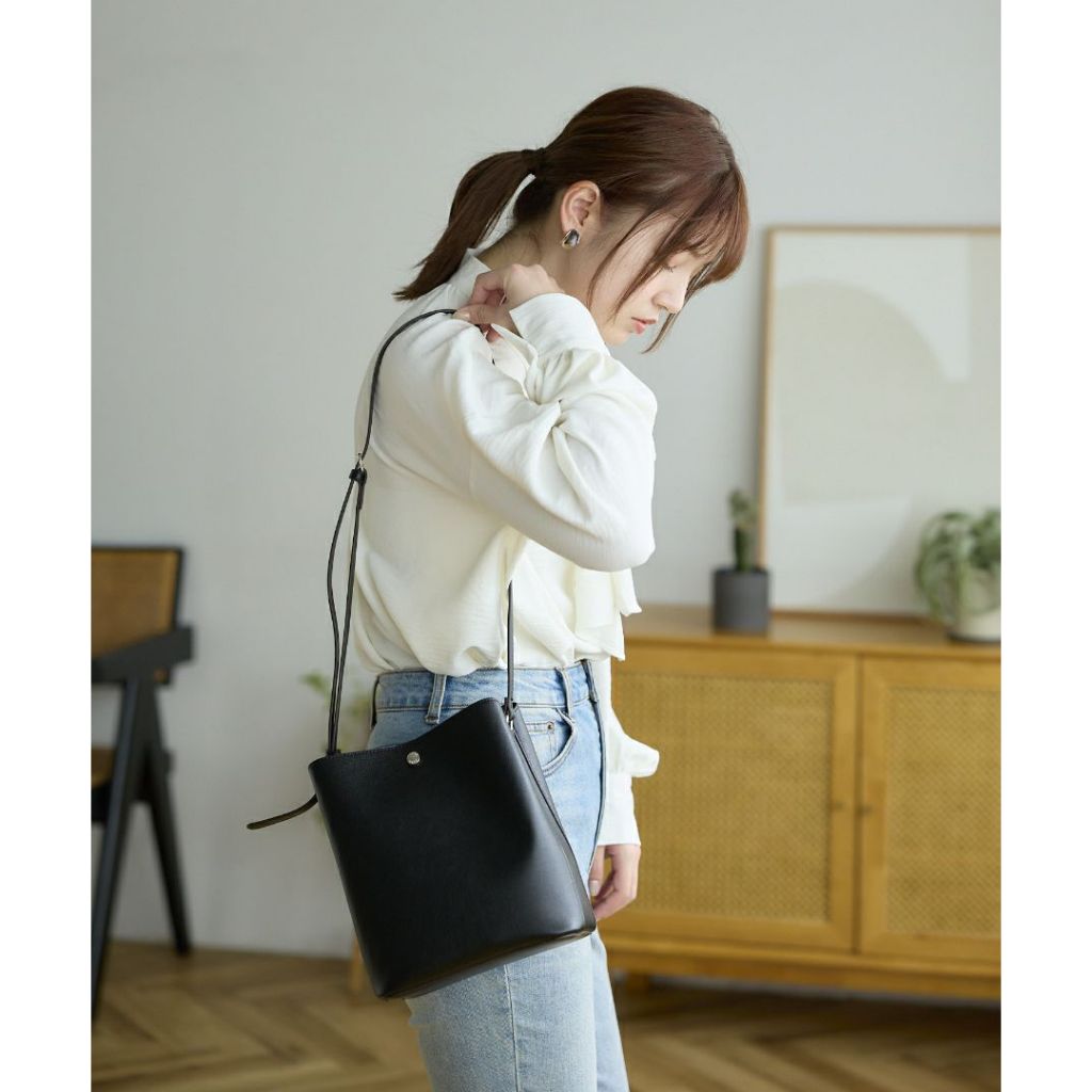 Legato Largo 驚異的輕量化 小法式簡約百搭 皮革斜背水桶包 (LG-P0116)深灰色 DGB|黑色 BKB|焦糖駝色 CAB|奶茶色 GBB|象牙白 IVB|淺灰色 LGB|薰衣草紫 LVBanello 官方旗艦店