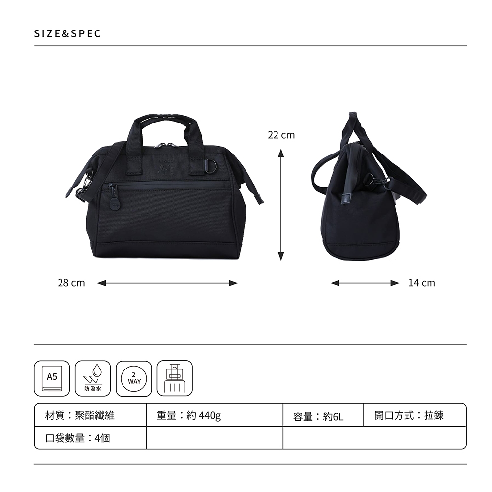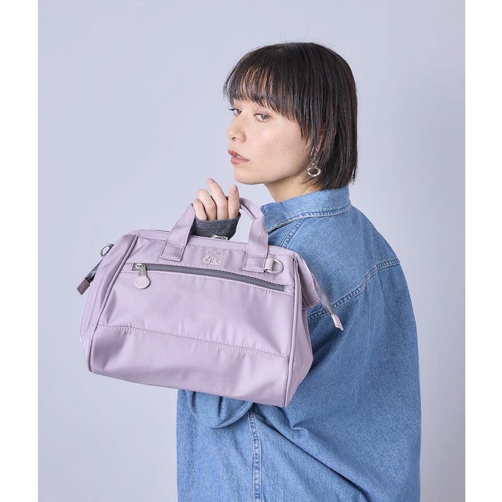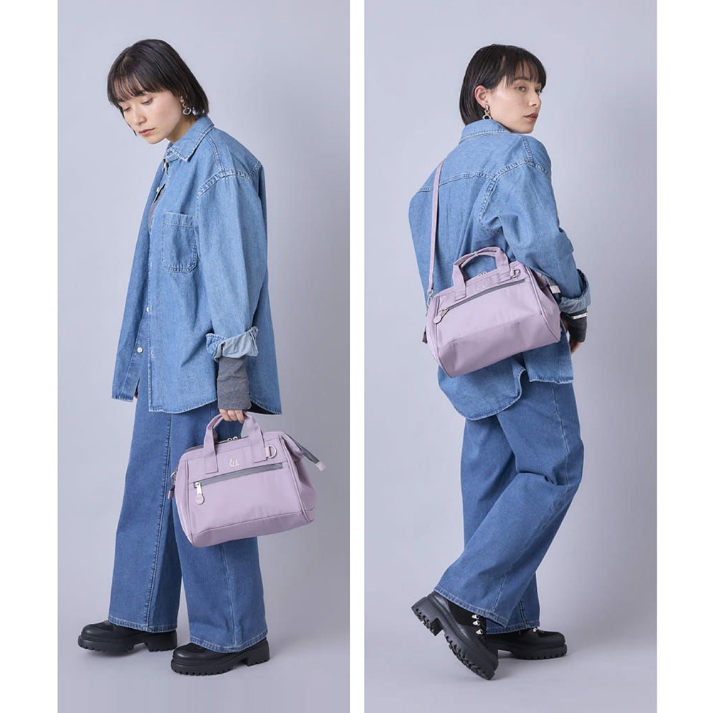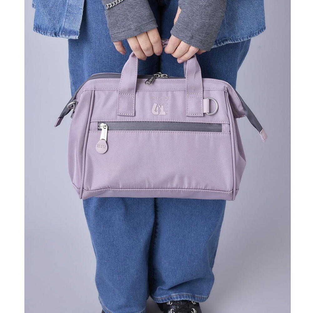 anello EXPAND6 旗艦店限定版 防潑水手提斜背兩用 口金波士頓包 small size (ATB4943)黑色 BK|淺灰x淺藍 HGY|淺紫色 LVanello 官方旗艦店