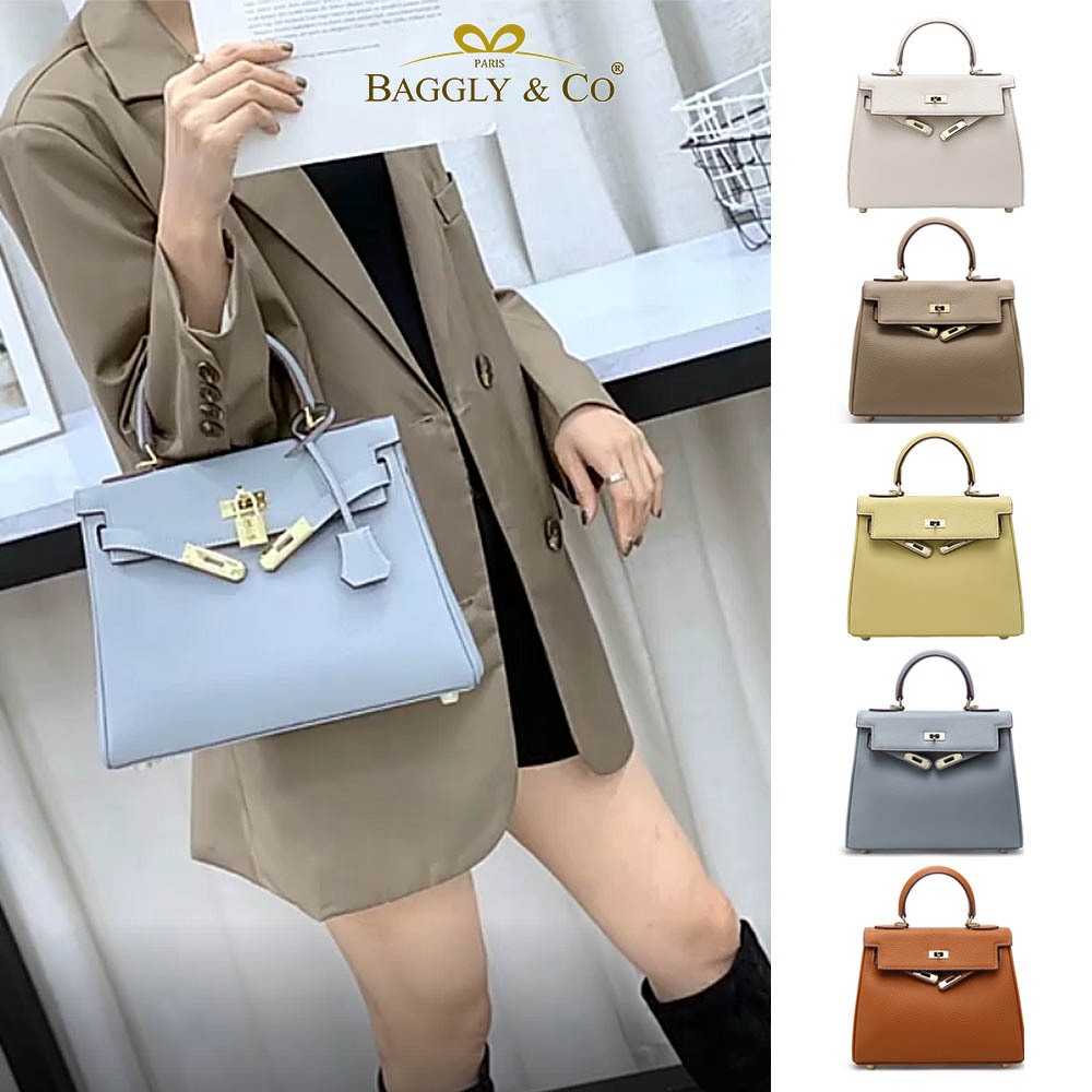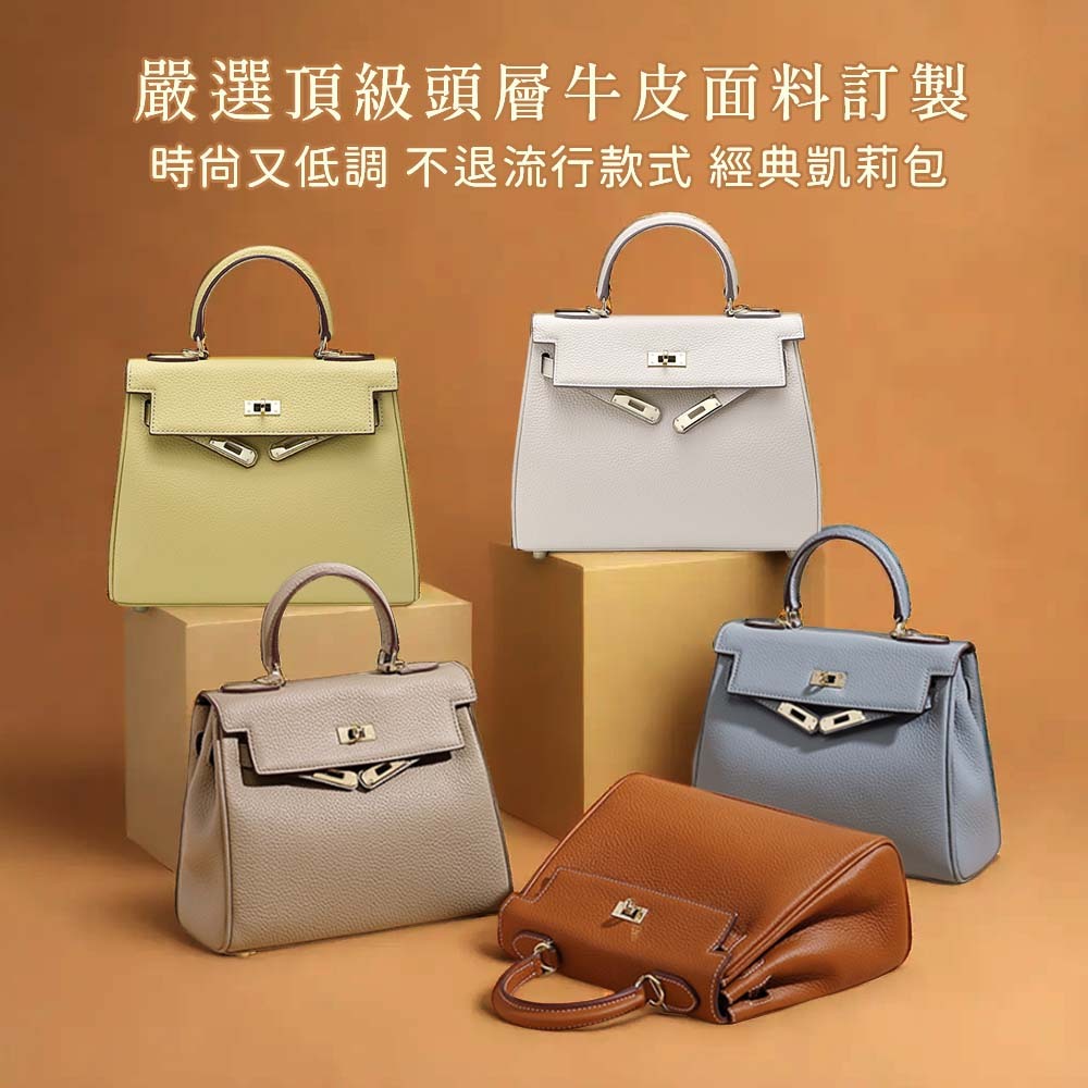 【Baggly&Co】尼斯凱莉頭層牛皮側背斜背大容量手提包 女生包包 側背包 斜背包 手提包 包包女生 牛皮包焦糖|淺藍|小雞黃|棕色|米白Baggly&Co官方旗艦店