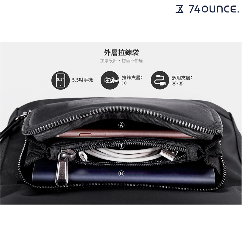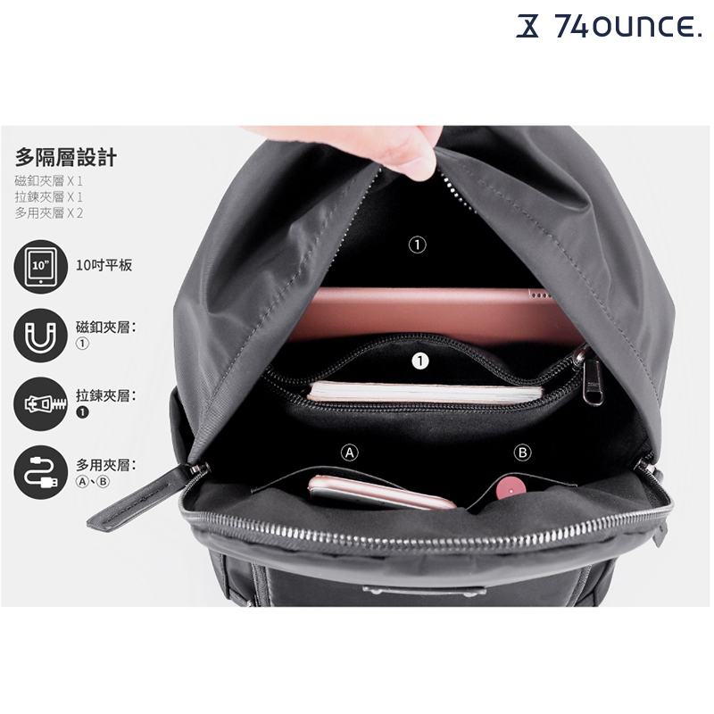 74盎司 Simple 多夾層手提斜側背包(小)[LG-977-SI-W]現貨黑色黑74ounce