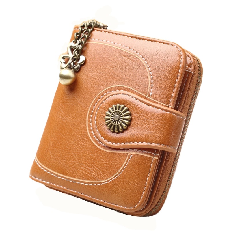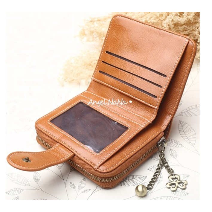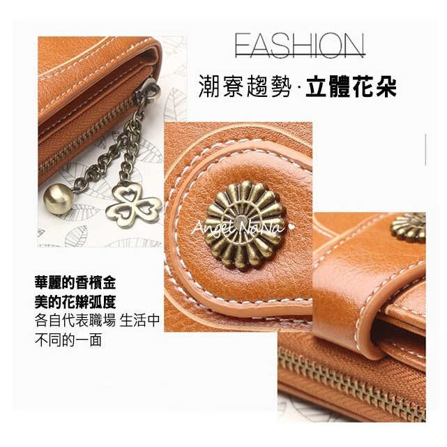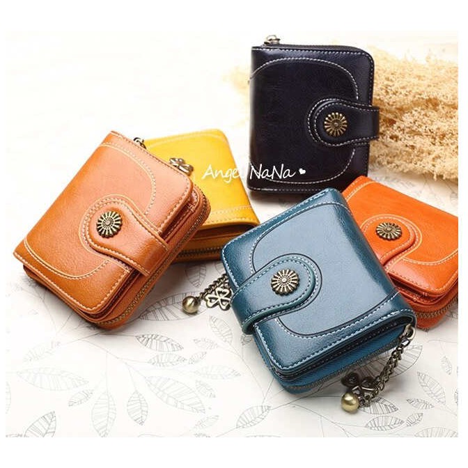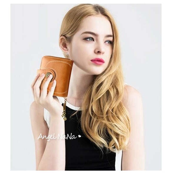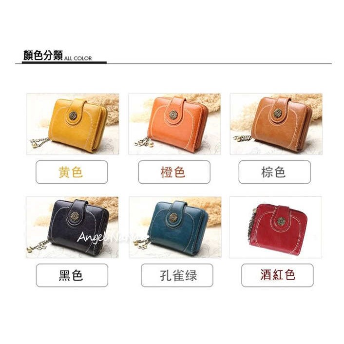 【AngelNaNa】短夾-太陽花仿油蠟合成皮高質感搭扣女士皮夾手拿包 (SMA0260)黑色-短夾|孔雀綠-短夾|棕色-短夾|橘色-短夾|酒紅-短夾|黃色-短夾Bifold & Trifold WalletsAngelNaNa官方旗艦店