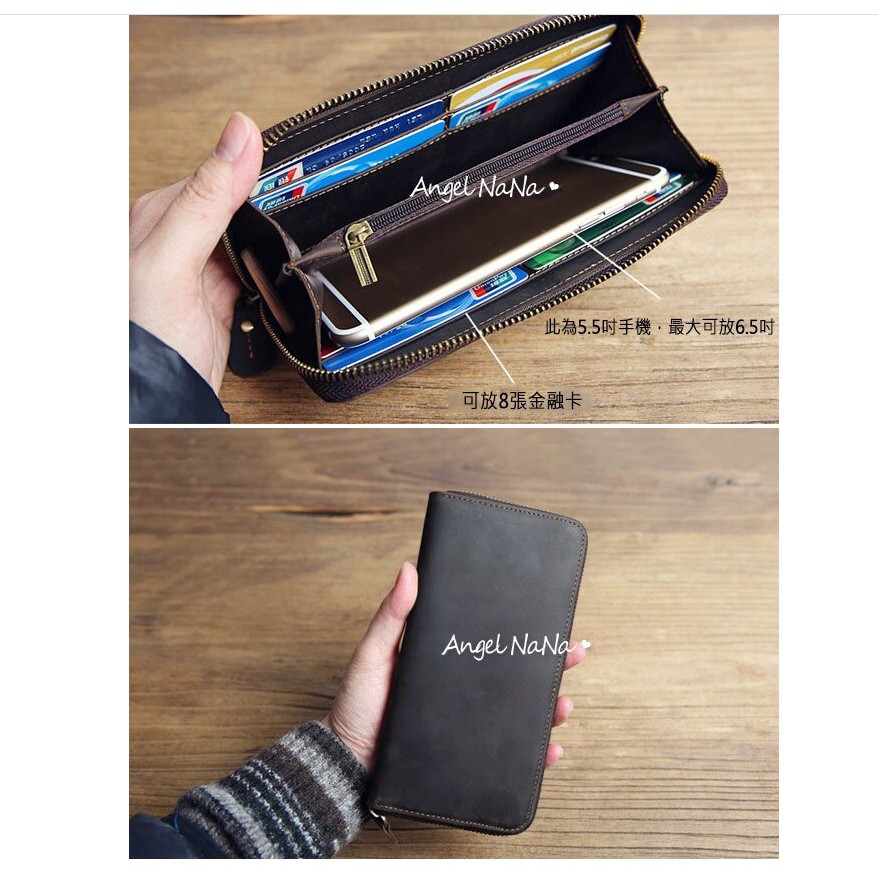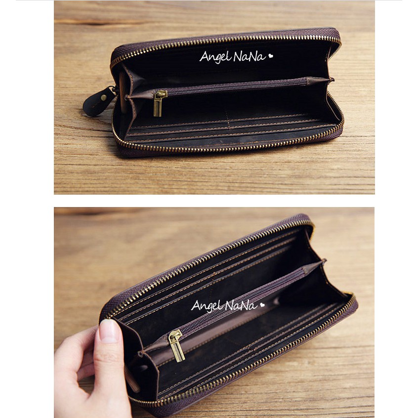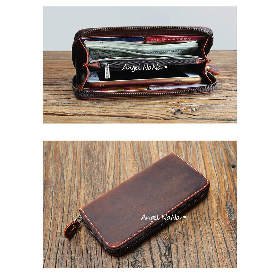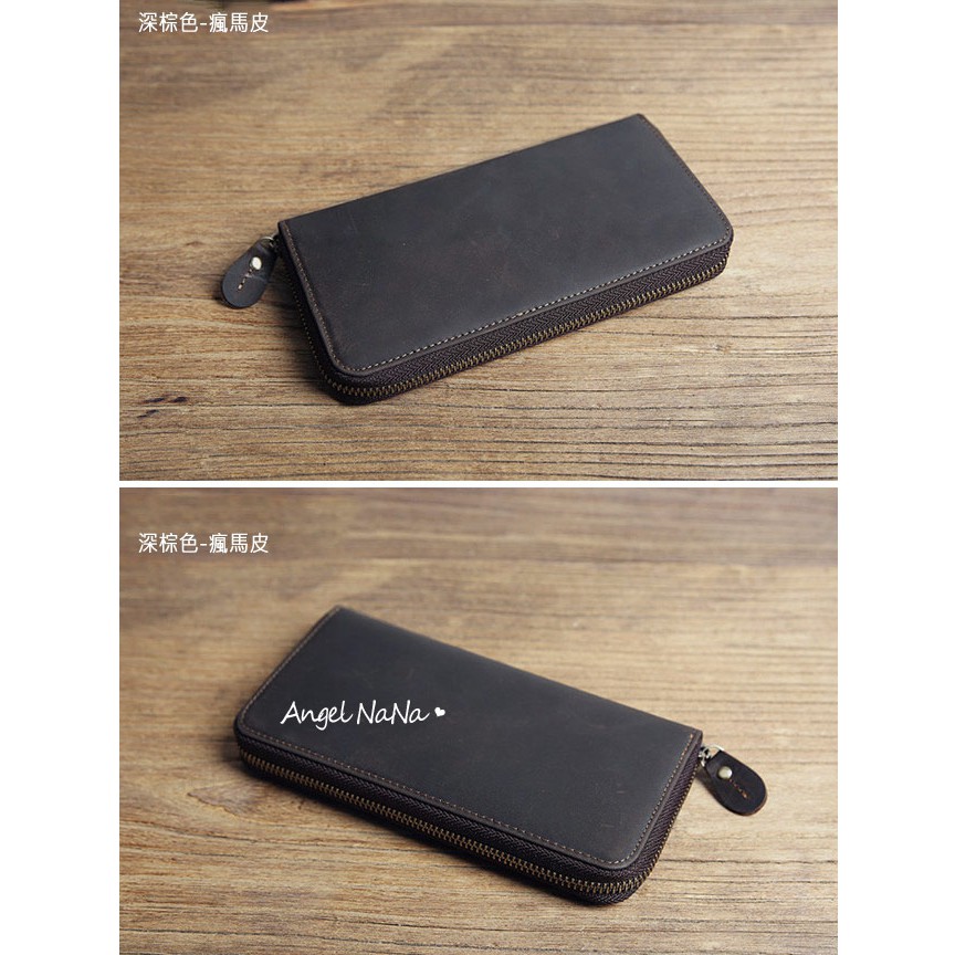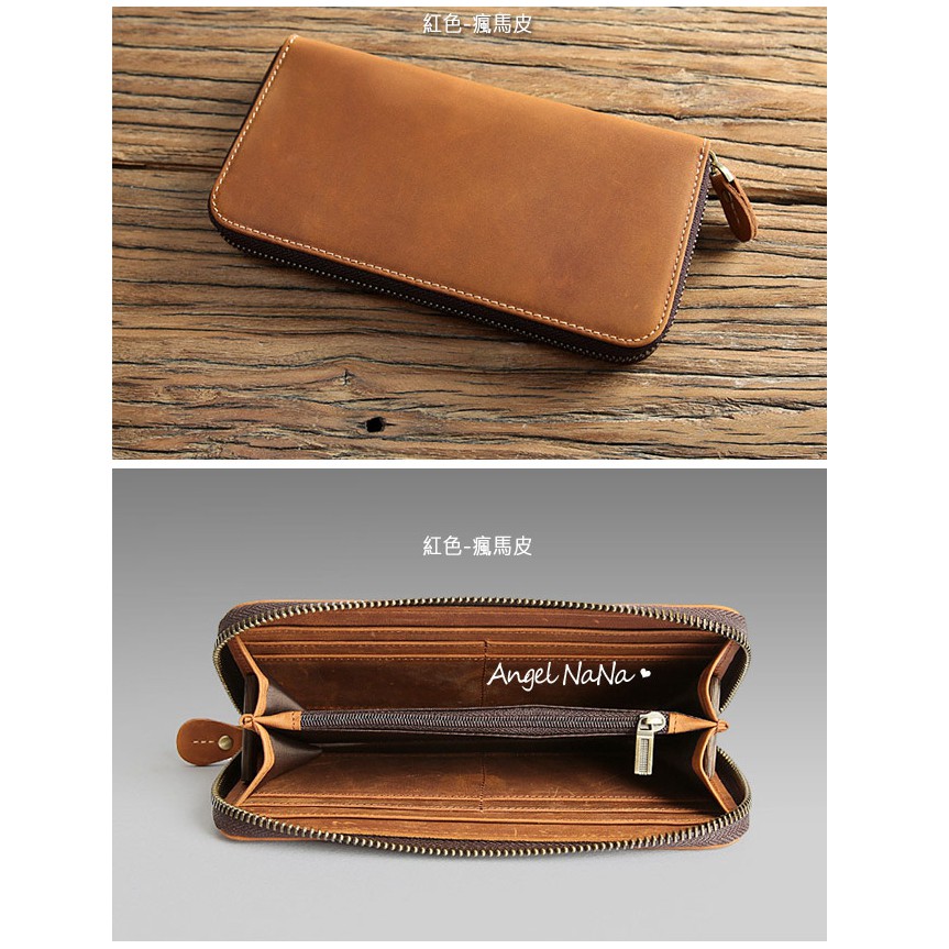 【AngelNaNa】真皮長夾-瘋馬皮頭層牛皮手工中性男女純色拉鍊皮夾(SMA0287)紅棕-瘋馬皮|深藍色-瘋馬皮|深棕-瘋馬皮|黃色-磨砂皮|黑色-瘋馬皮|紅色-瘋馬皮|綠色-瘋馬皮|黑色-平紋皮Long WalletsAngelNaNa官方旗艦店