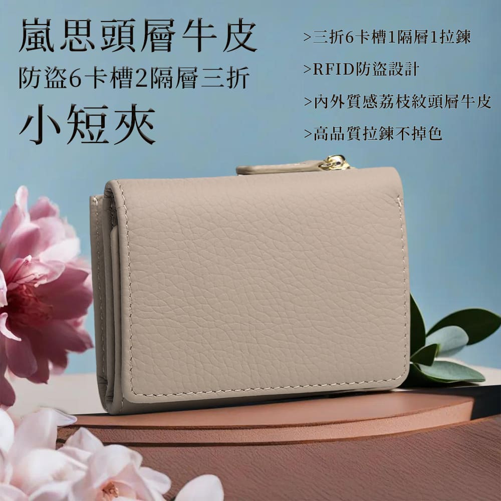 【BAGGLY&CO】嵐思頭層牛皮RFID防盜6卡槽2隔層三折小短夾(棕色/綠色/焦糖/咖啡/深灰)棕色|綠色|焦糖|咖啡|深灰Bifold & Trifold WalletsBaggly&Co官方旗艦店