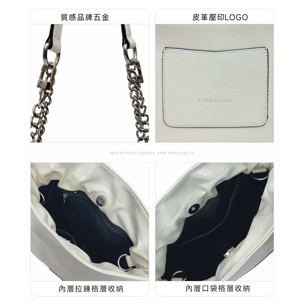 1/2princess油蠟皮革法式奶油餃鍊包【F1001】灰紫|米白-無貨勿下單1/2princess