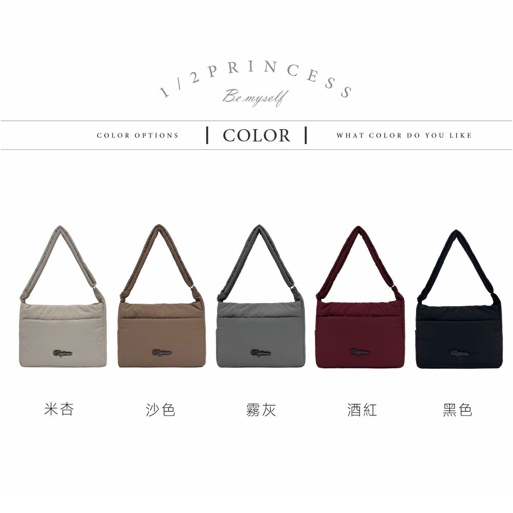 1/2princes尼龍大澎澎斜背包【A5008】米杏 |沙 |酒紅 |黑 |霧灰 1/2princess