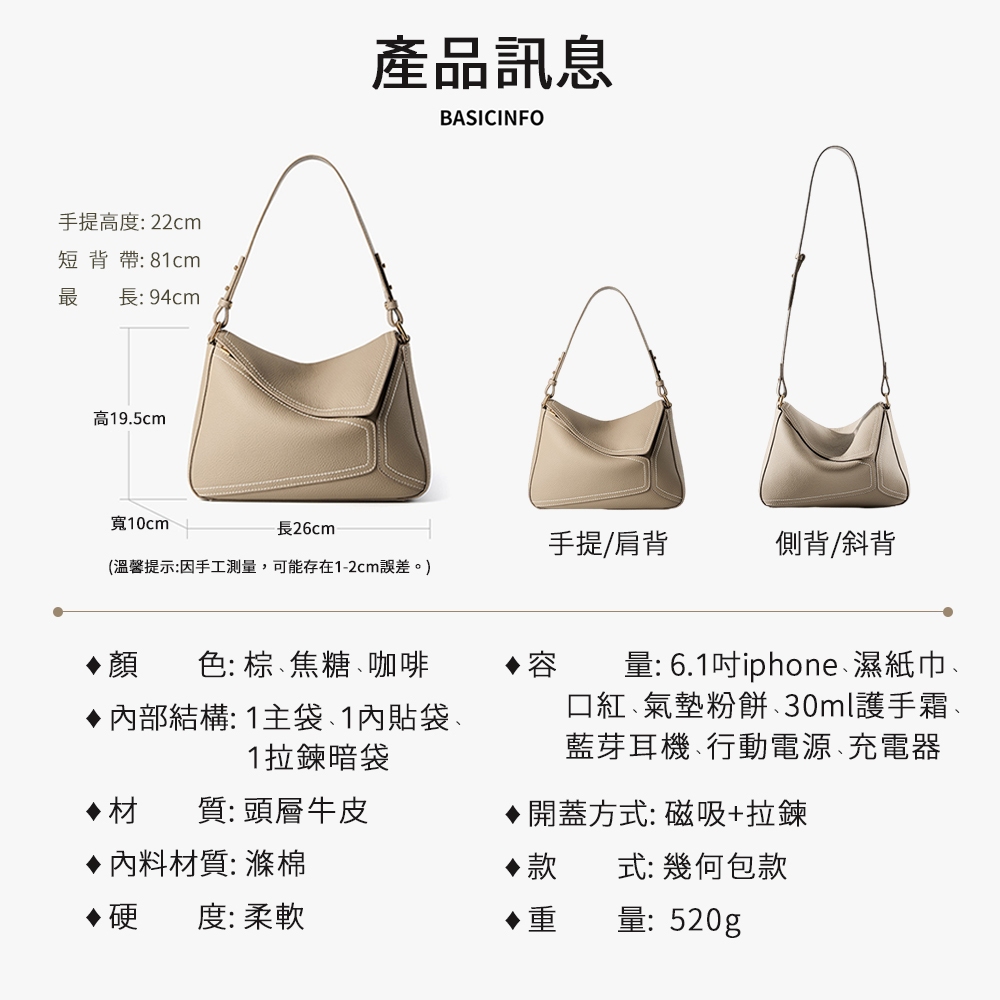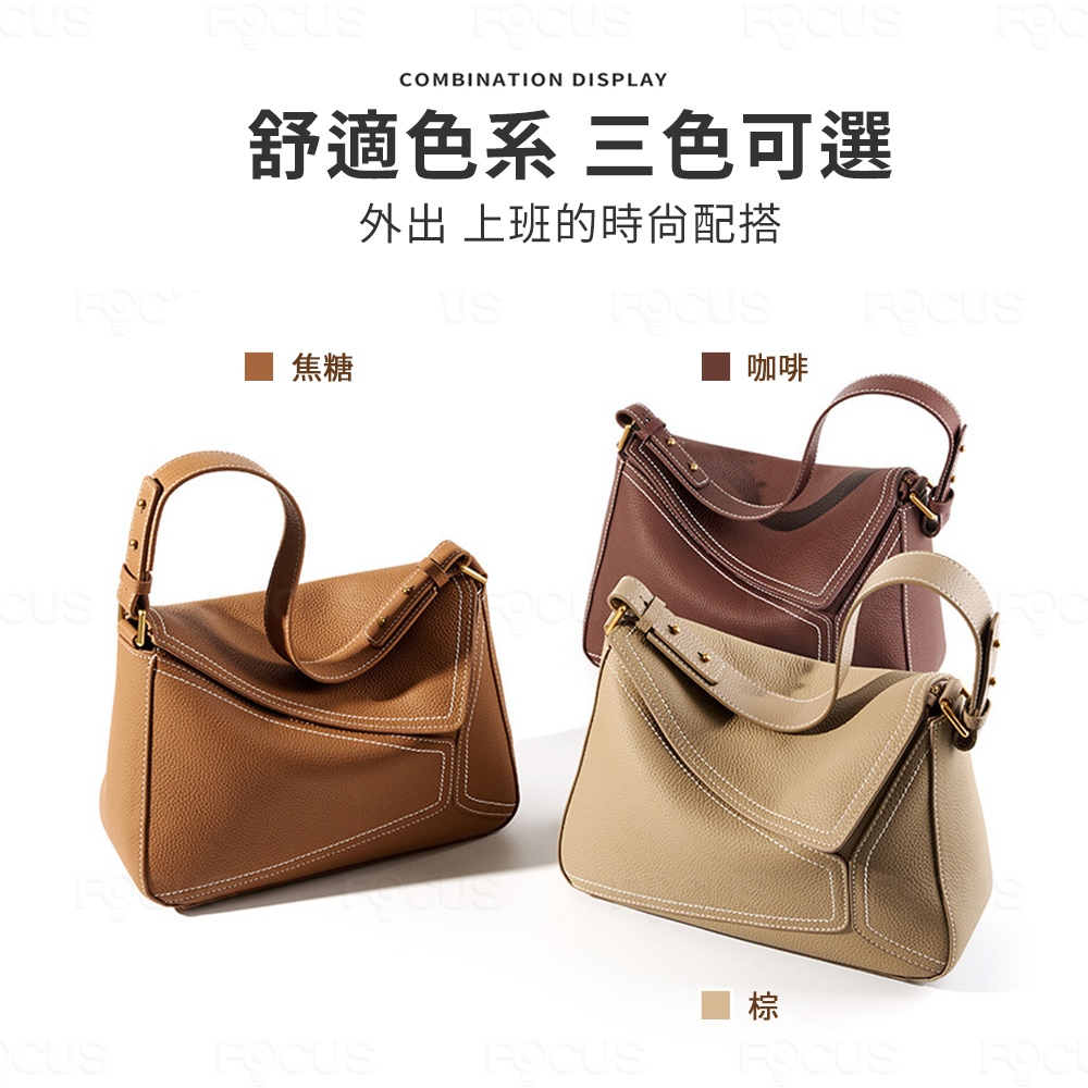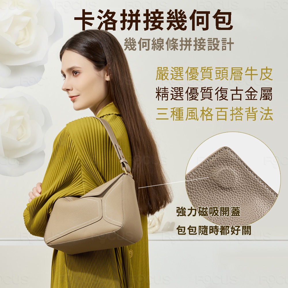 【BAGGLY&CO】卡洛頭層牛皮拼接幾何包肩背包斜背包手提包(棕/焦糖/咖啡) 幾何包 女生包包 包包女生 肩背 斜背棕|焦糖|咖啡Baggly&Co官方旗艦店