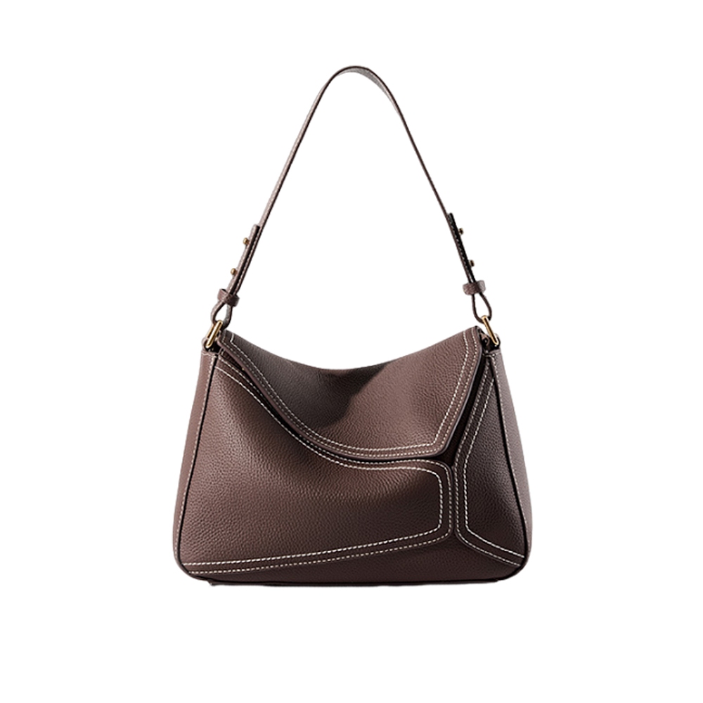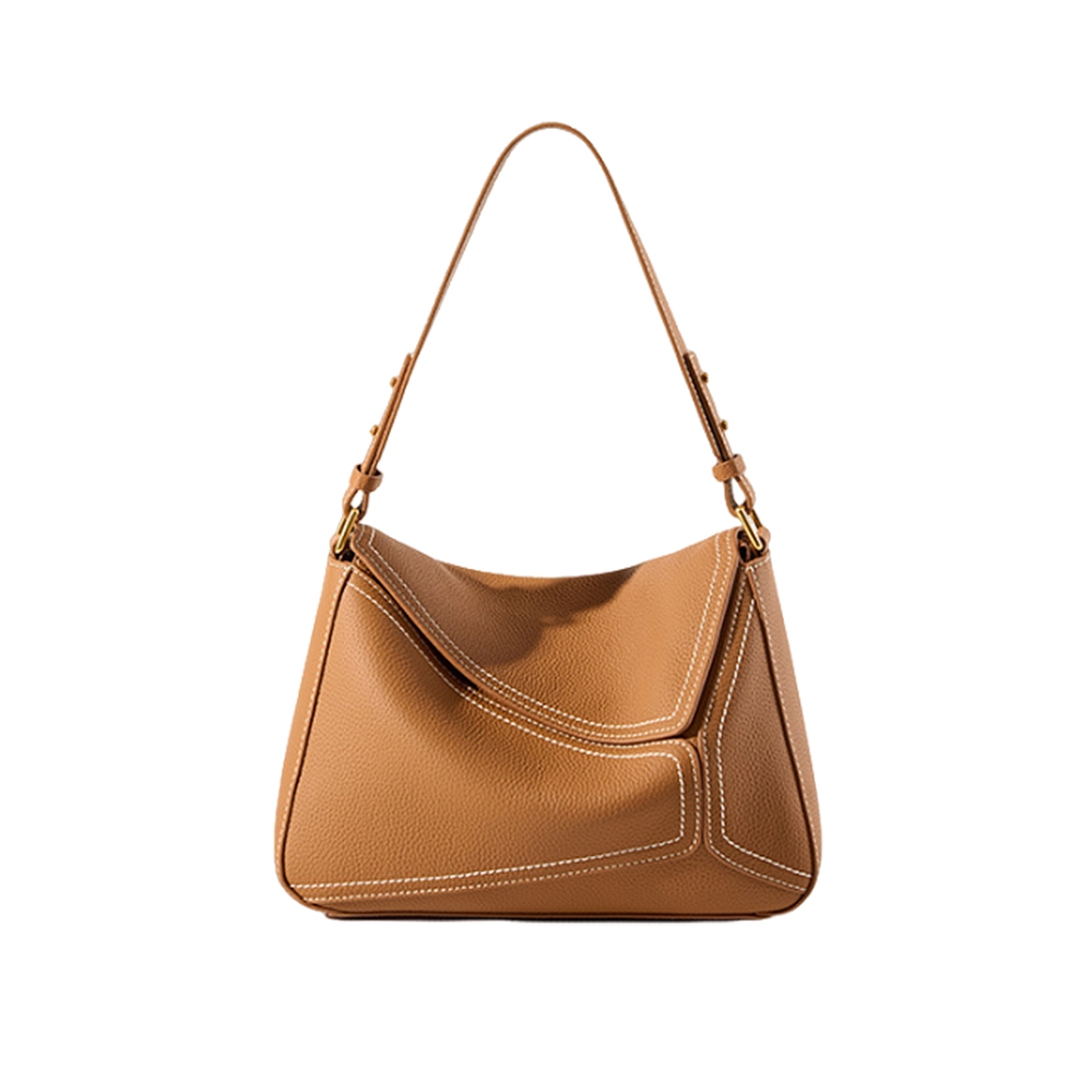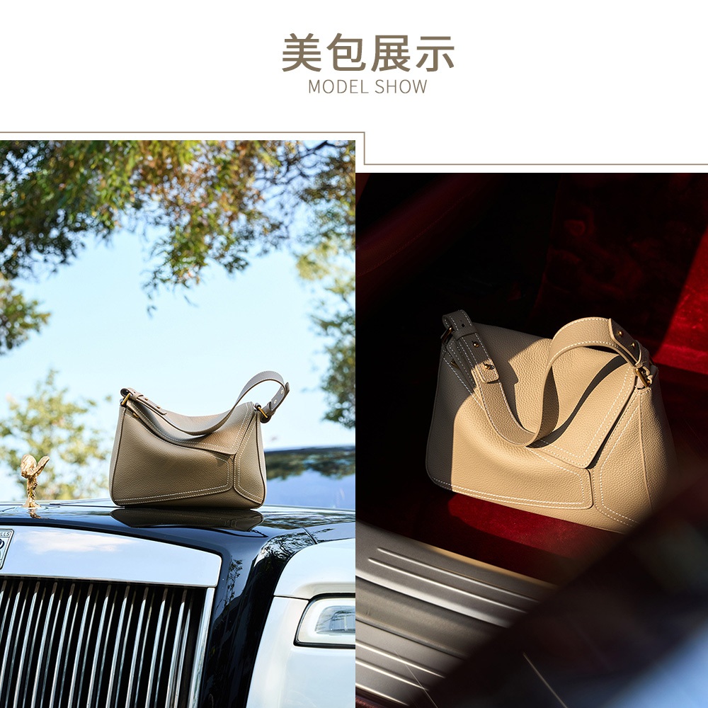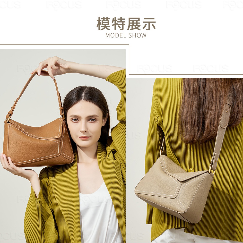 【BAGGLY&CO】卡洛頭層牛皮拼接幾何包肩背包斜背包手提包(棕/焦糖/咖啡) 幾何包 女生包包 包包女生 肩背 斜背棕|焦糖|咖啡Baggly&Co官方旗艦店