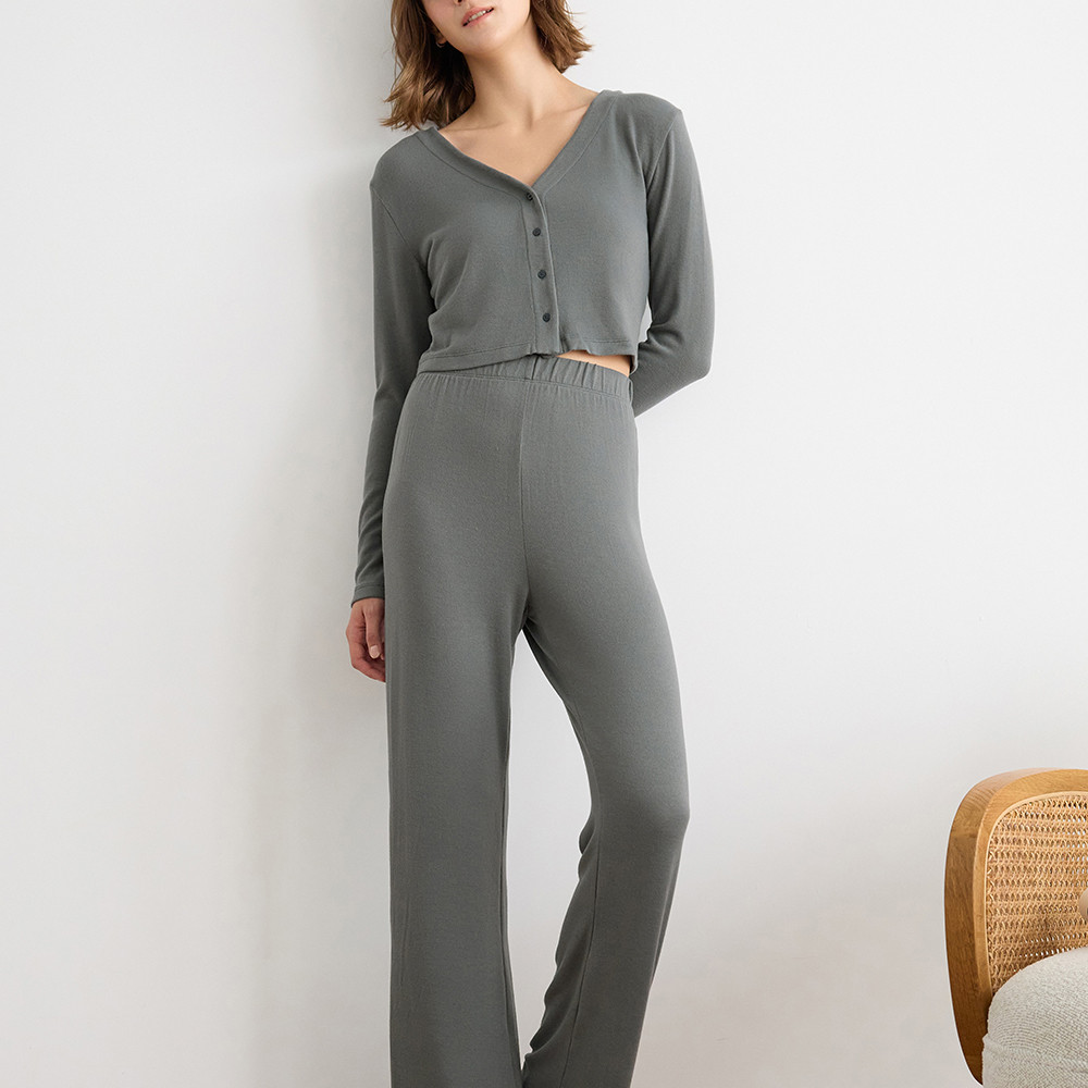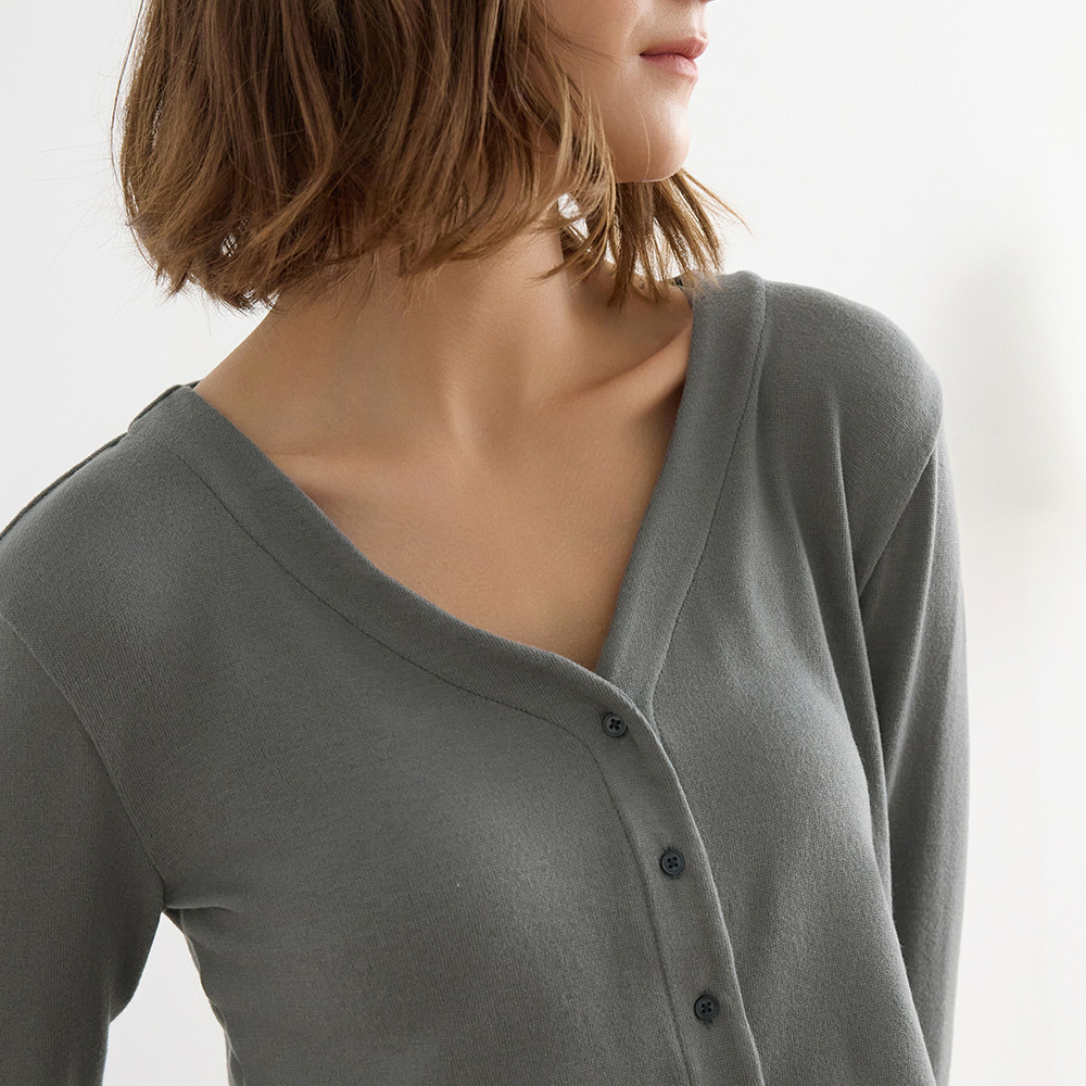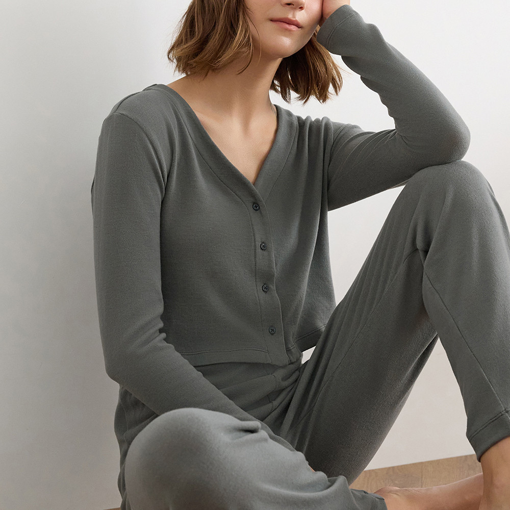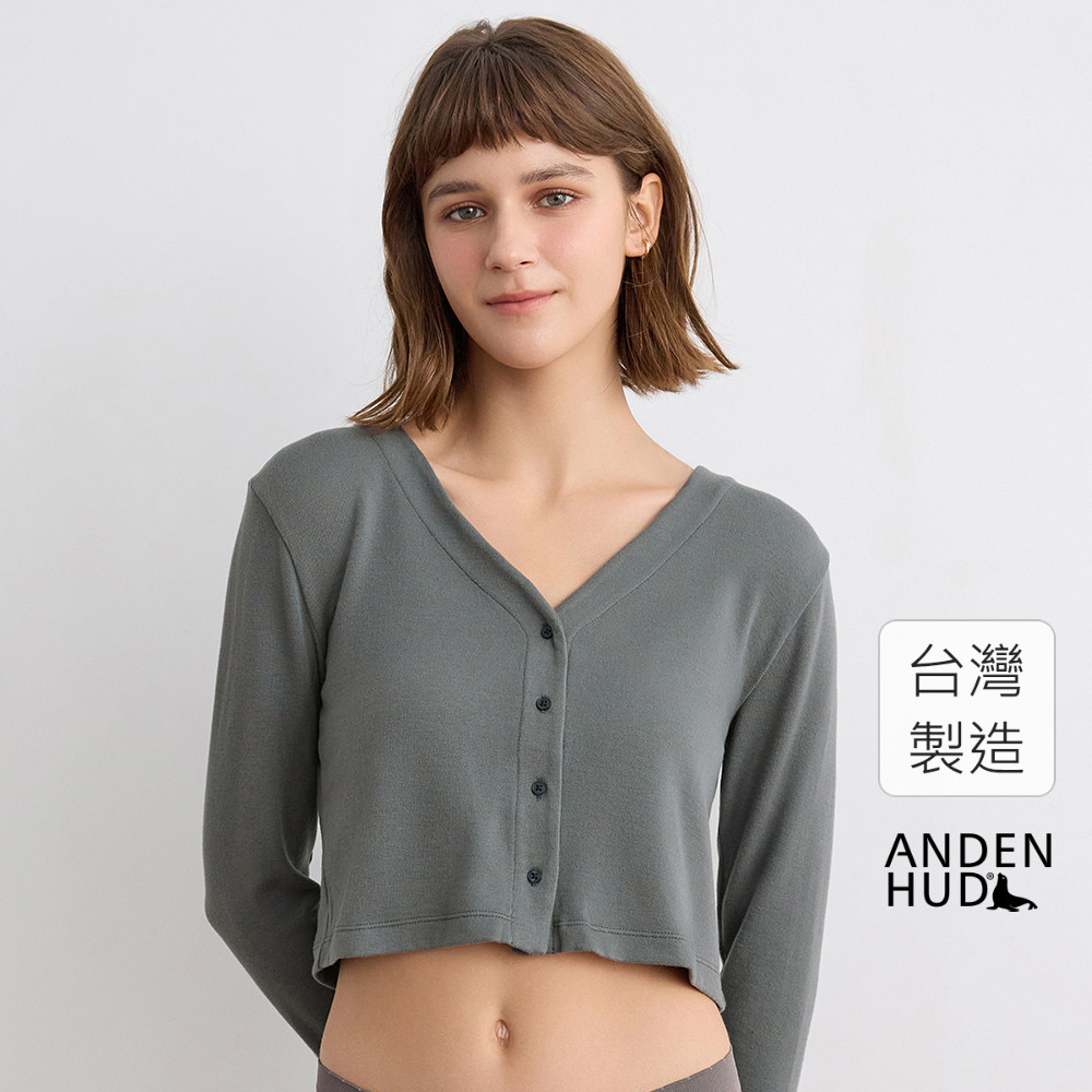 【Anden Hud】上衣_Travel memory.縫釦造型短版睡衣(鐵灰藍) 台灣製S|M|L|XLPajamasAnden Hud 台灣製內著 官方旗艦店