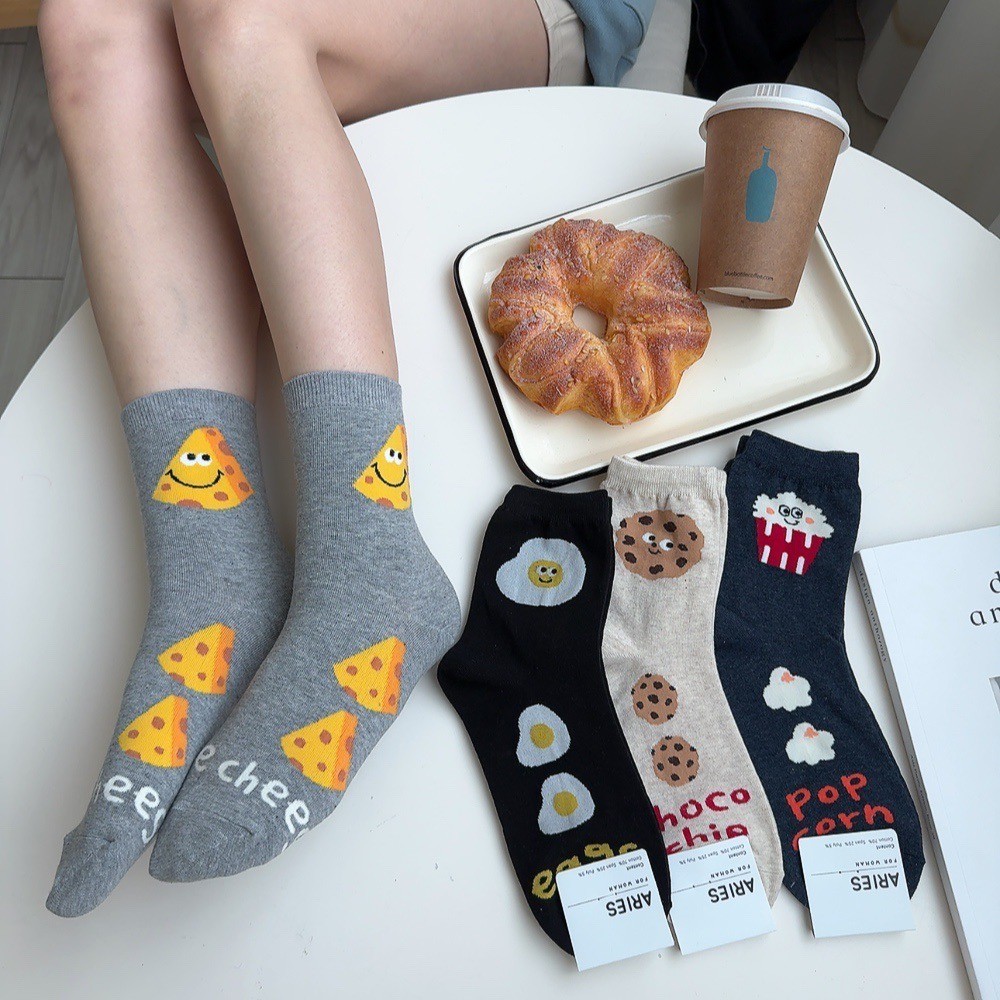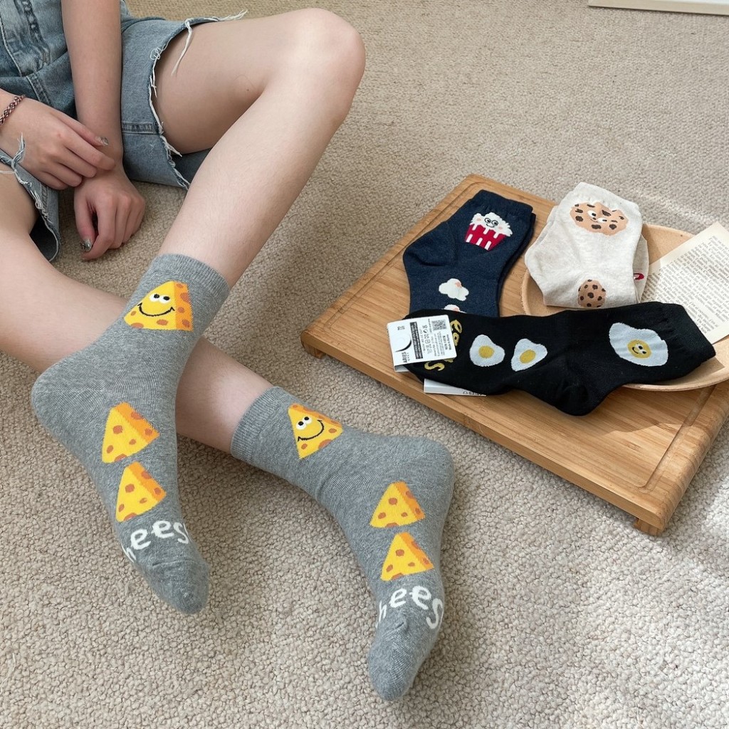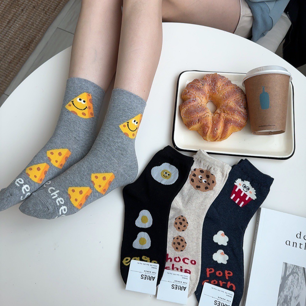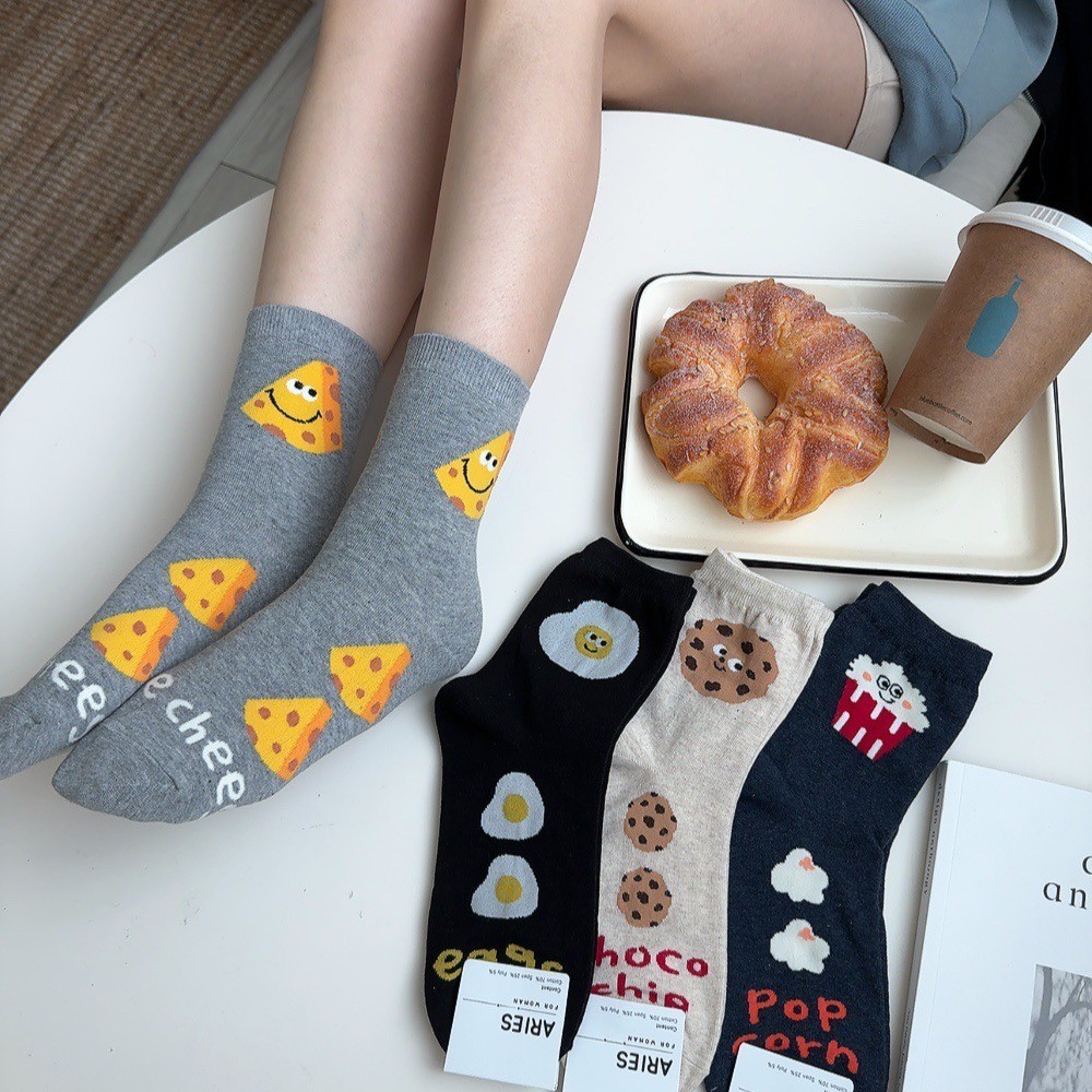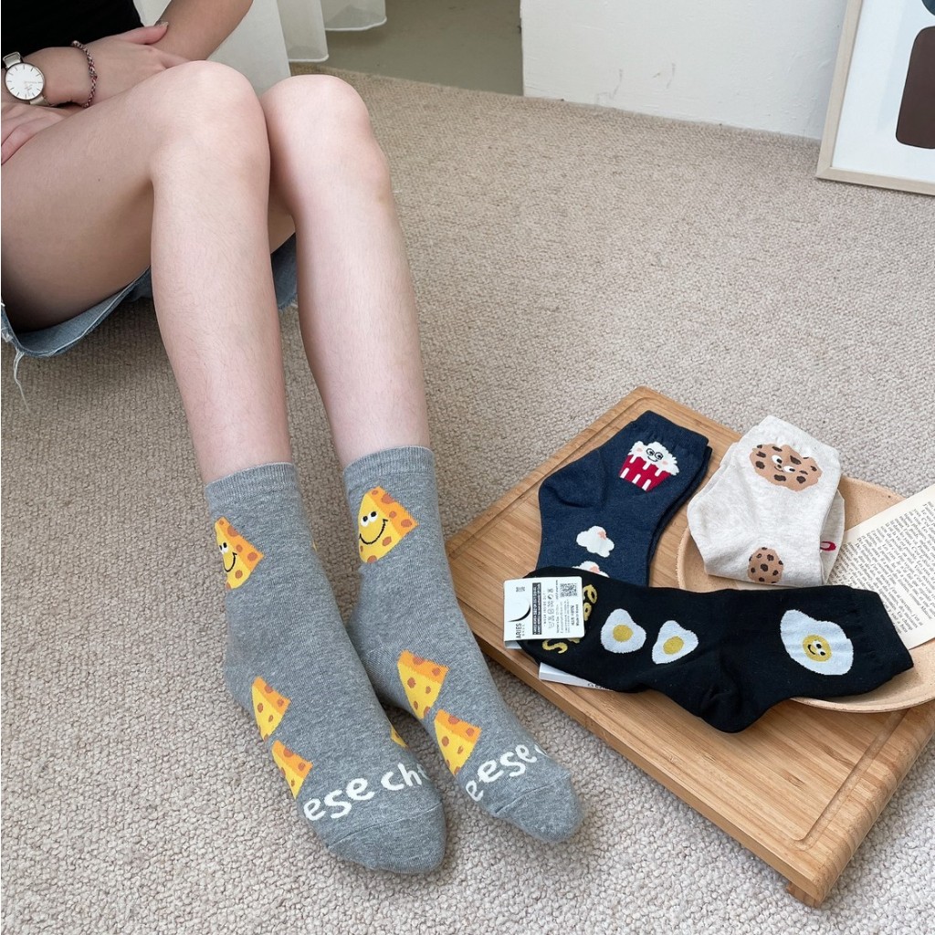 Anyshop韓國襪 食物系列 食物襪 荷包蛋 餅乾 起司 正韓襪 女孩襪 中筒襪 可愛襪子 食物短襪 03901