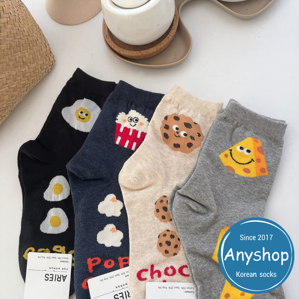 Anyshop韓國襪 食物系列 食物襪 荷包蛋 餅乾 起司 正韓襪 女孩襪 中筒襪 可愛襪子 食物短襪 03901深藍色爆米花【03901】|米色餅乾【03901】|灰色起司【03901】|黑色荷包蛋【03901】SocksAnyshop韓國襪專賣 | 零售 | 團購 | 批發