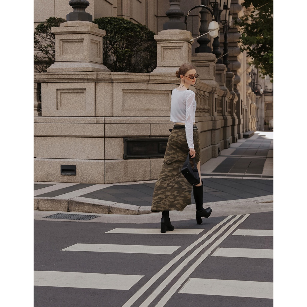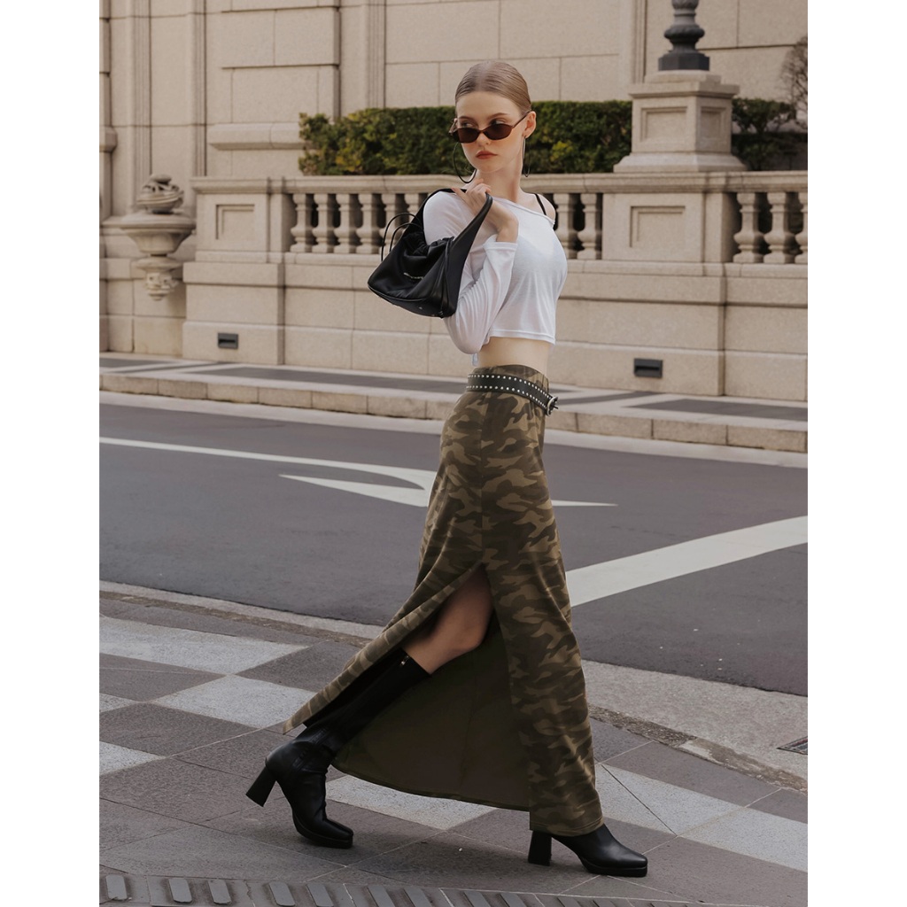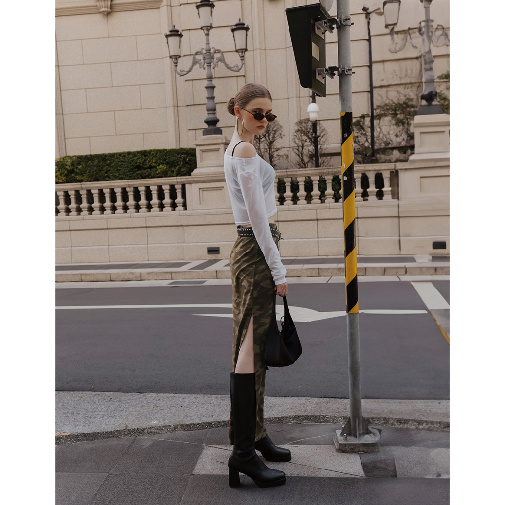 AIR SPACE 側開衩迷彩直筒長裙(軍綠) 女裝 現貨軍綠,S|軍綠,M|軍綠,LAIR SPACE
