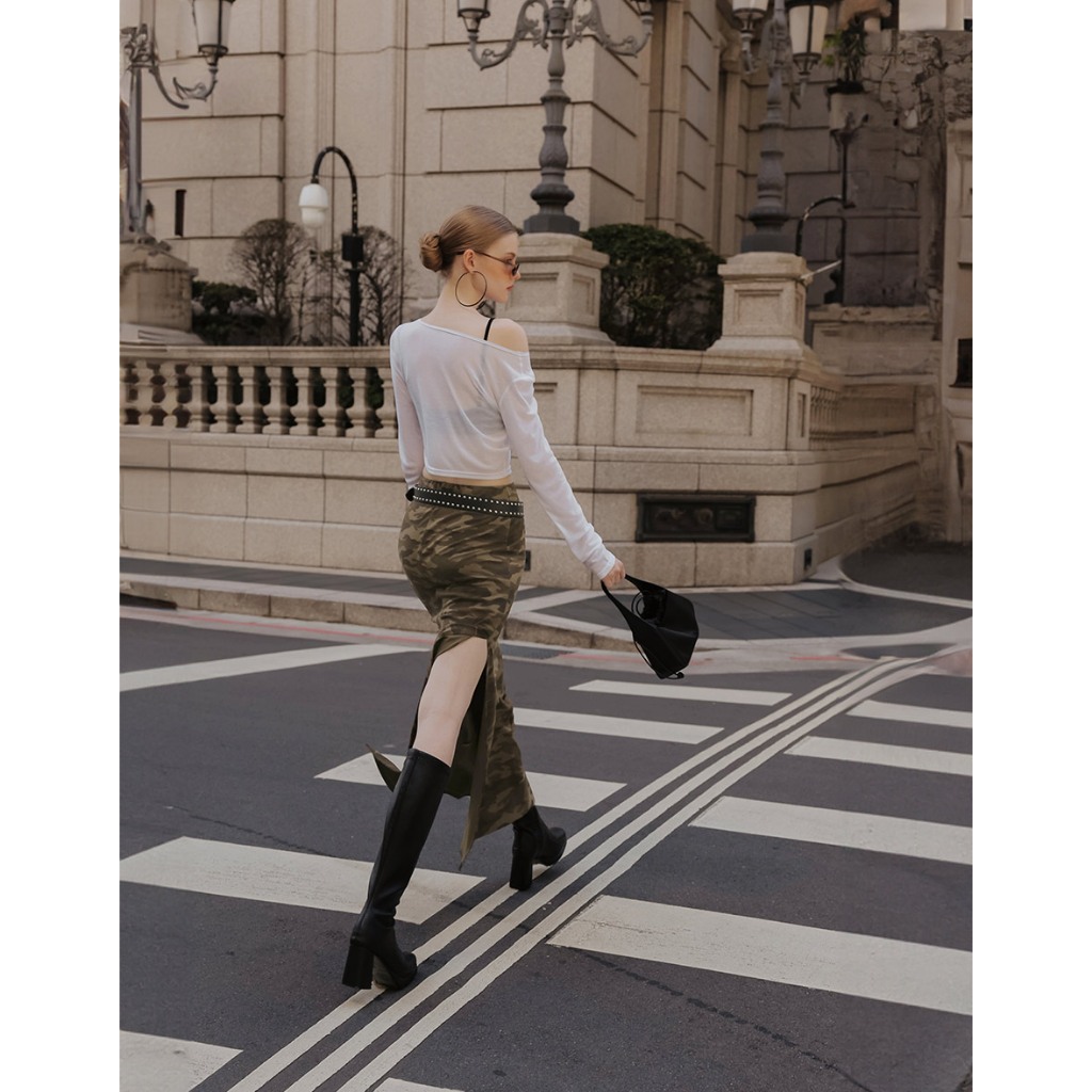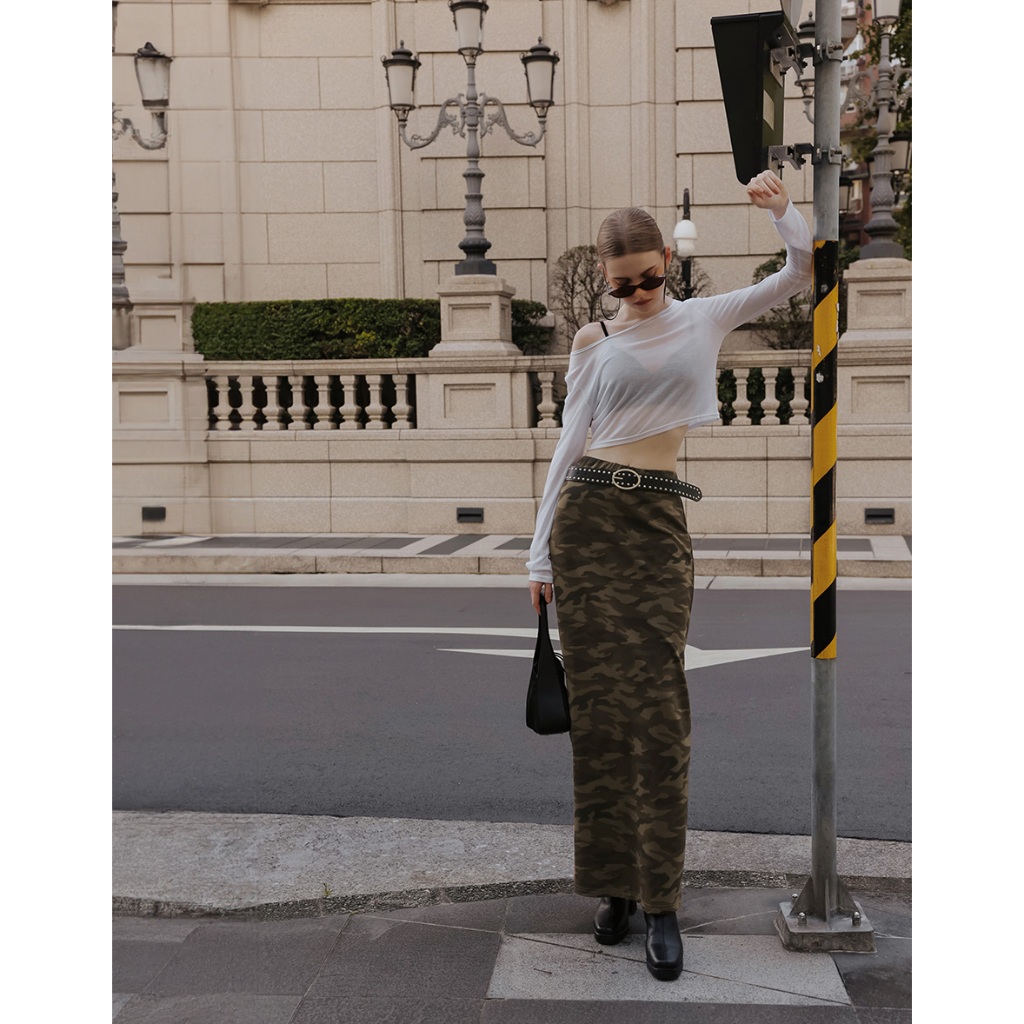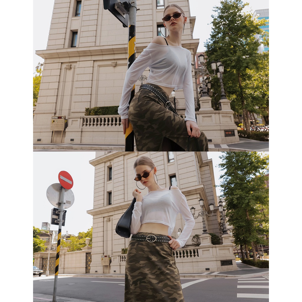 AIR SPACE 側開衩迷彩直筒長裙(軍綠) 女裝 現貨軍綠,S|軍綠,M|軍綠,LAIR SPACE