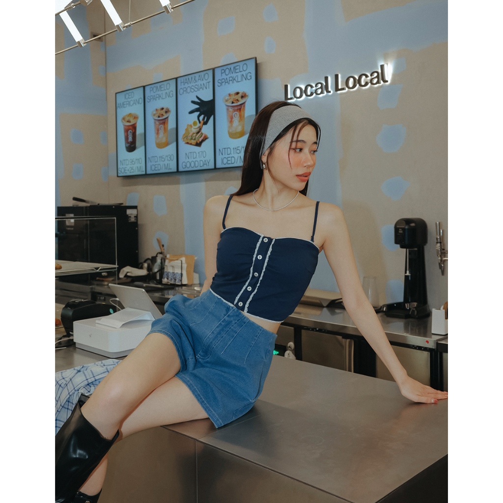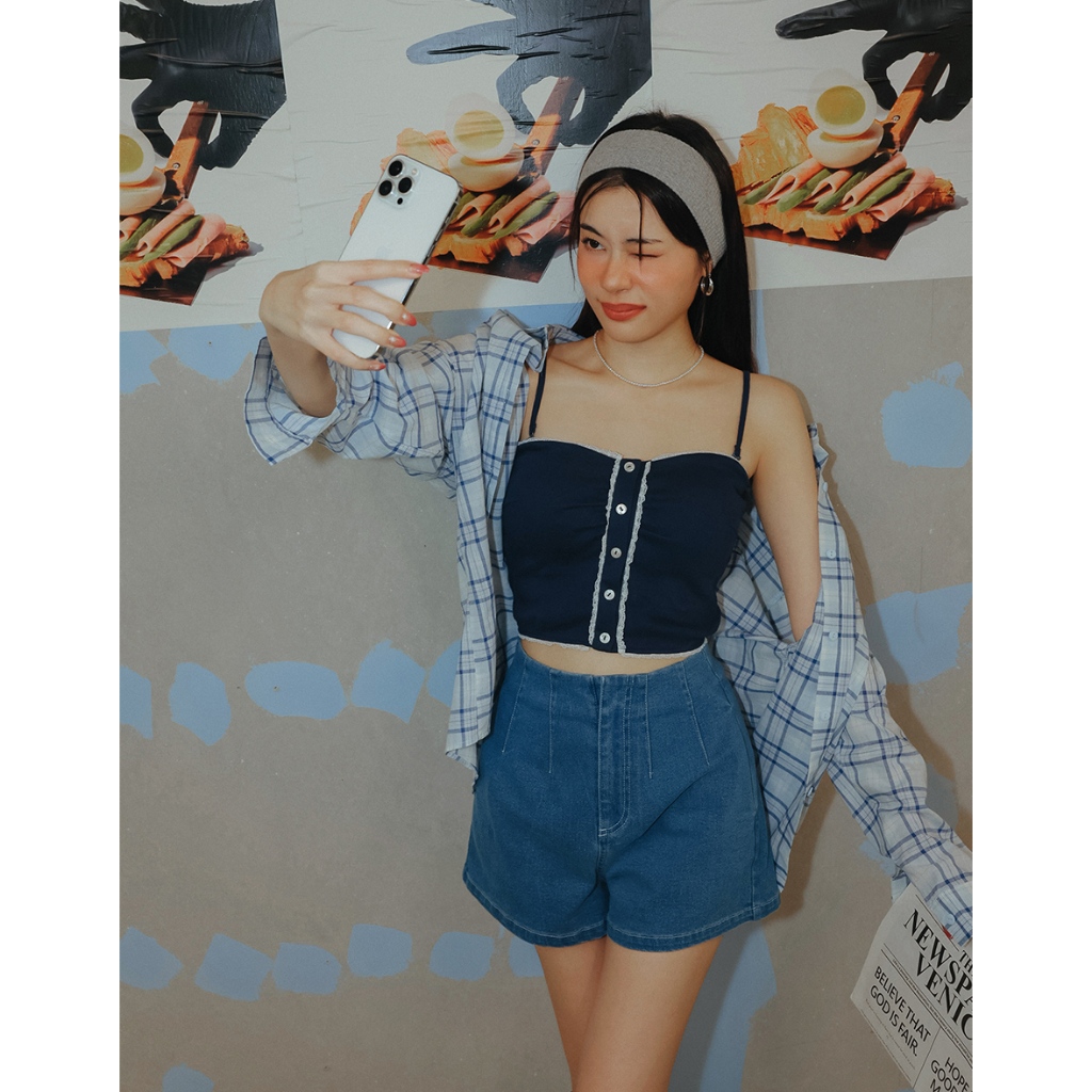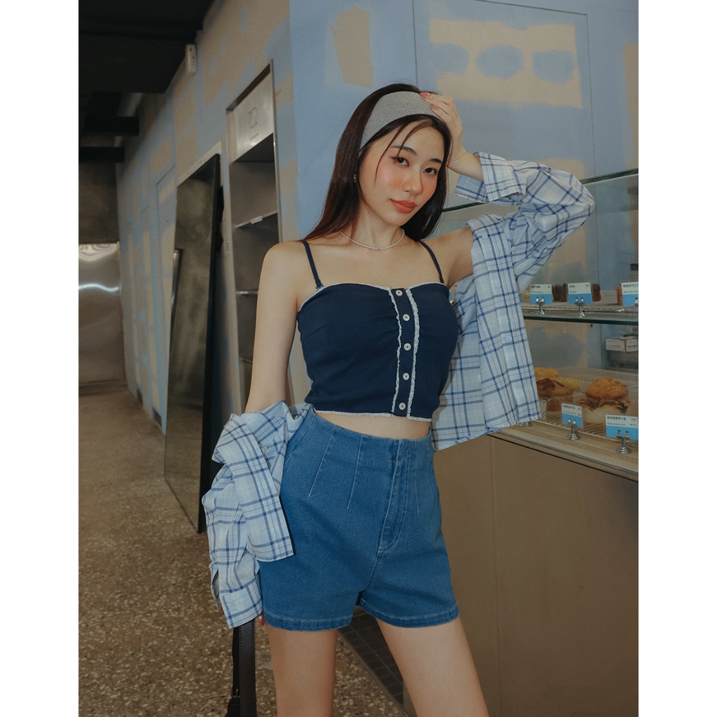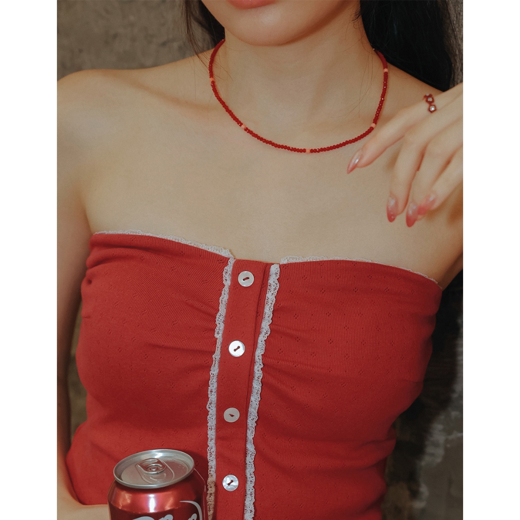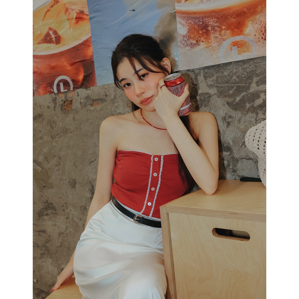 AIR SPACE LADY 蕾絲花邊抓皺平口細肩帶背心(附胸墊)(深藍/紅) 女裝 現貨深藍,S|深藍,M|深藍,L|紅,S|紅,M|紅,LTanks & CamisolesAIR SPACE