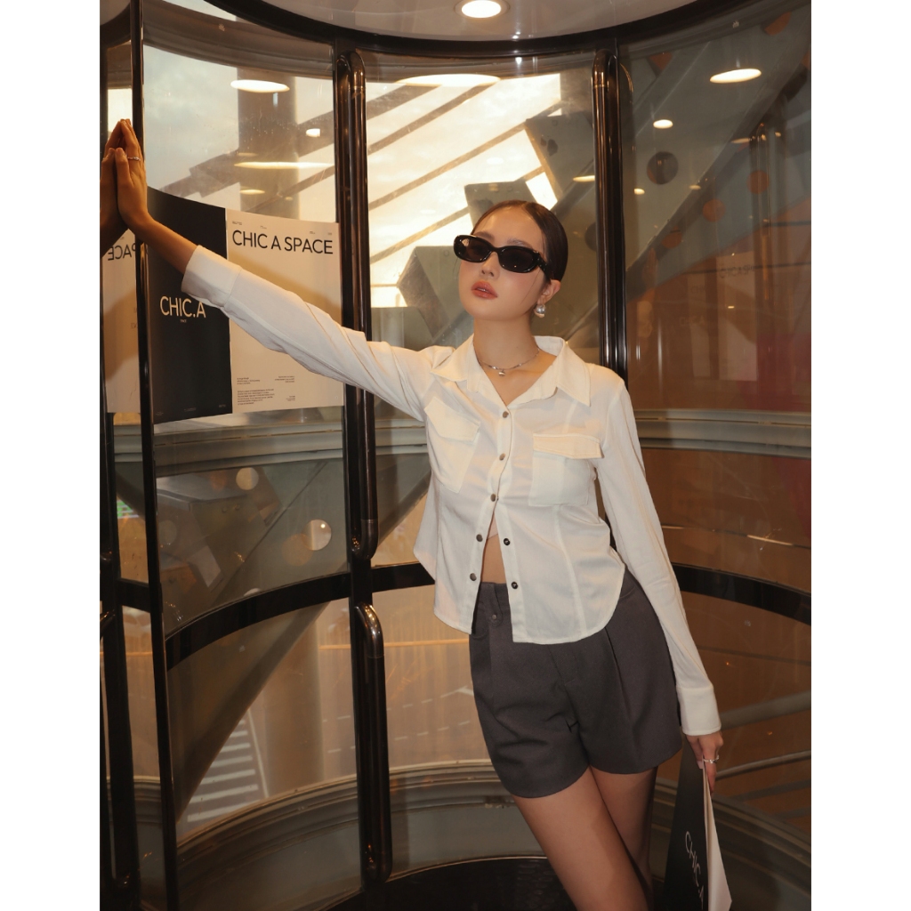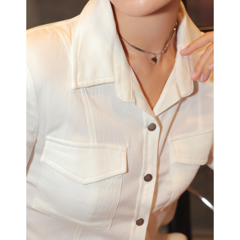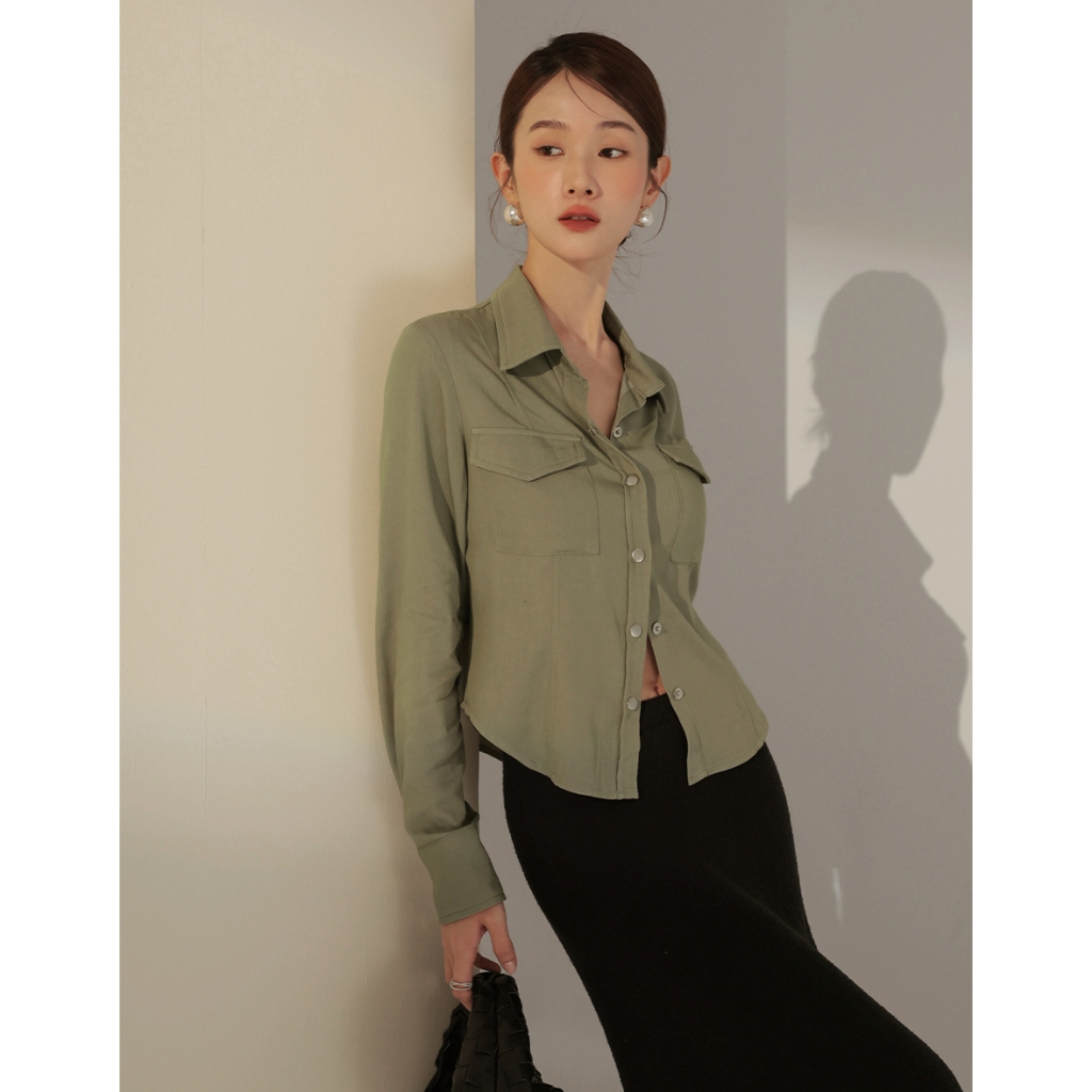 CHIC A SPACE 復古壓釦修身襯衫(白/綠) 女裝 現貨白,S|白,M|白,L|綠,S|綠,M|綠,LShirts & BlousesAIR SPACE