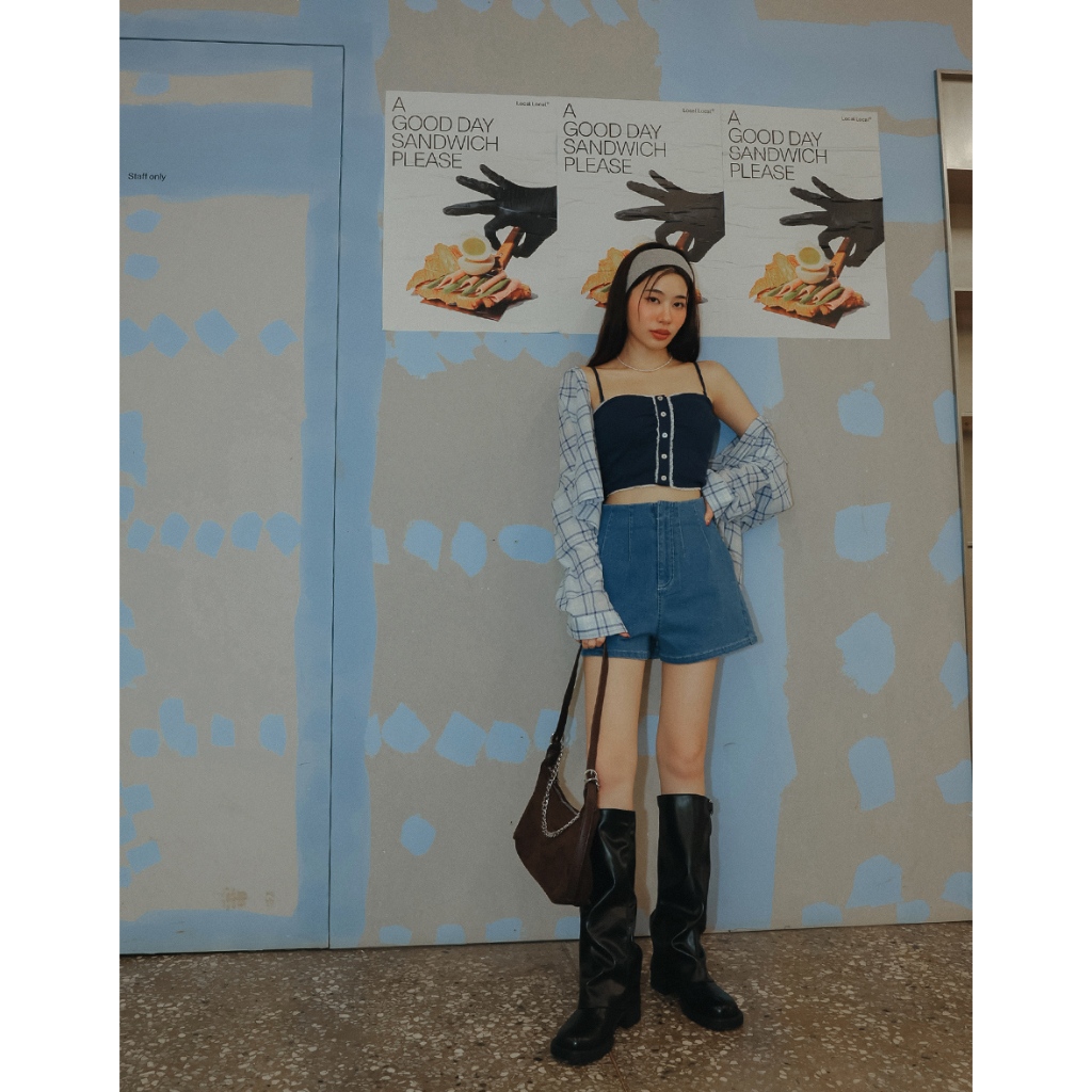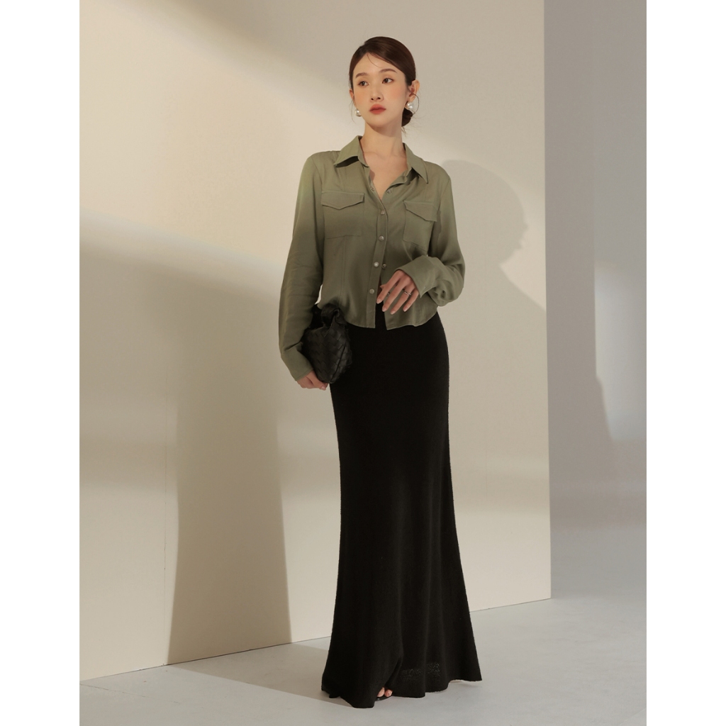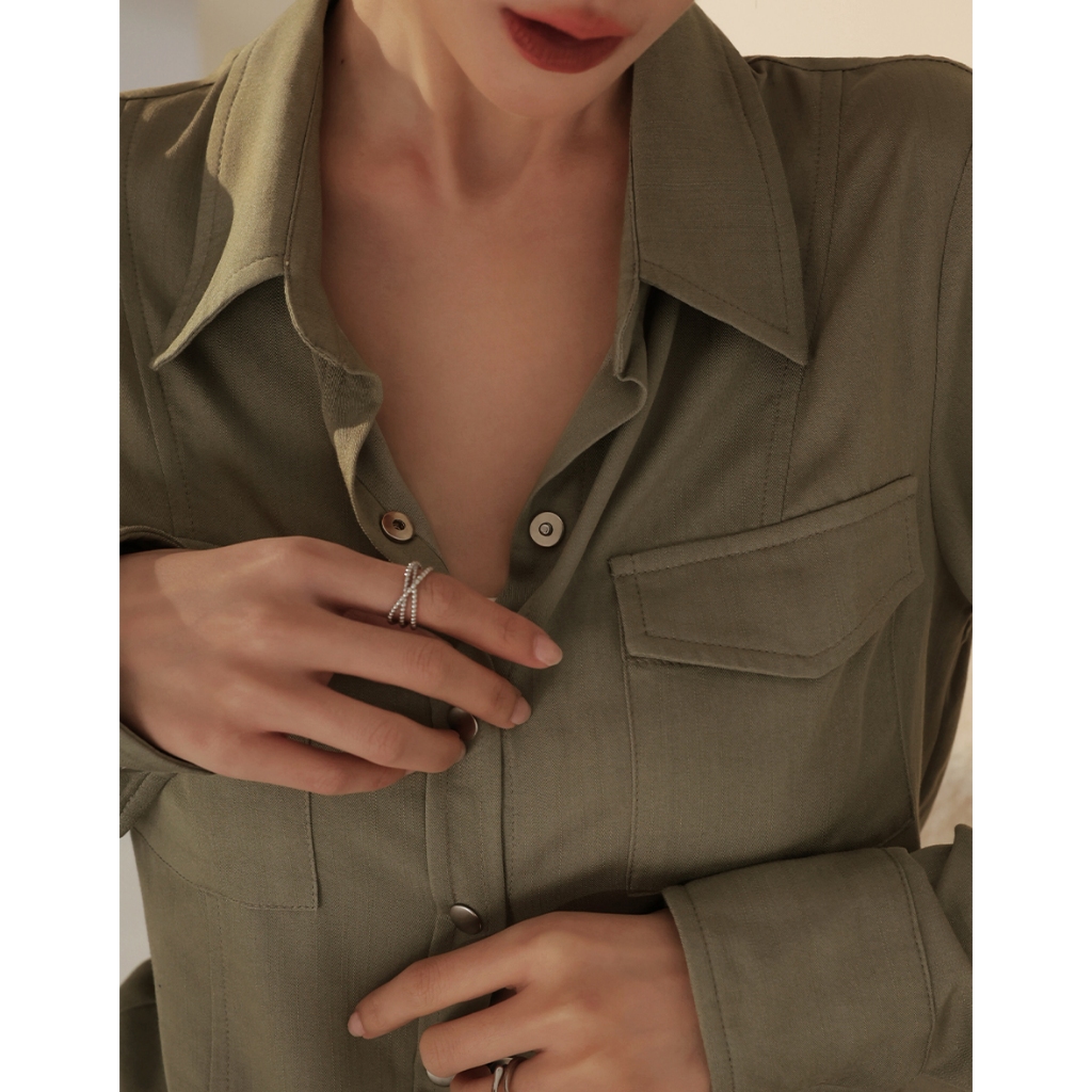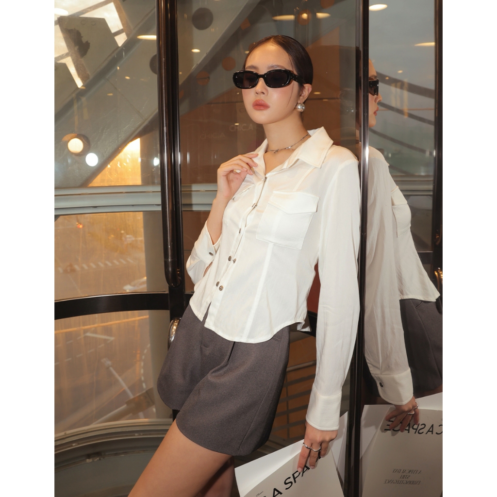 CHIC A SPACE 復古壓釦修身襯衫(白/綠) 女裝 現貨白,S|白,M|白,L|綠,S|綠,M|綠,LShirts & BlousesAIR SPACE