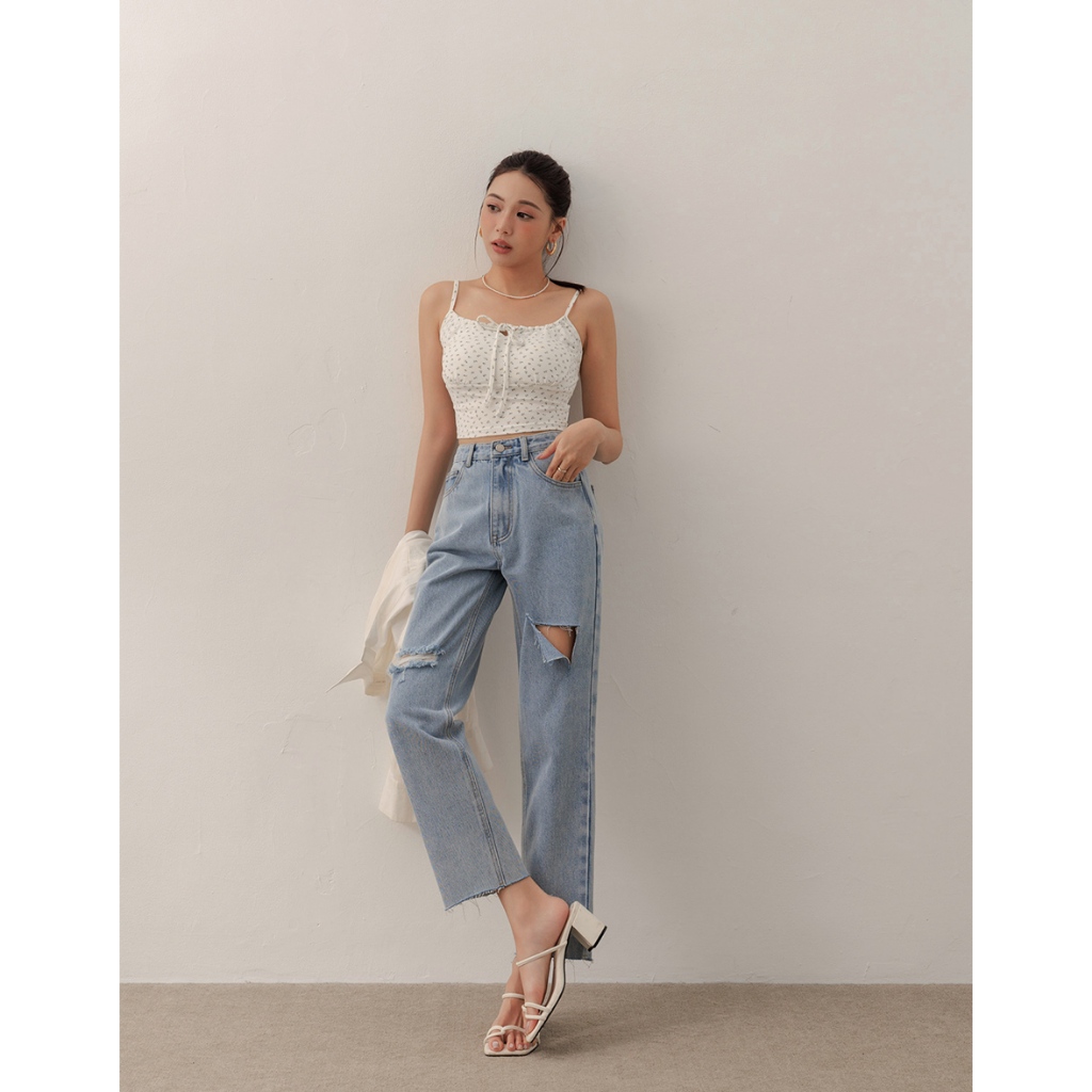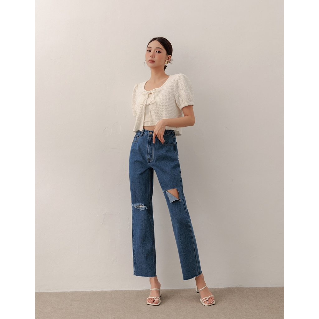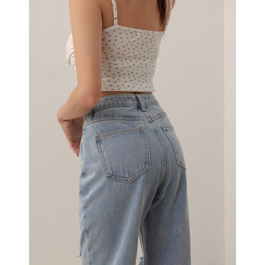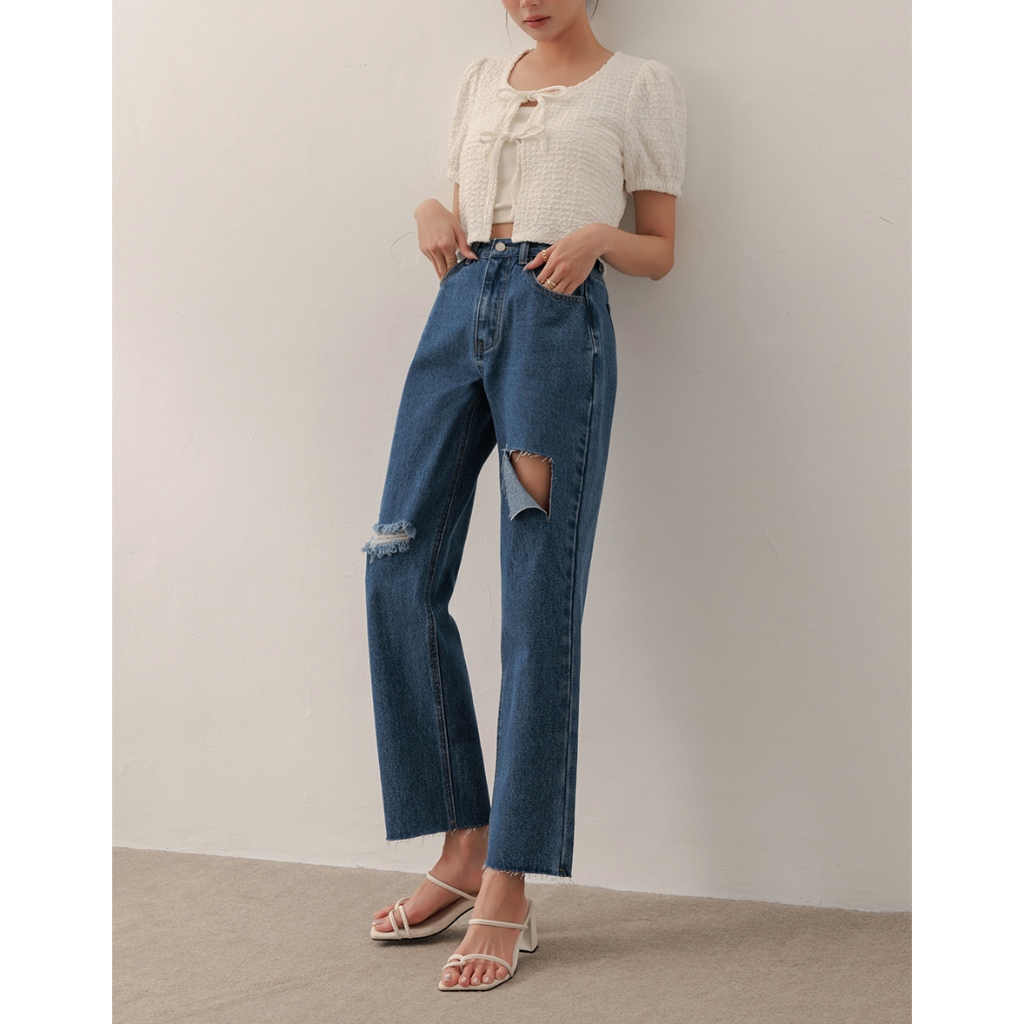 AIR SPACE LADY 割破不收邊修身直筒牛仔褲(深藍/淺藍) 女裝 現貨深藍,S|深藍,M|深藍,L|淺藍,S|淺藍,M|淺藍,LAIR SPACE