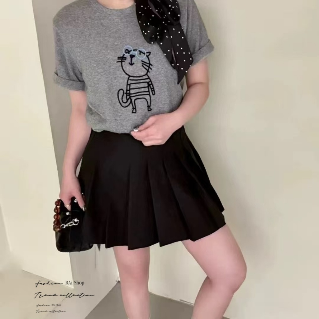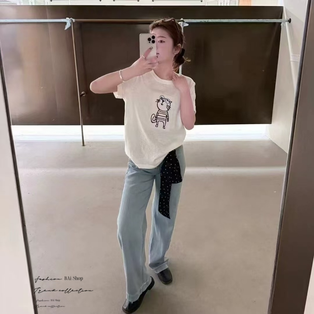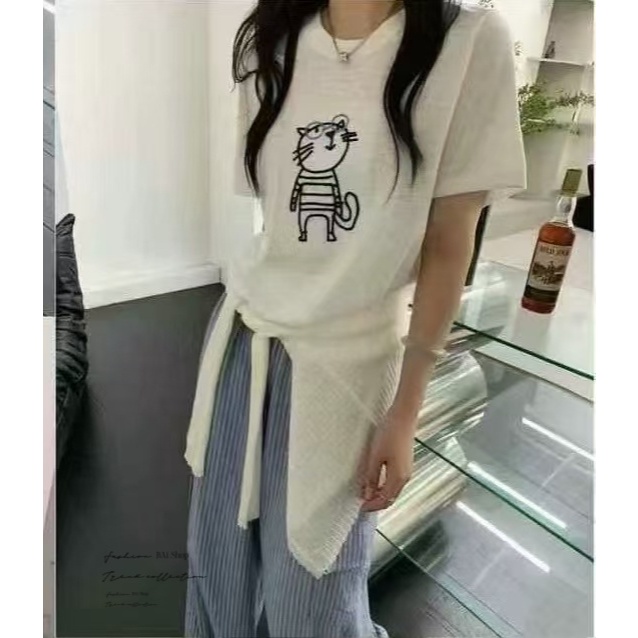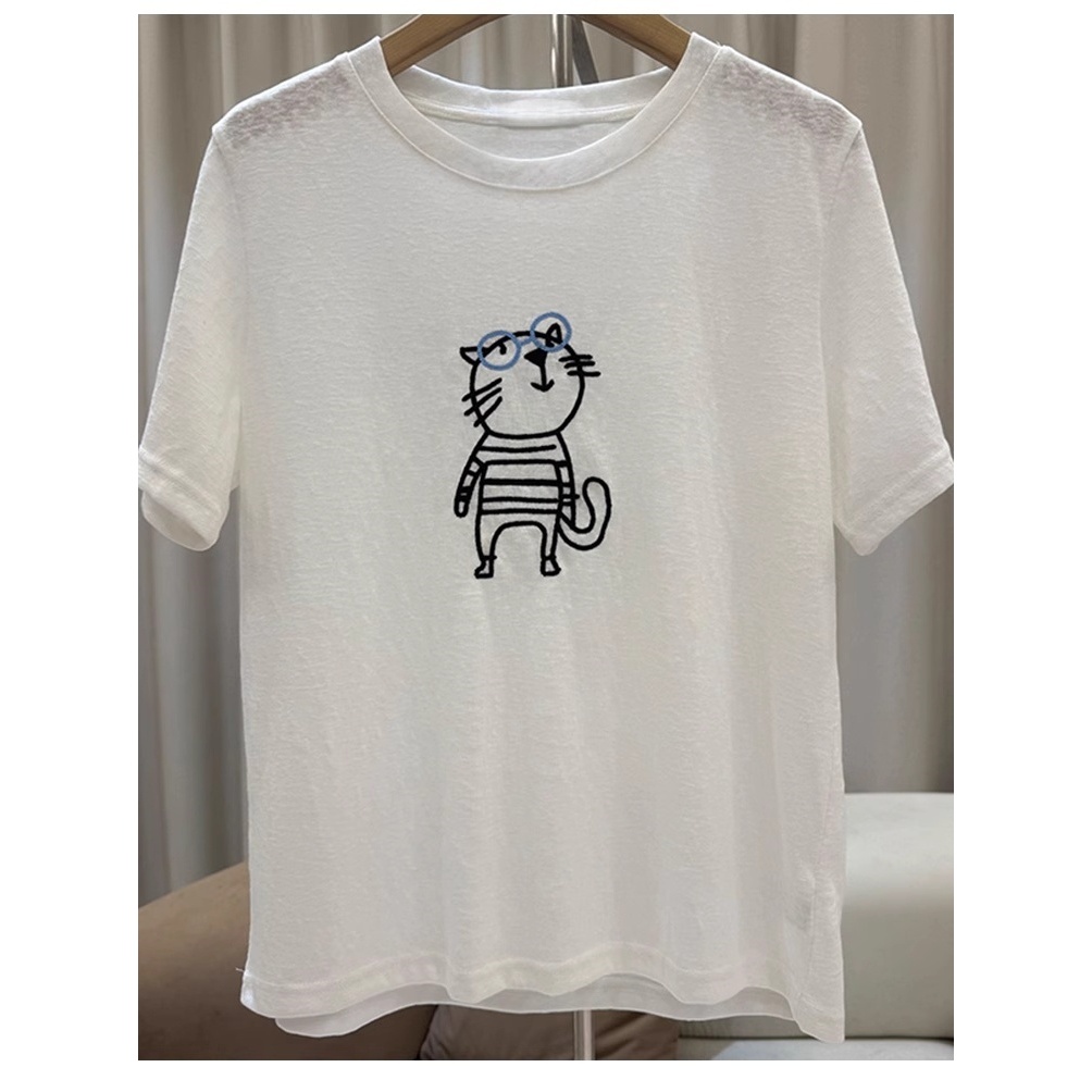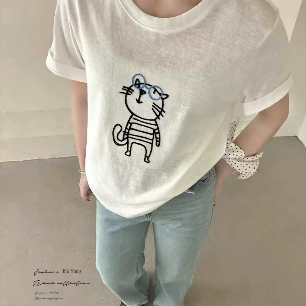 BAi白媽媽 雪花棉眼鏡貓/寬鬆短袖T恤-台灣現貨 隔日到貨【350414】白_透(01)|藍(05)|灰(10)T-shirtsBAi白媽媽 品牌旗艦店