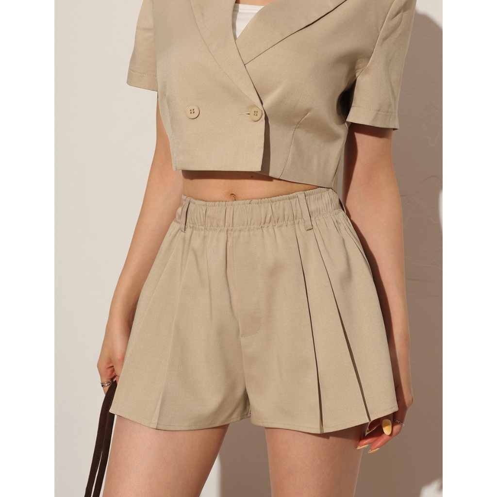 AIR SPACE LADY 雙打褶鬆緊西裝短褲(杏/深灰) 女裝 現貨杏,S|杏,M|杏,L|深灰,S|深灰,M|深灰,LShortsAIR SPACE