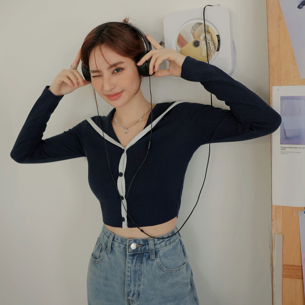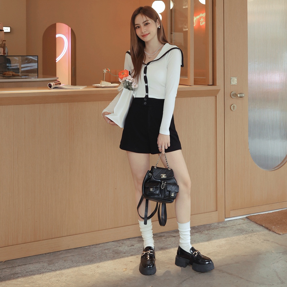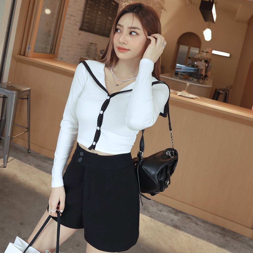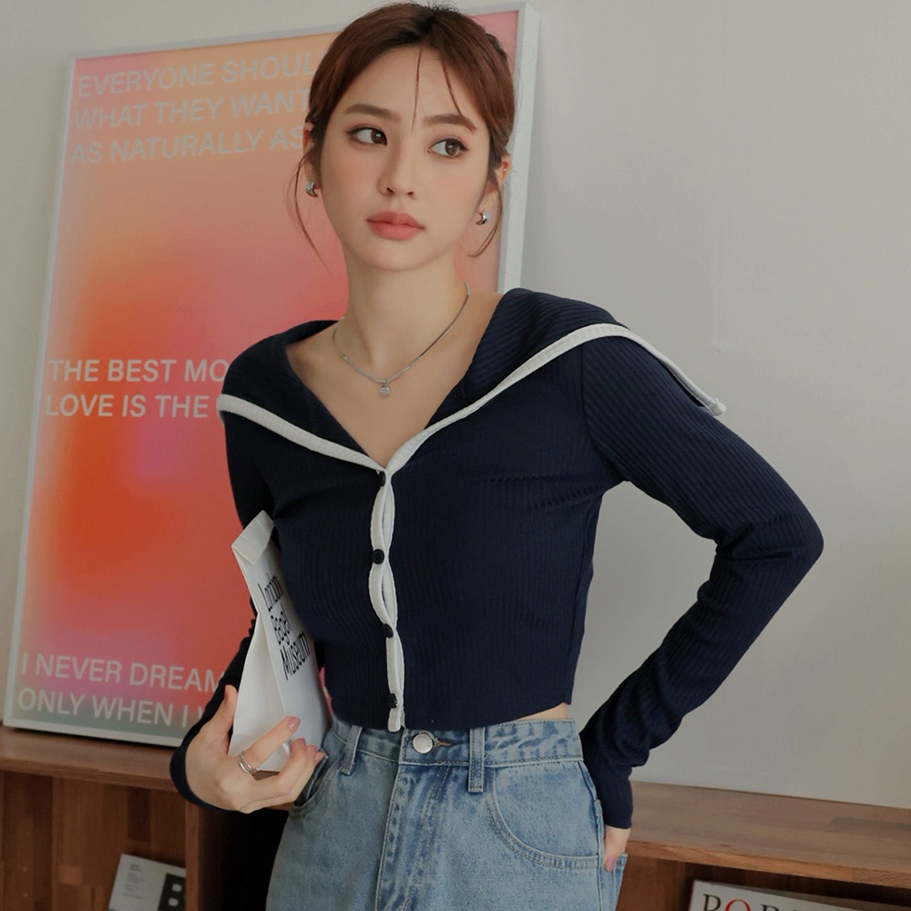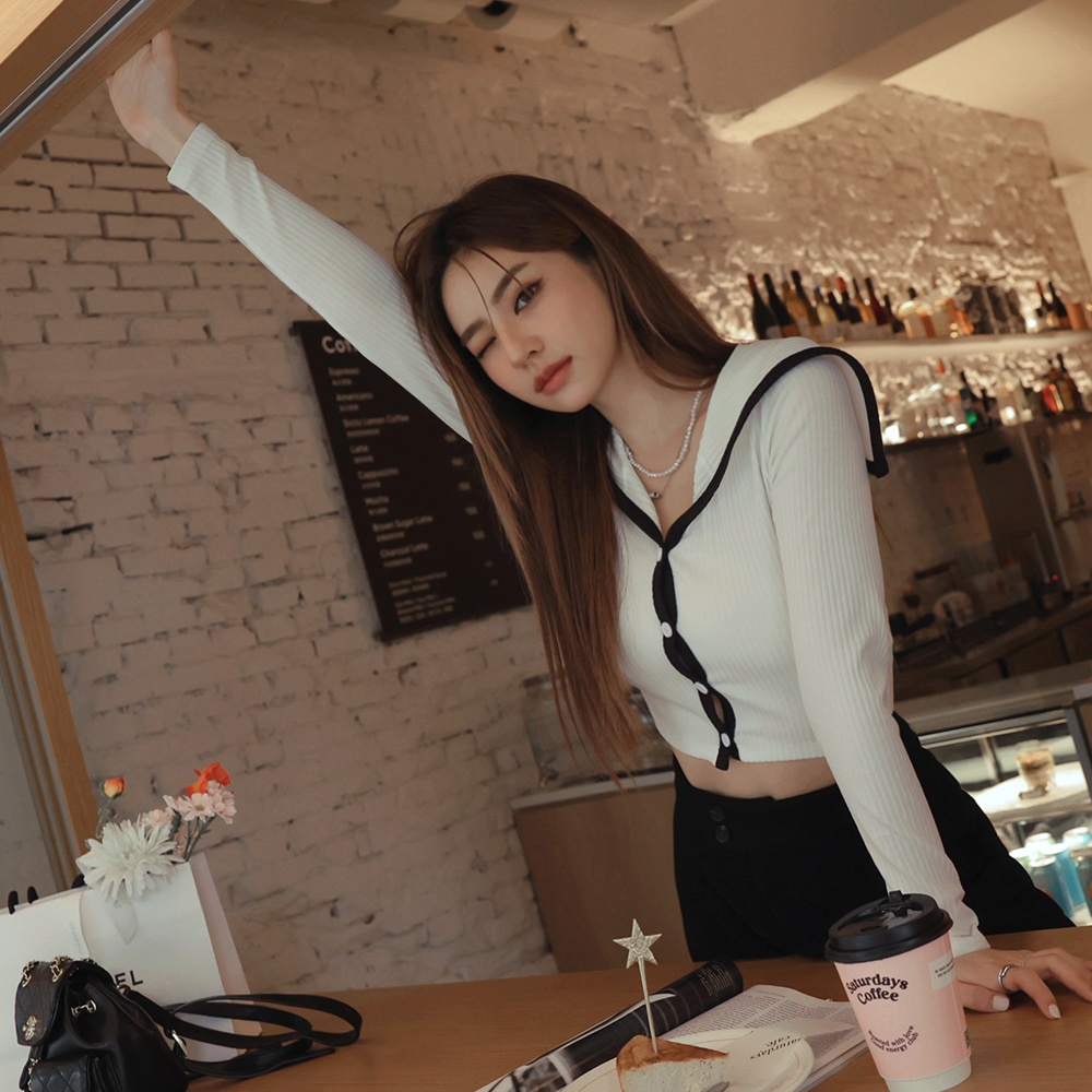 AIR SPACE LADY 翻領撞色羅紋上衣(白/深藍) 女裝 現貨白,S|白,M|白,L|深藍,S|深藍,M|深藍,LOthersAIR SPACE