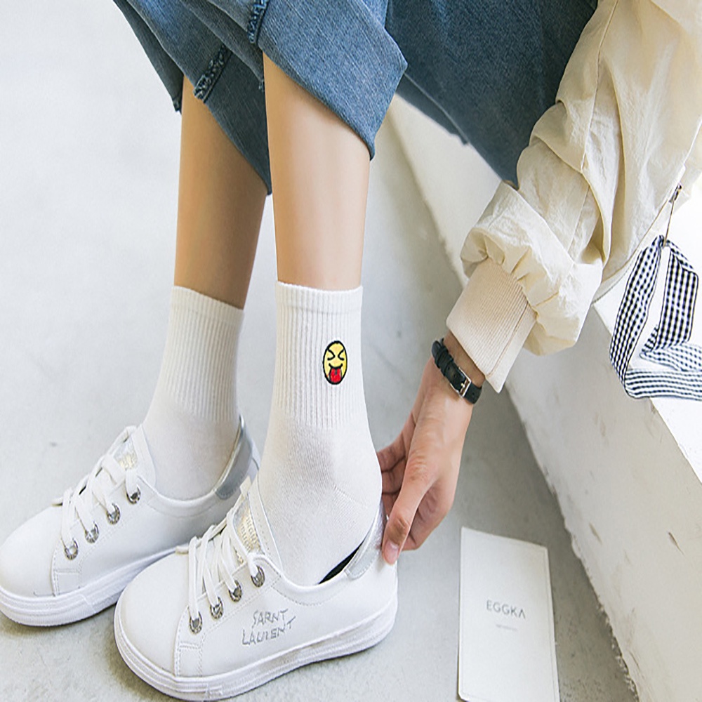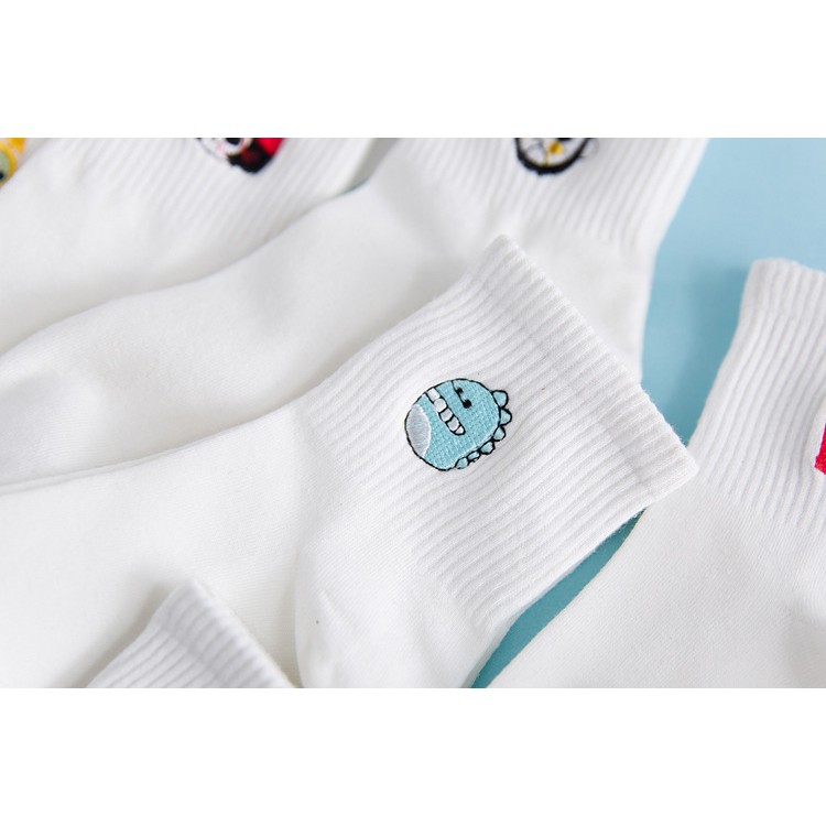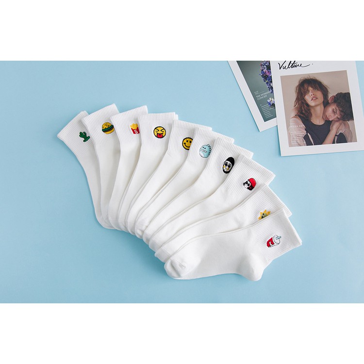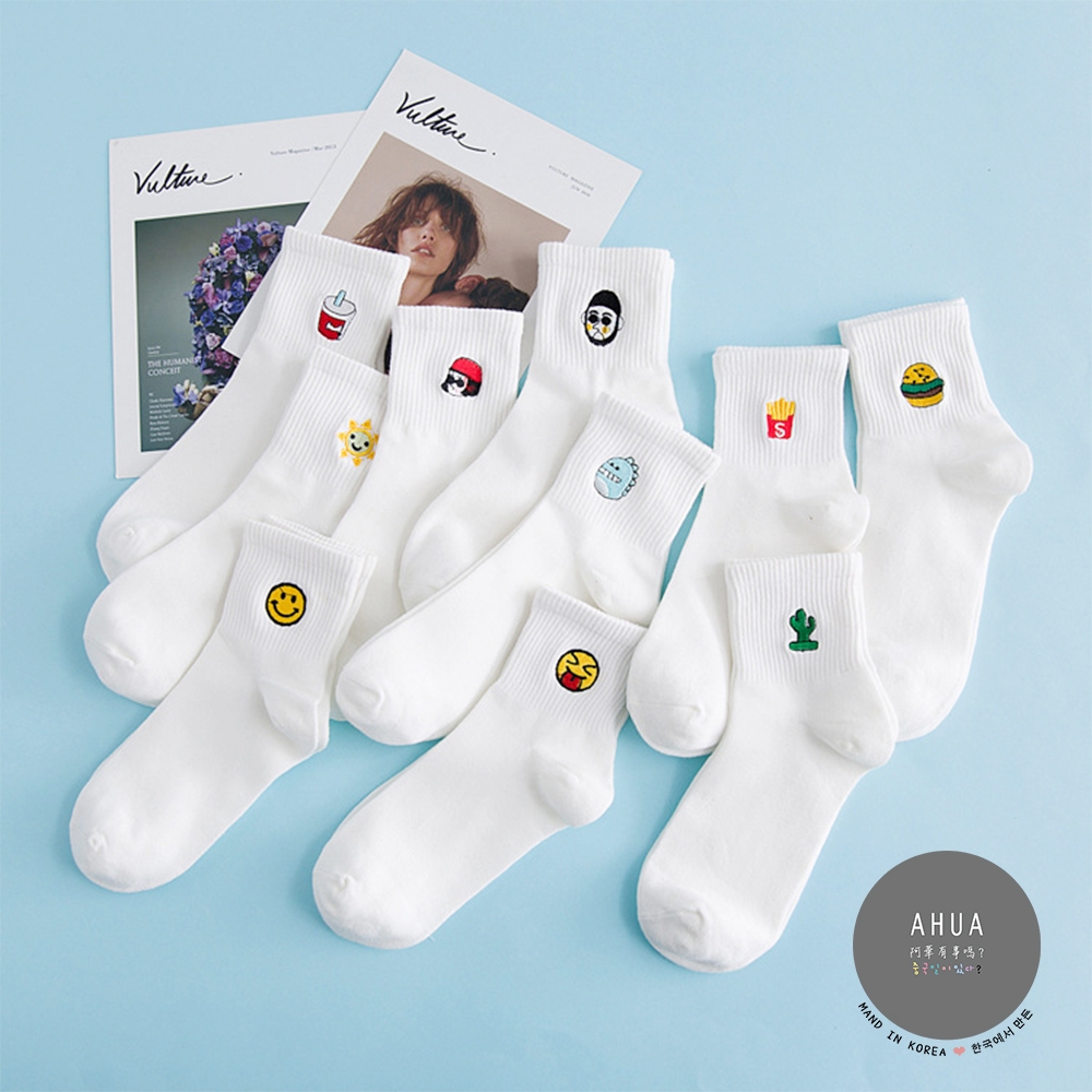 AHUA 日系襪子 刺繡小圖純色中筒襪 S0274 白襪 學生襪 純色襪子 襪子推薦 百搭女襪 女生襪子 阿華有事嗎可樂|薯條|太陽|微笑|吐舌|恐龍|墨鏡女孩|仙人掌|漢堡|墨鏡大叔SocksAHUA 韓國襪子品牌旗艦店