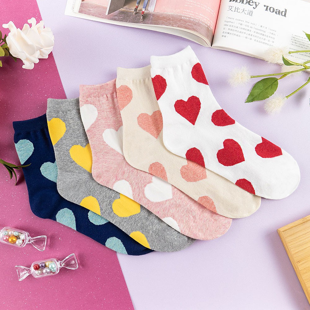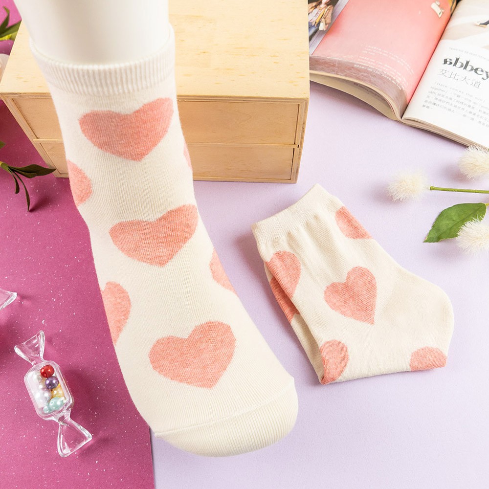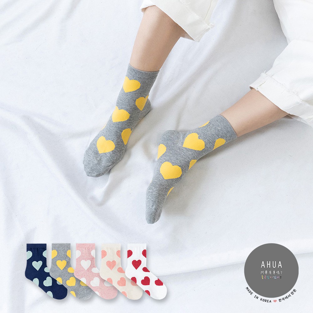 AHUA阿華有事嗎 韓國襪子 粉嫩滿版愛心中筒襪 K1021 少女襪 韓妞必備長襪 百搭純棉襪深藍底藍愛心|粉底白愛心|白底紅愛心|米白底粉愛心|灰底黃愛心SocksAHUA 韓國襪子品牌旗艦店