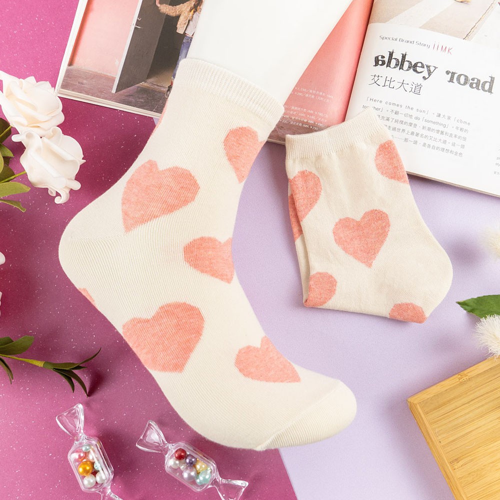 AHUA阿華有事嗎 韓國襪子 粉嫩滿版愛心中筒襪 K1021 少女襪 韓妞必備長襪 百搭純棉襪
