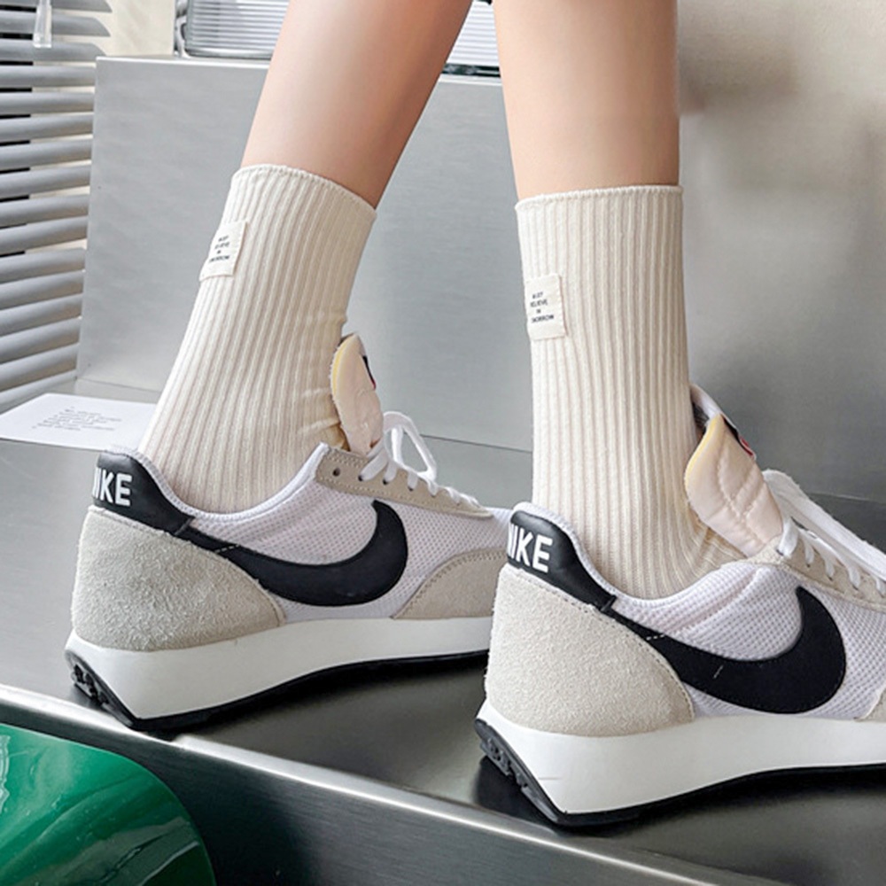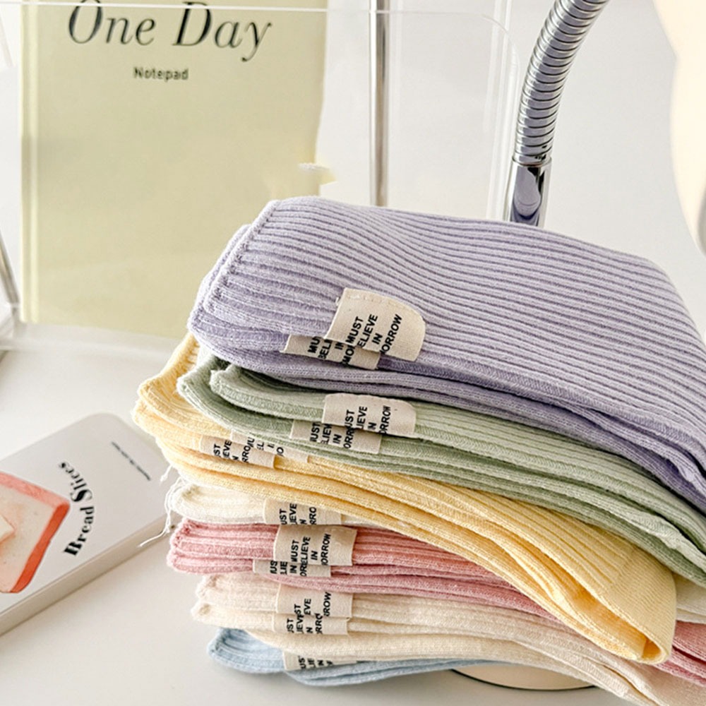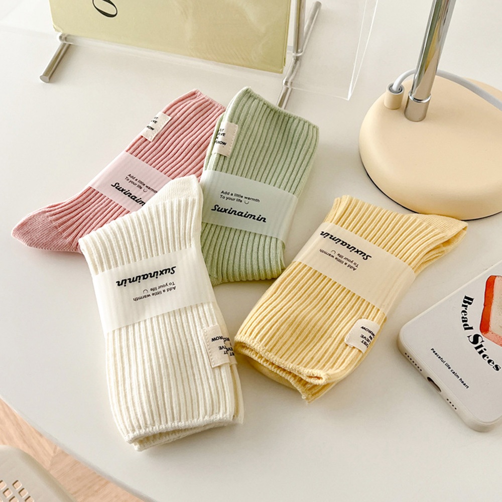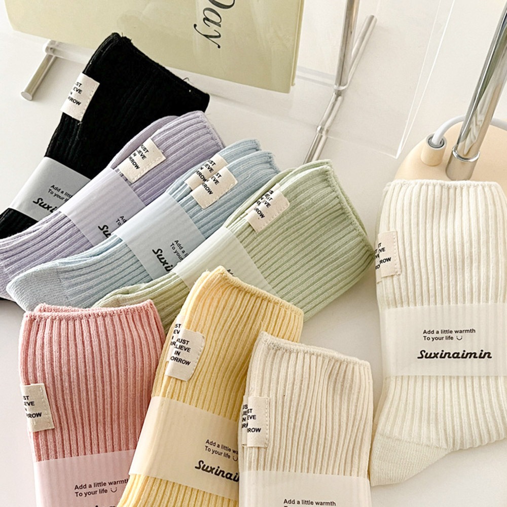AHUA 純色奶油布標坑條中筒襪 S0518 女生襪子 女襪 襪子推薦 百搭純棉襪 造型襪 韓系少女襪 阿華有事嗎黑色|米白色|黃色|綠色|藍色|米黃色|紫色|粉色SocksAHUA 韓國襪子品牌旗艦店