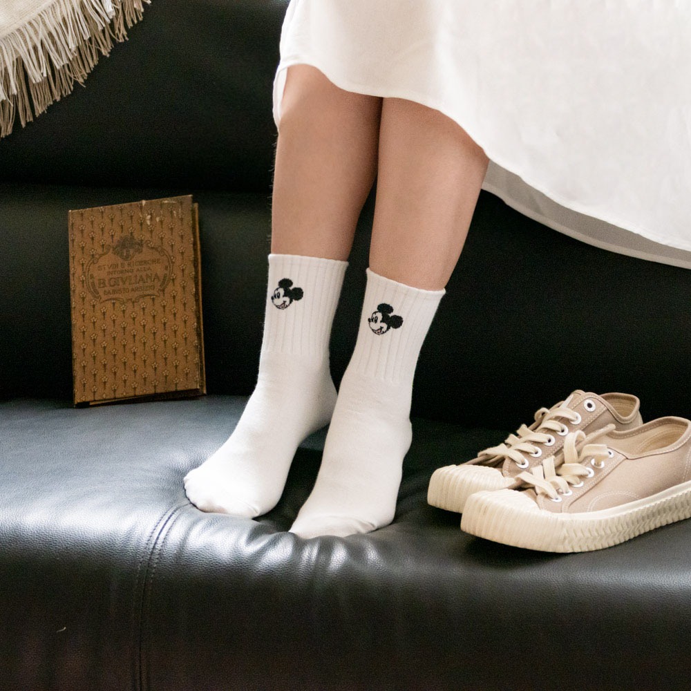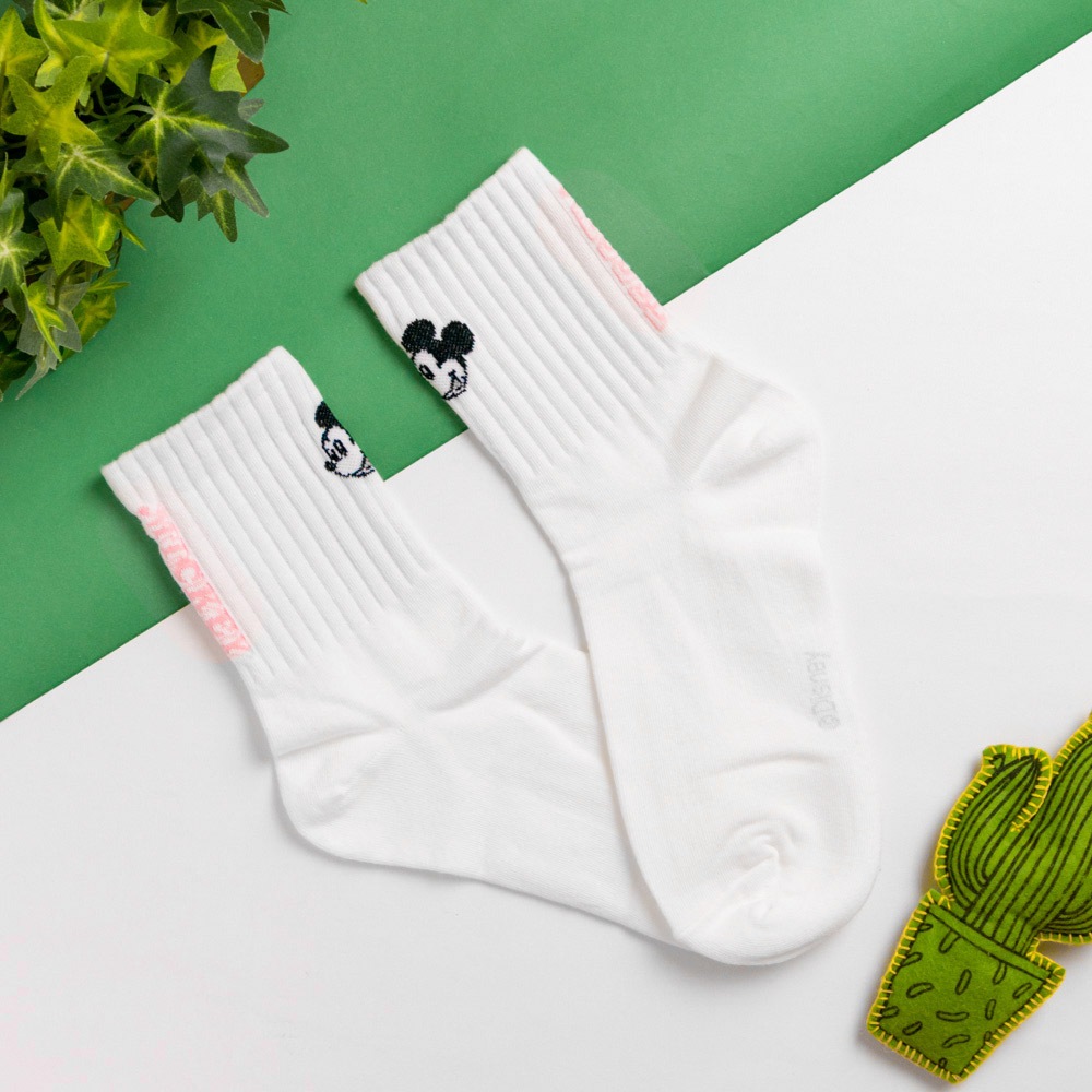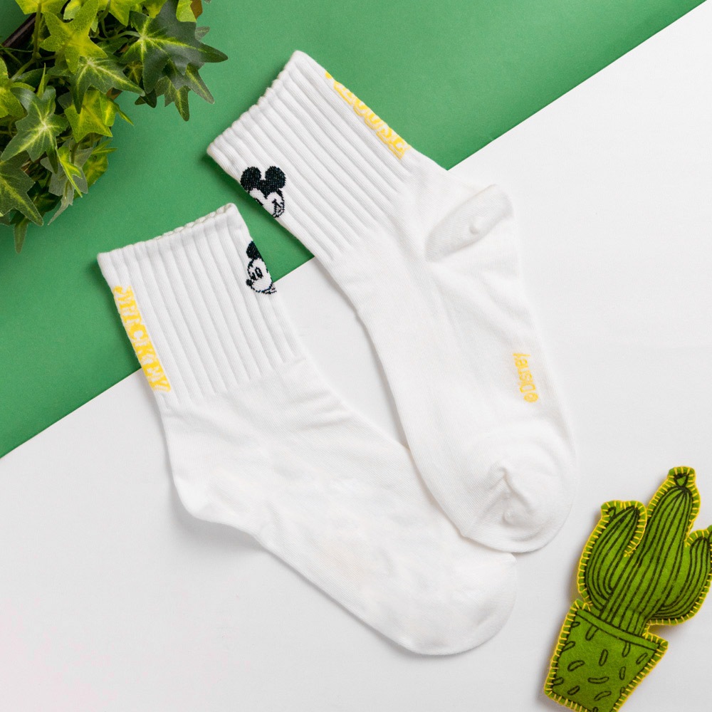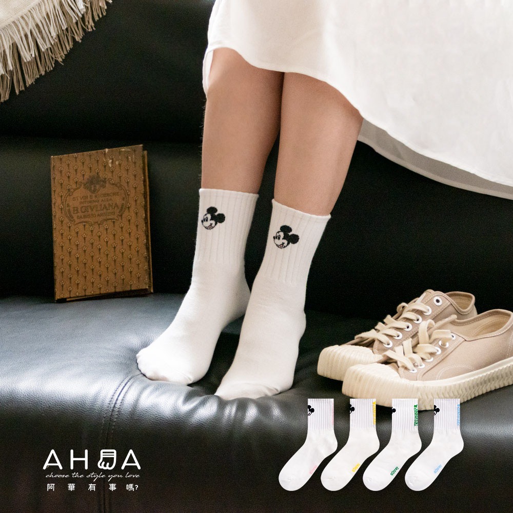 AHUA 韓國襪子 迪士尼後腳跟英文米奇中筒襪 K2005 韓妞必備 百搭純棉襪 正韓襪子 少女襪 阿華有事嗎白底粉字|白底黃字|白底藍字|白底綠字SocksAHUA 韓國襪子品牌旗艦店