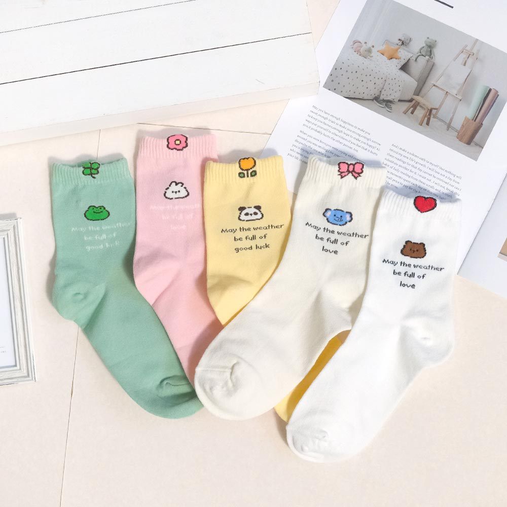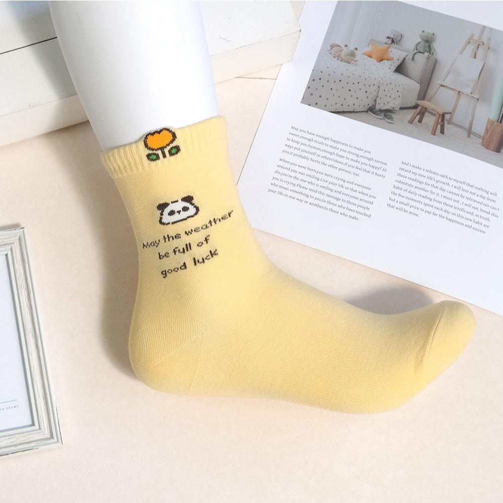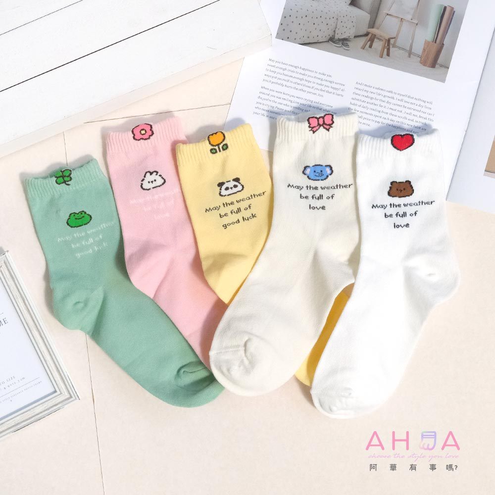 AHUA 阿華有事嗎 立體耳朵動物英文語錄中筒襪 K2311 正韓襪子 百搭純棉襪 韓妞必備 少女襪白底小熊|薑黃底熊貓|米黃底大象|粉色小白兔|綠底青蛙SocksAHUA 韓國襪子品牌旗艦店