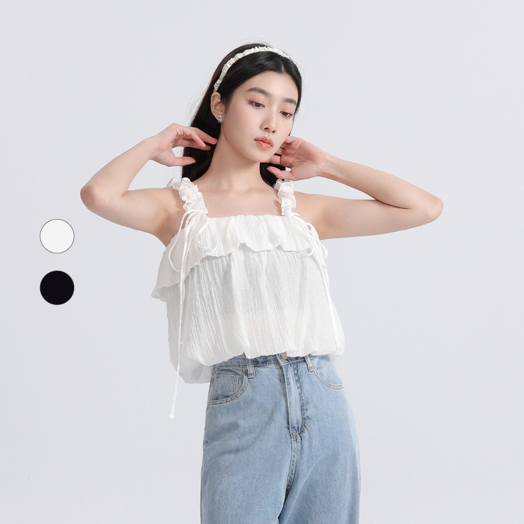 50% Fifty Percent|肩帶可拆式無袖雪紡上衣|02383132002米白,M|黑色,S|黑色,M|米白,STanks & Camisoles50 PERCENT 官方旗艦店