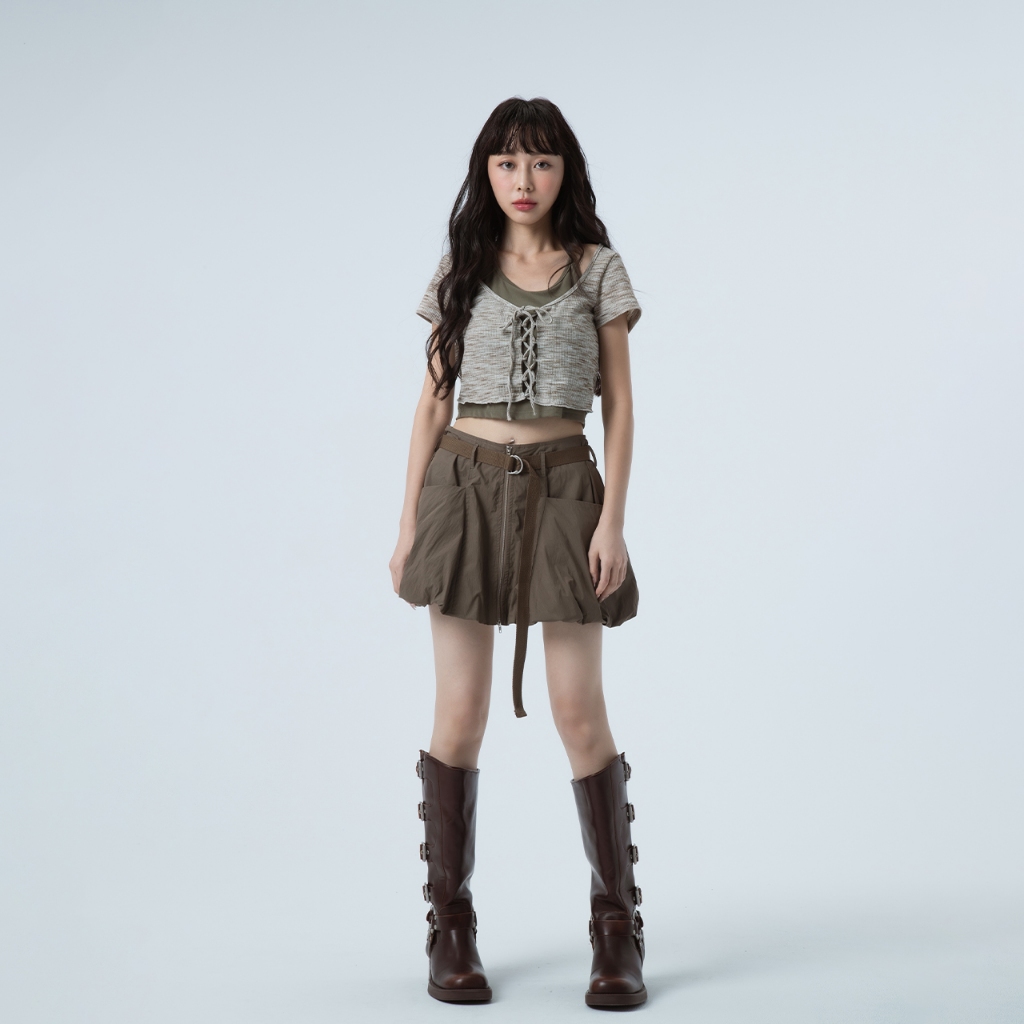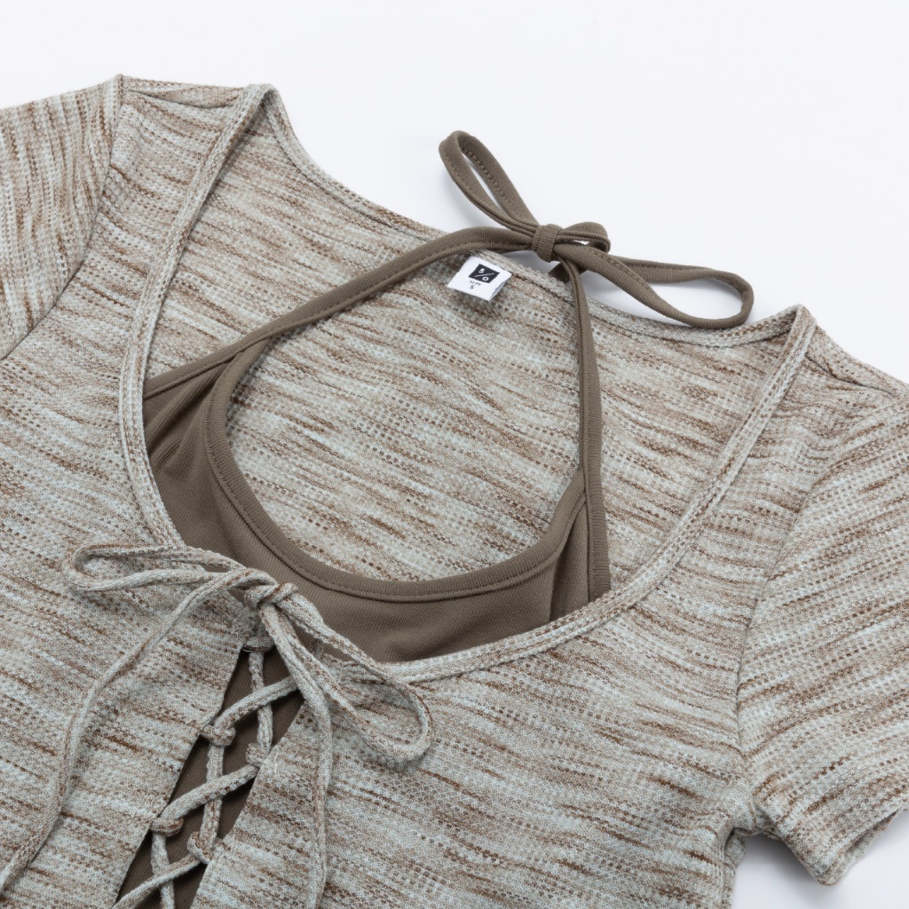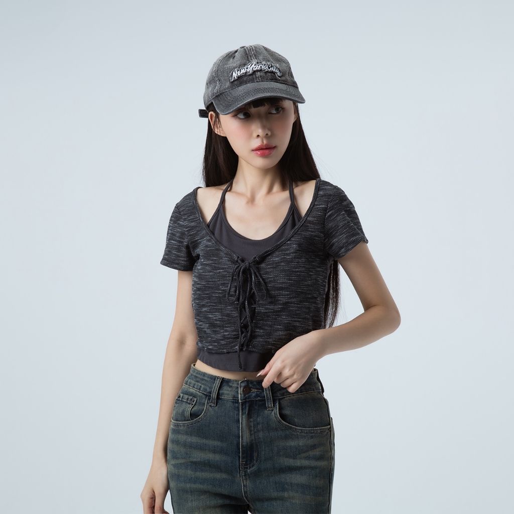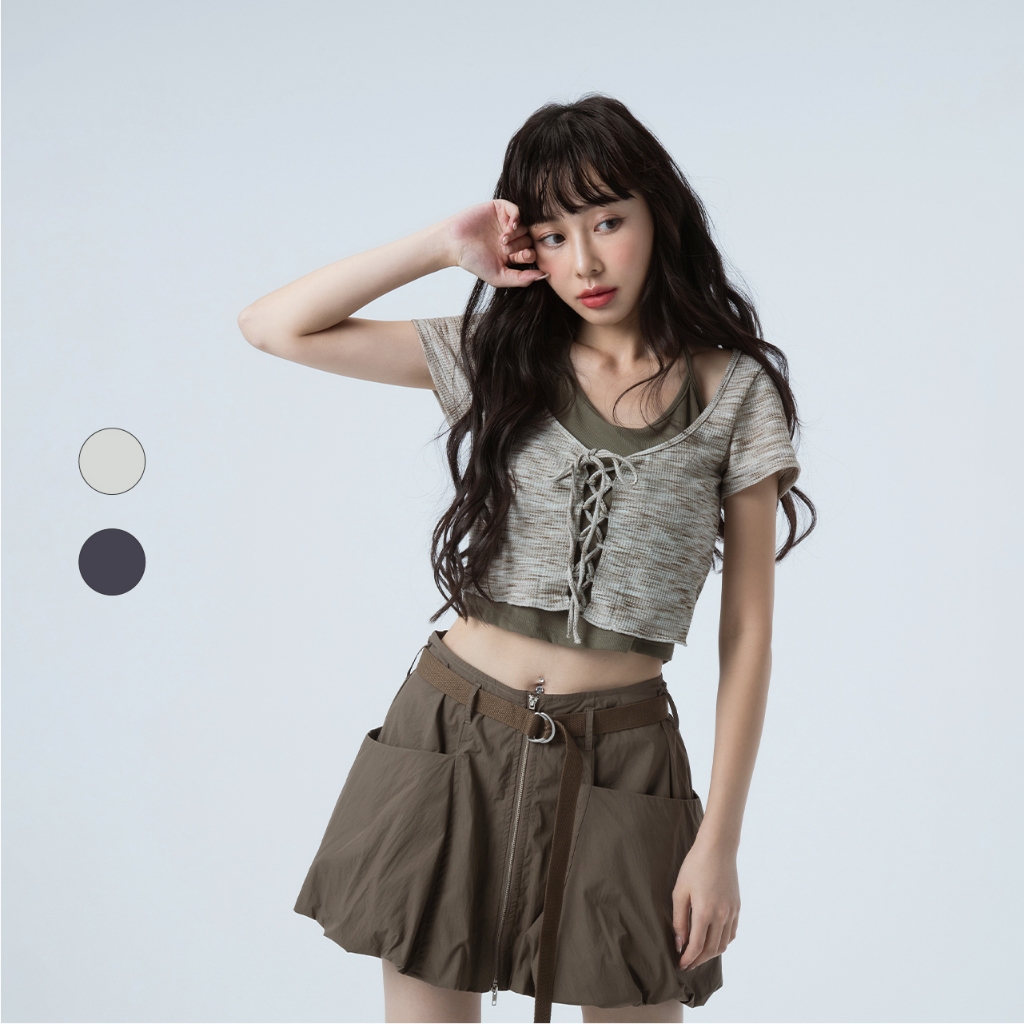 50% Fifty Percent|假兩件綁帶式短袖上衣|02572710001深灰,S|深灰,M|深灰,L|綠色,S|綠色,M|綠色,LT-shirts50 PERCENT 官方旗艦店
