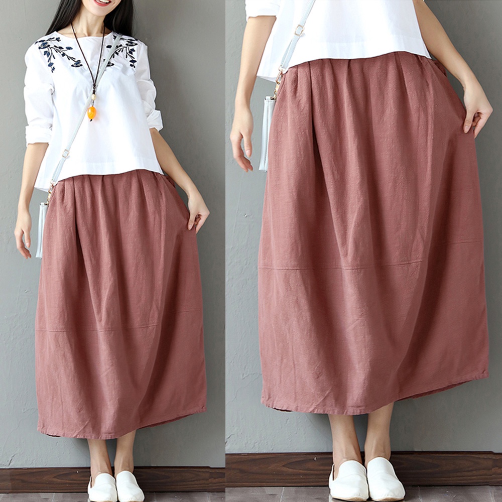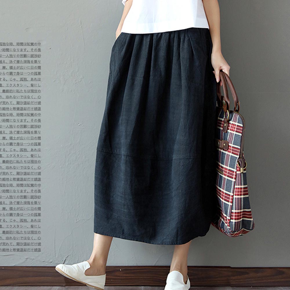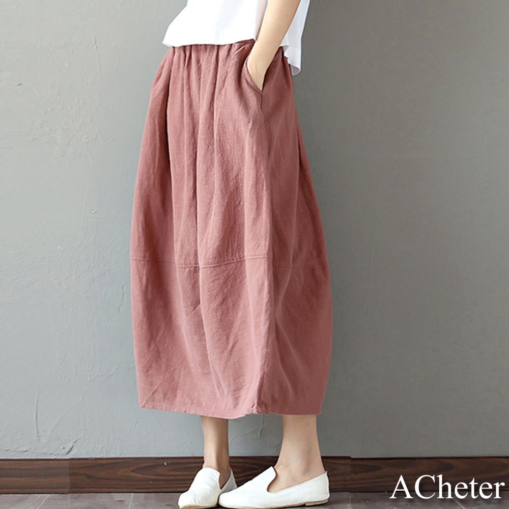 【ACheter】日系原生棉麻純色口袋寬鬆長裙100611黑,F|藍,F|粉,FBottomsACheter 官方旗艦店