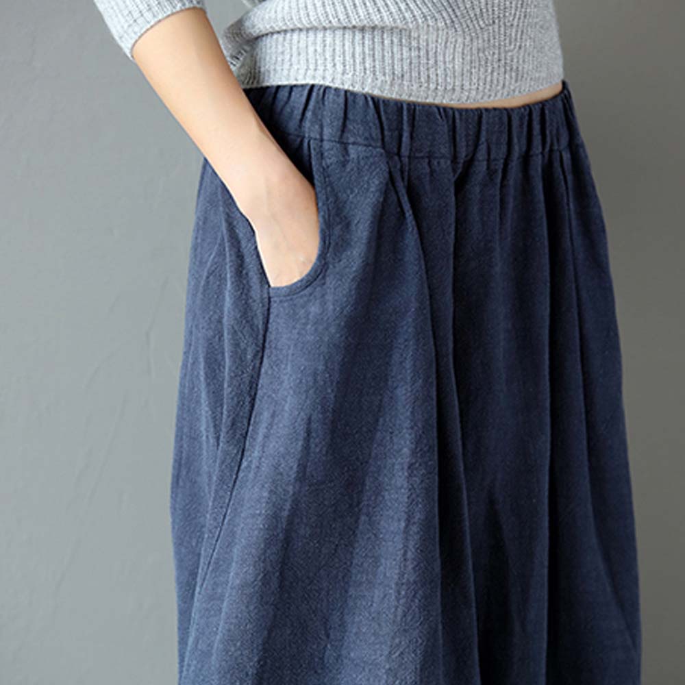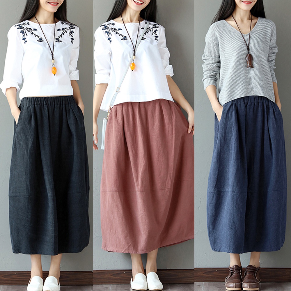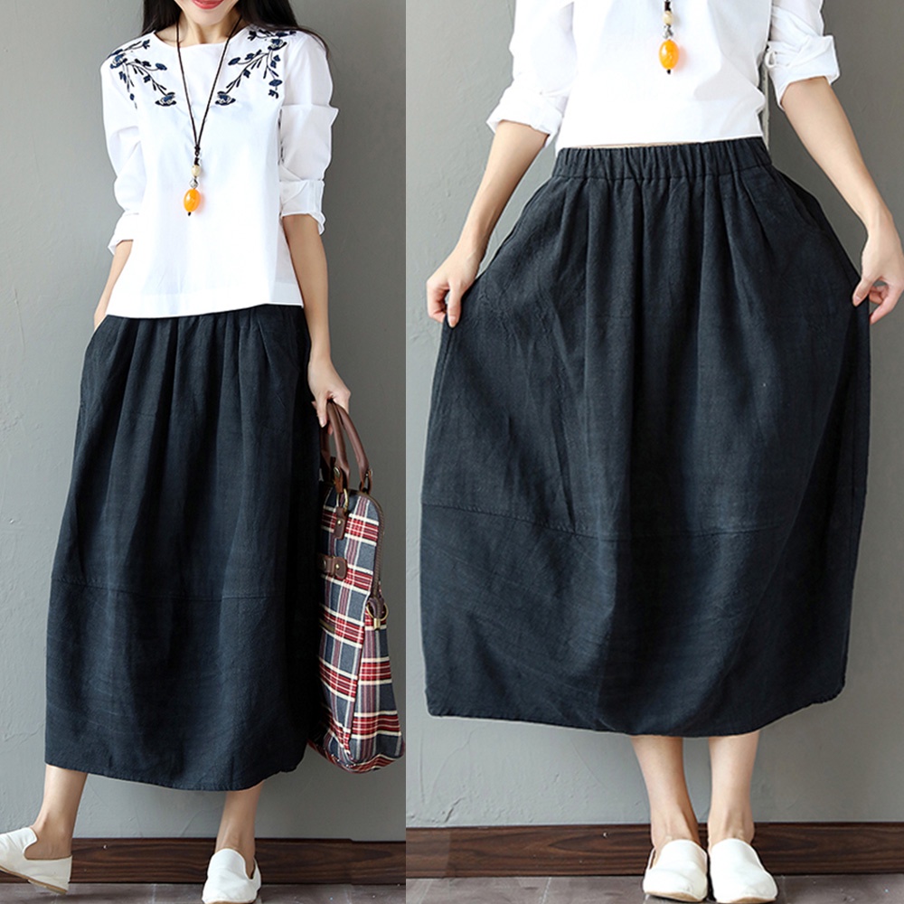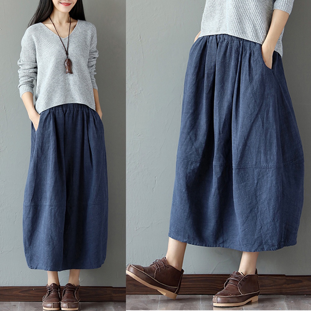 【ACheter】日系原生棉麻純色口袋寬鬆長裙100611黑,F|藍,F|粉,FBottomsACheter 官方旗艦店