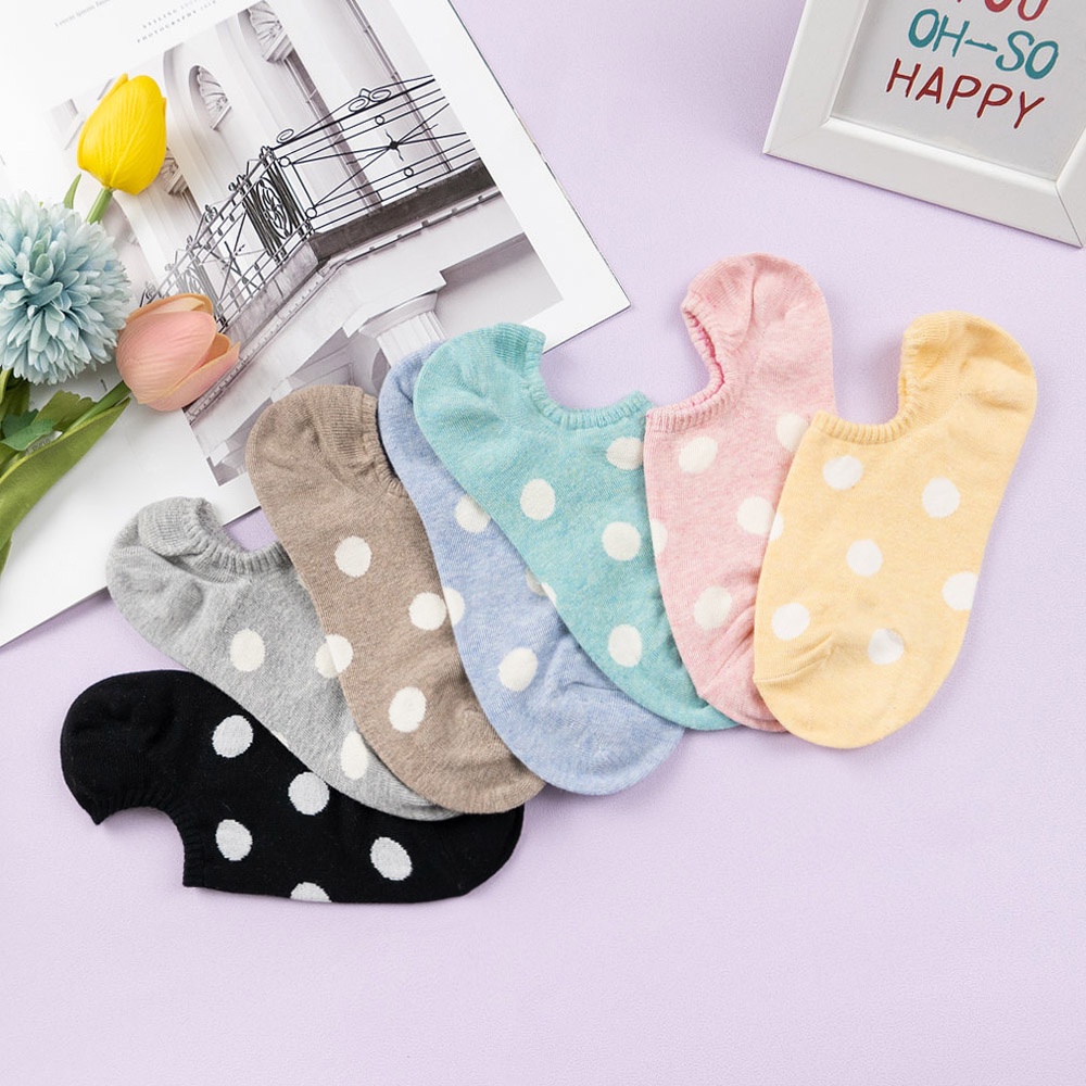 AHUA 韓國襪子 粉嫩圓點船型襪 K0895 隱形襪 船襪 女生襪子 女襪 波點襪子 純棉襪子 學生襪 阿華有事嗎咖啡底|淺灰底|黃底|淺藍底|粉底|藍綠底|黑底SocksAHUA 韓國襪子品牌旗艦店