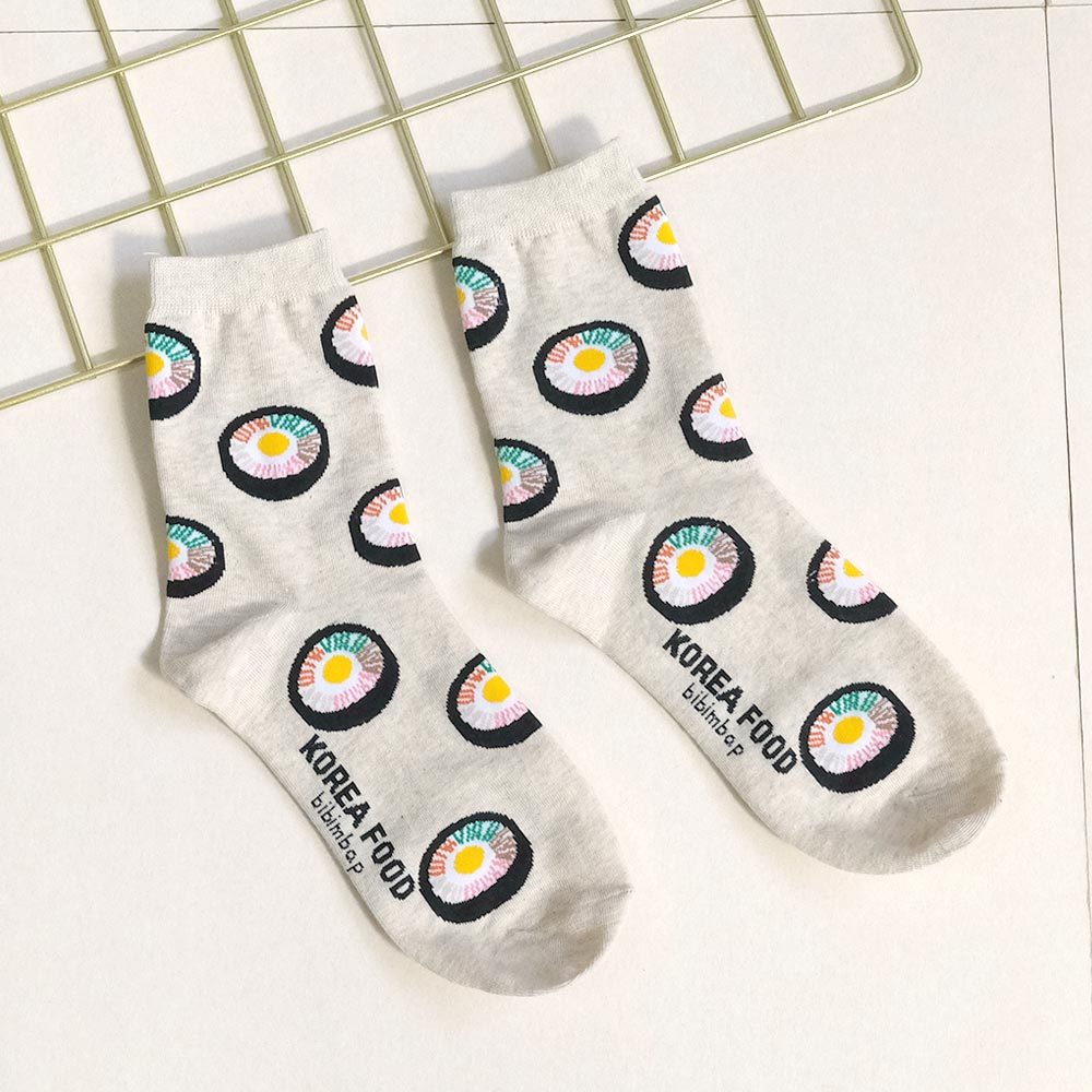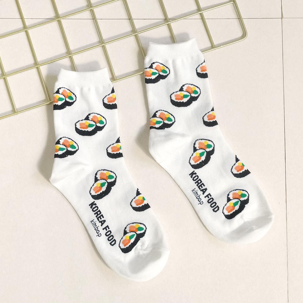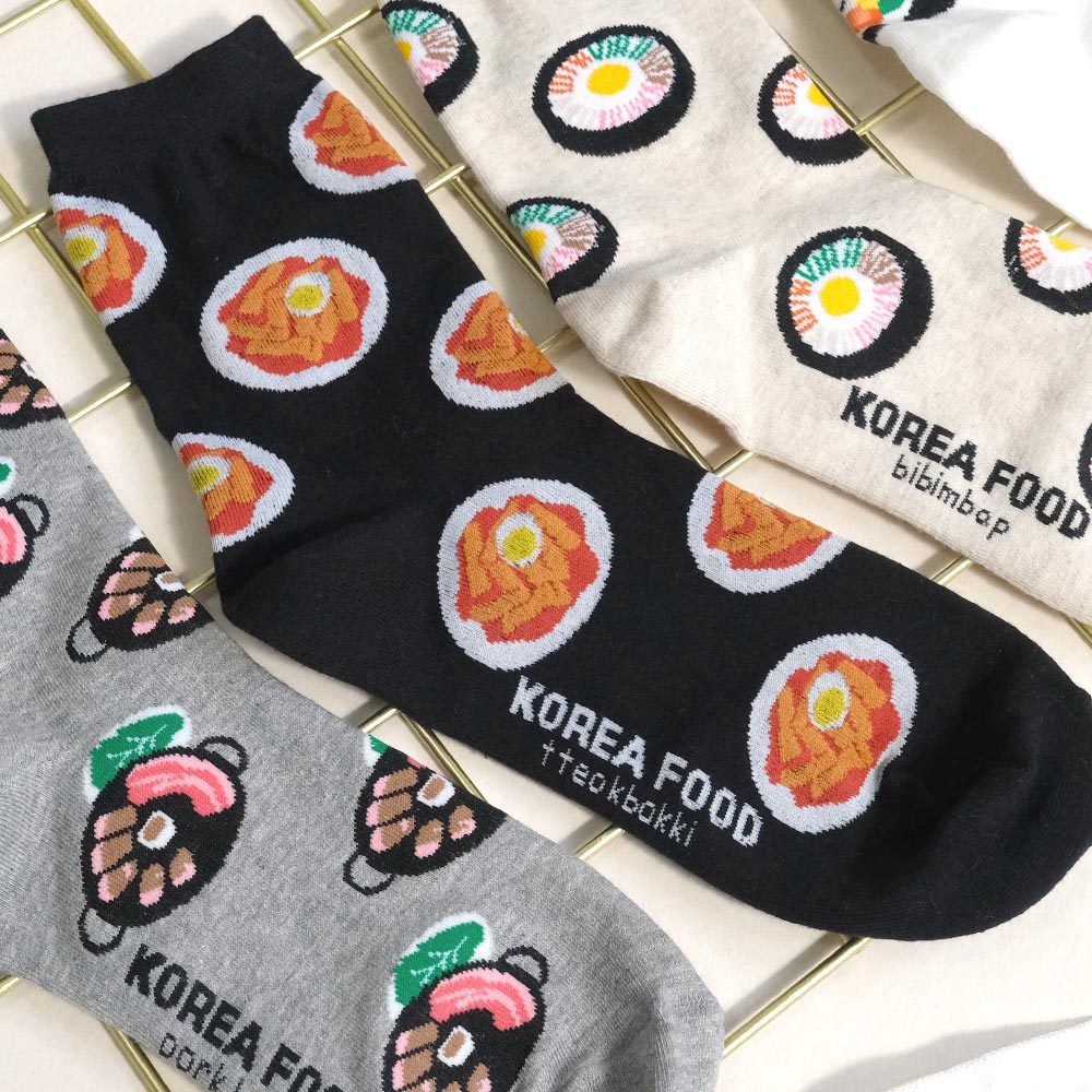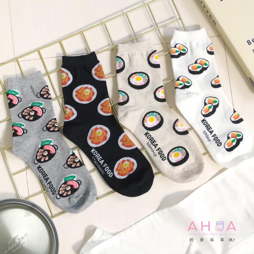 AHUA阿華有事嗎 滿版韓國在地小吃中筒襪 K2272 正韓襪子 百搭純棉襪 韓妞必備 少女襪白底紫菜包飯|米白底石鍋拌飯|灰底韓式烤肉|黑底辣炒年糕SocksAHUA 韓國襪子品牌旗艦店