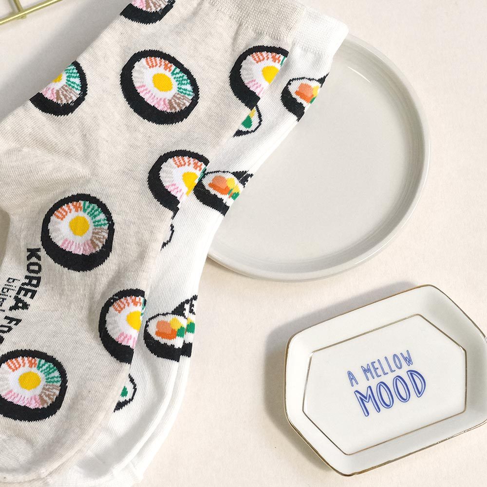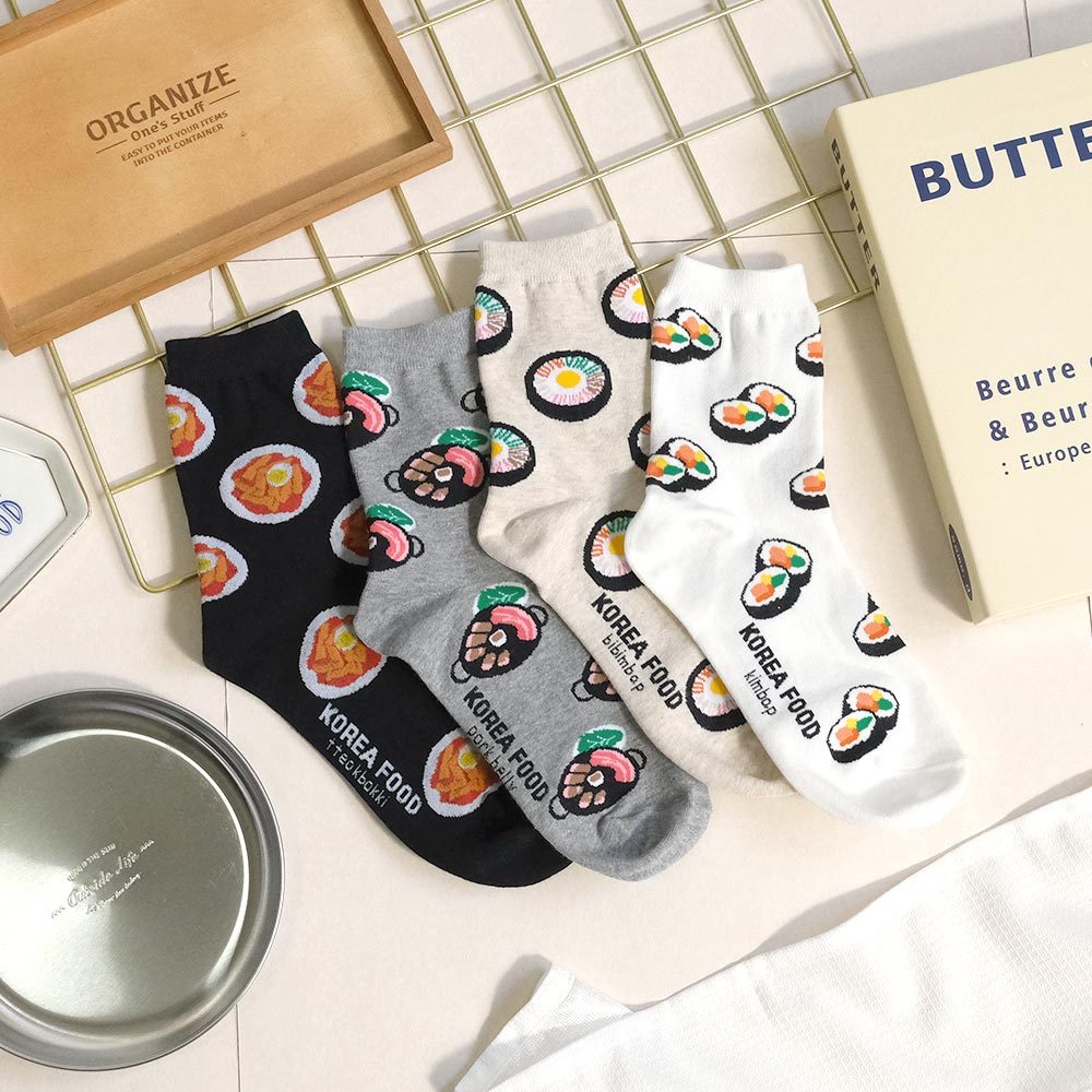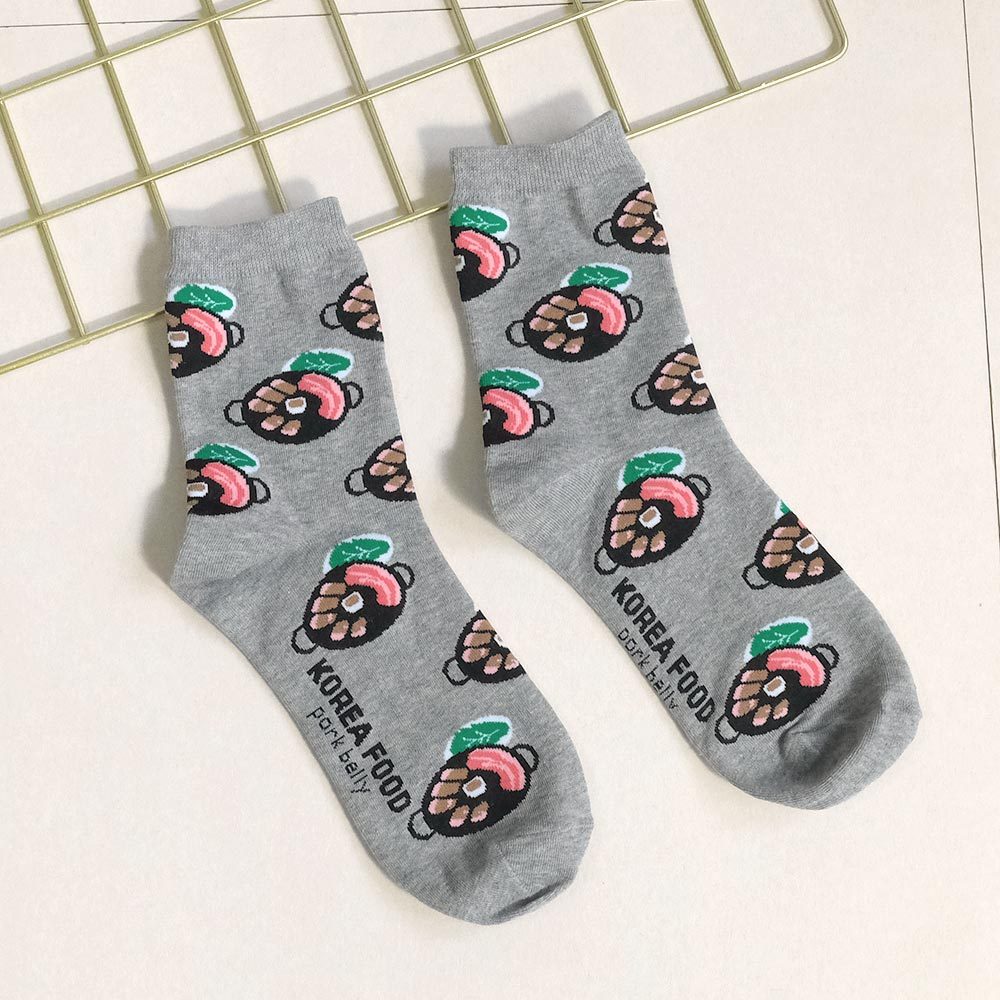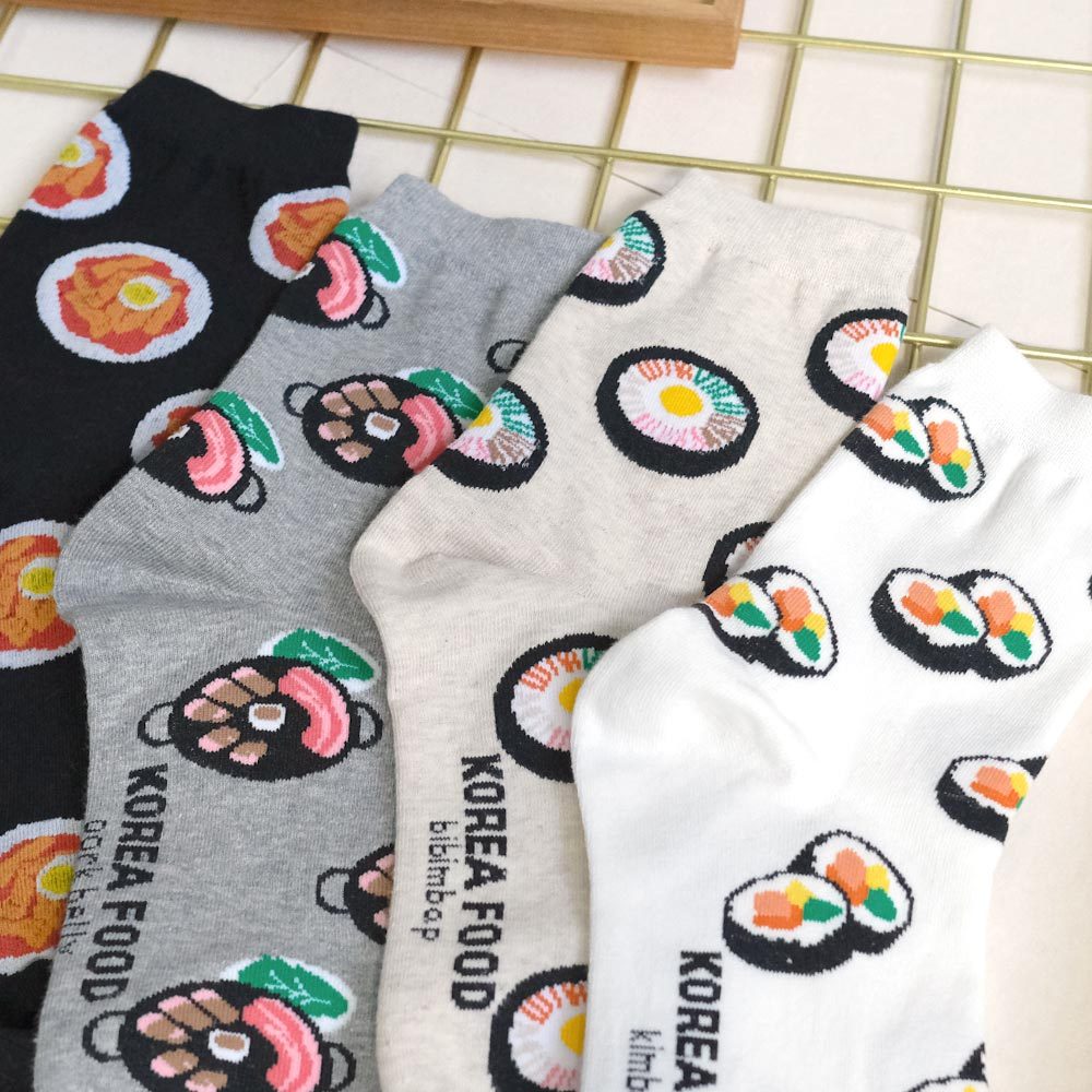 AHUA阿華有事嗎 滿版韓國在地小吃中筒襪 K2272 正韓襪子 百搭純棉襪 韓妞必備 少女襪白底紫菜包飯|米白底石鍋拌飯|灰底韓式烤肉|黑底辣炒年糕SocksAHUA 韓國襪子品牌旗艦店