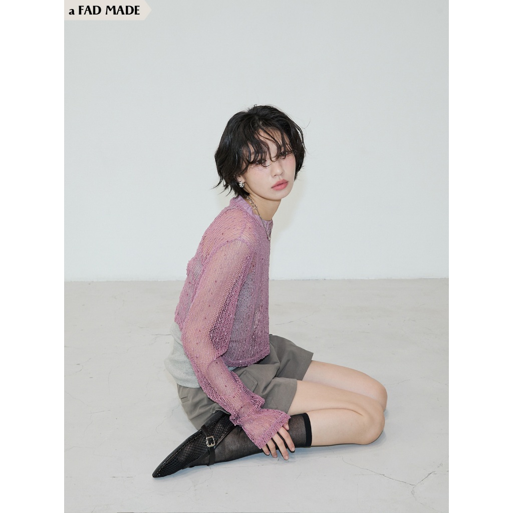 AFAD MADE-鬆弛感補夢網短版罩衫【21010319】米黃|紫羅蘭T-shirtsAFAD TW