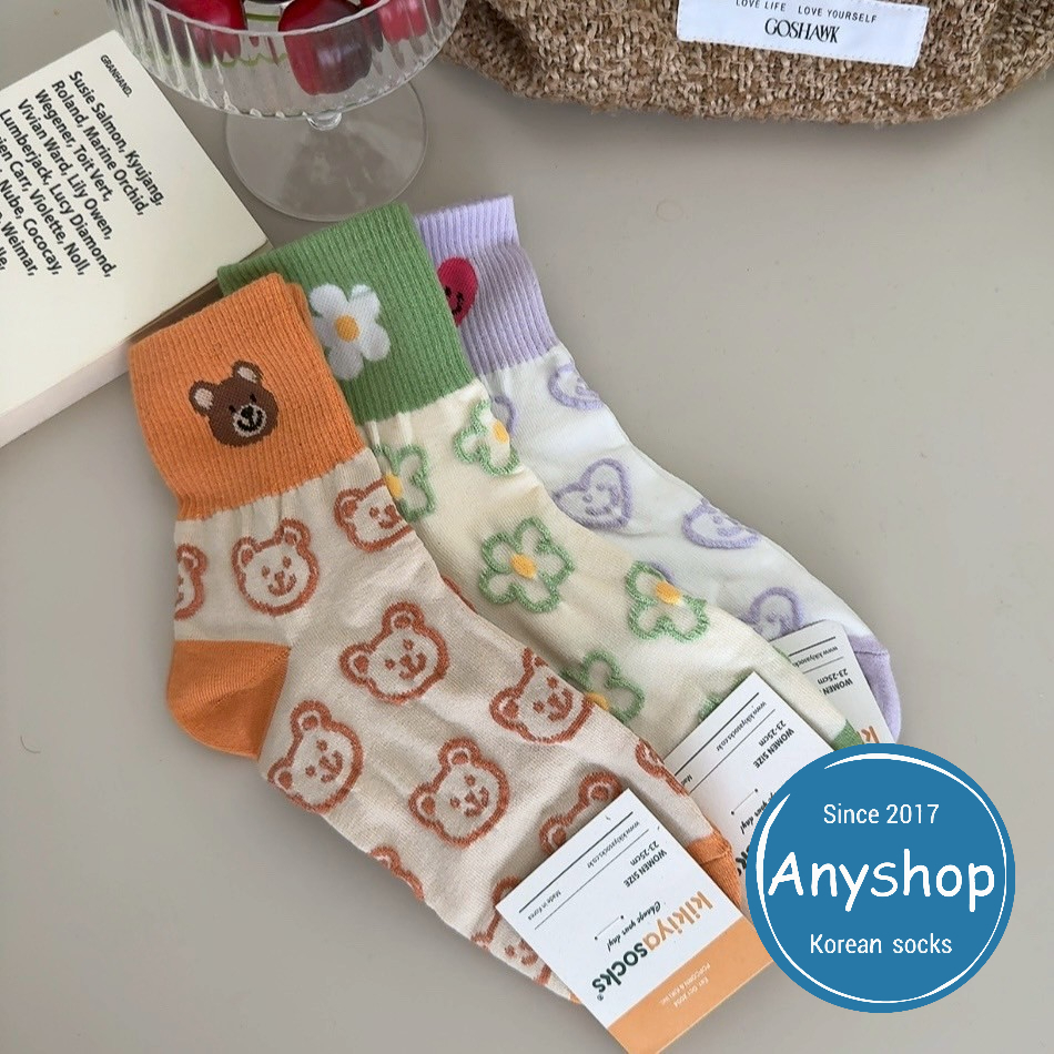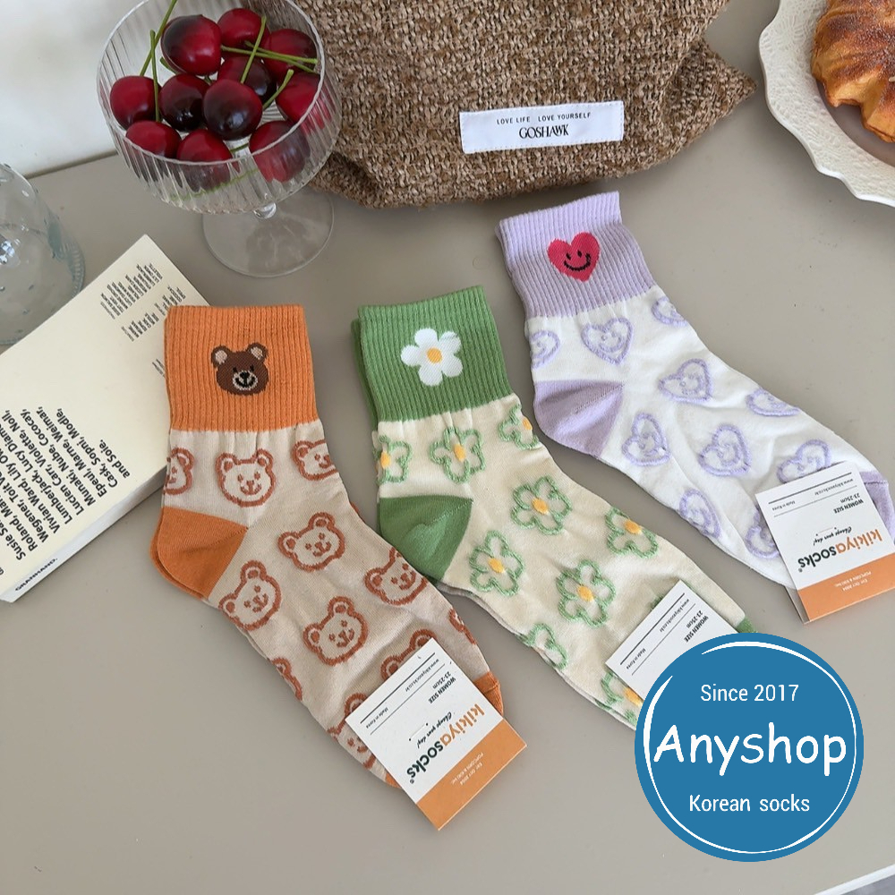 Anyshop韓國襪 貼圖浮雕襪 女孩精選 動物 韓國襪 韓國女襪 韓襪 熊熊 花花 愛心 03802綠底花花【03802】|紫色底愛心【03802】|橘底熊熊【03802】SocksAnyshop韓國襪專賣 | 零售 | 團購 | 批發