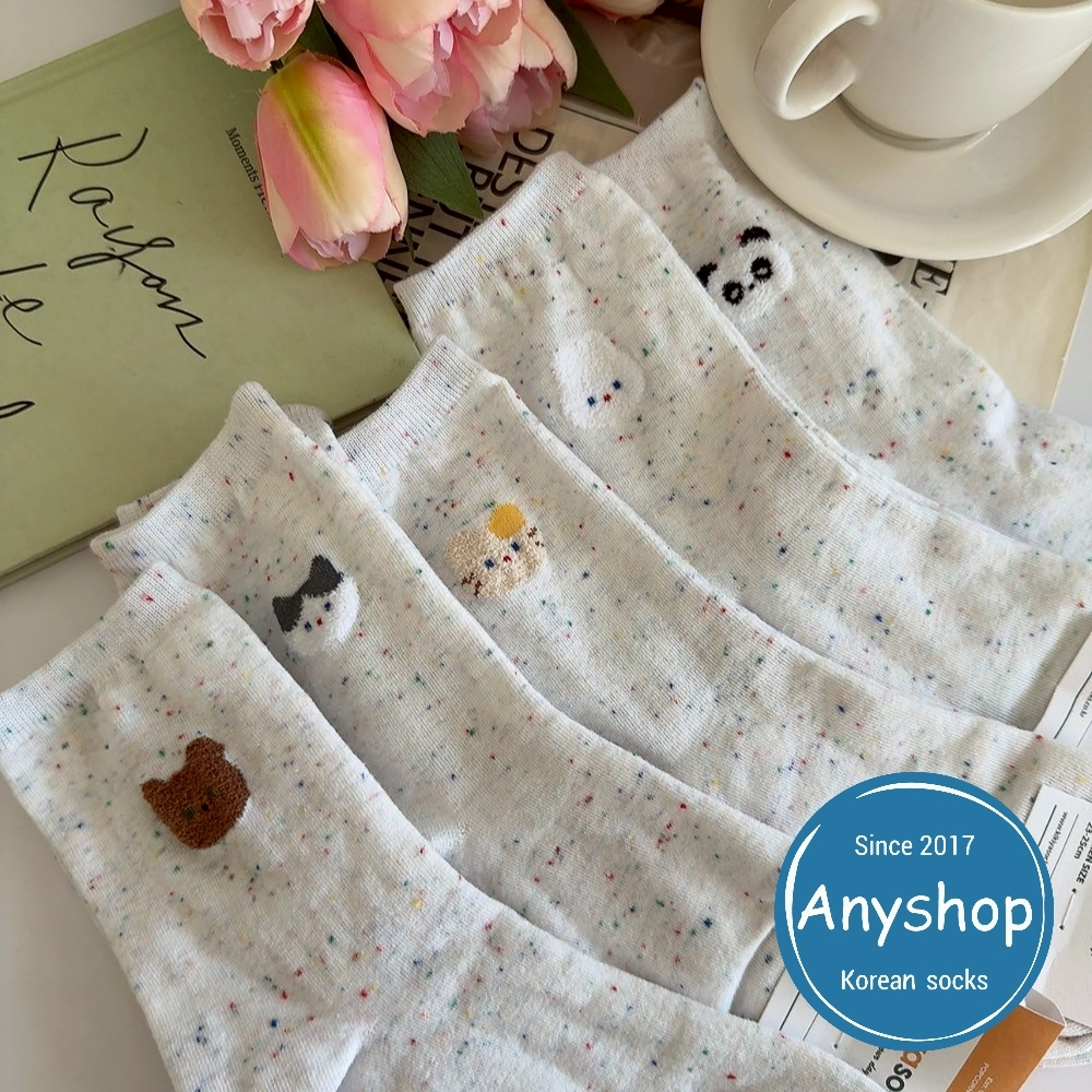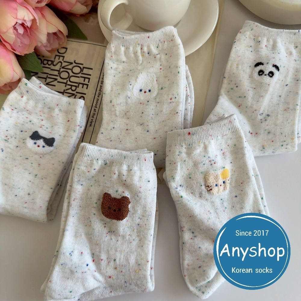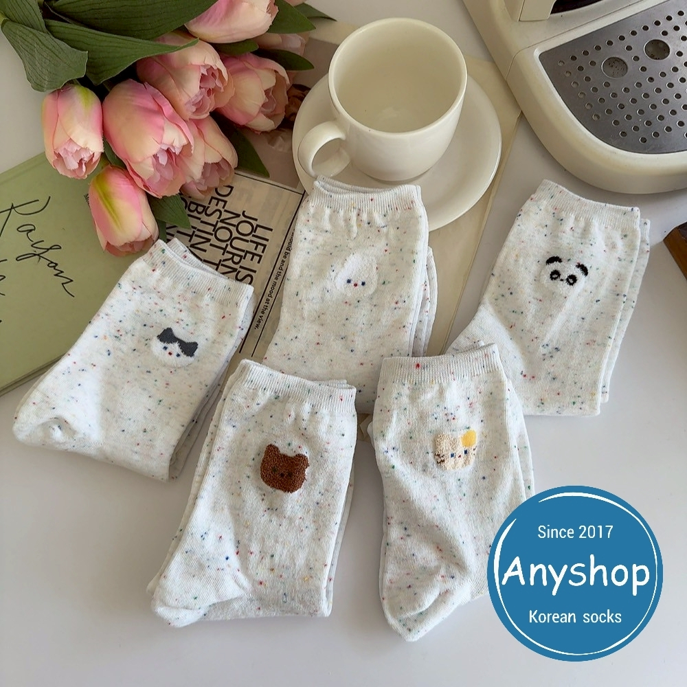Anyshop韓國襪 彩色點點動物襪 動物襪 點點 熊貓 貓咪 兔子 長襪 中筒襪 韓國襪子 女生襪 女襪 07801