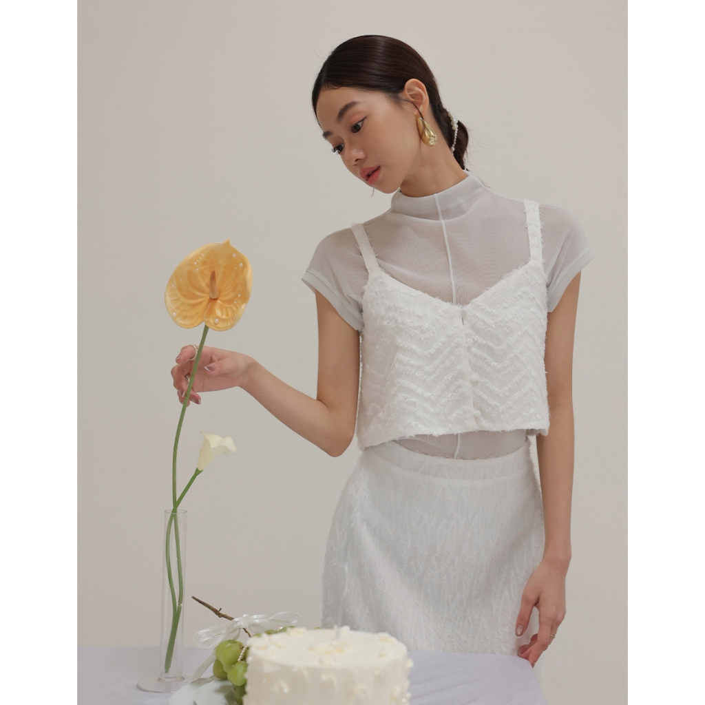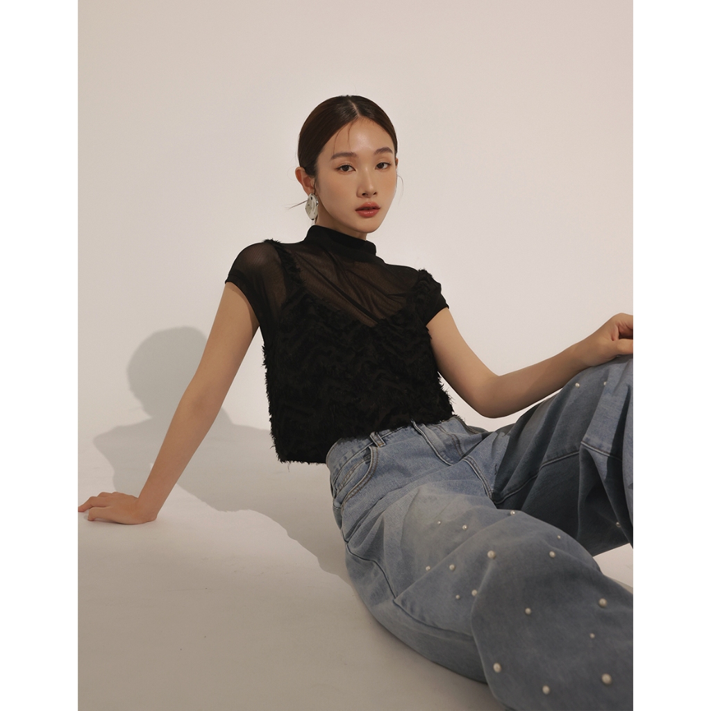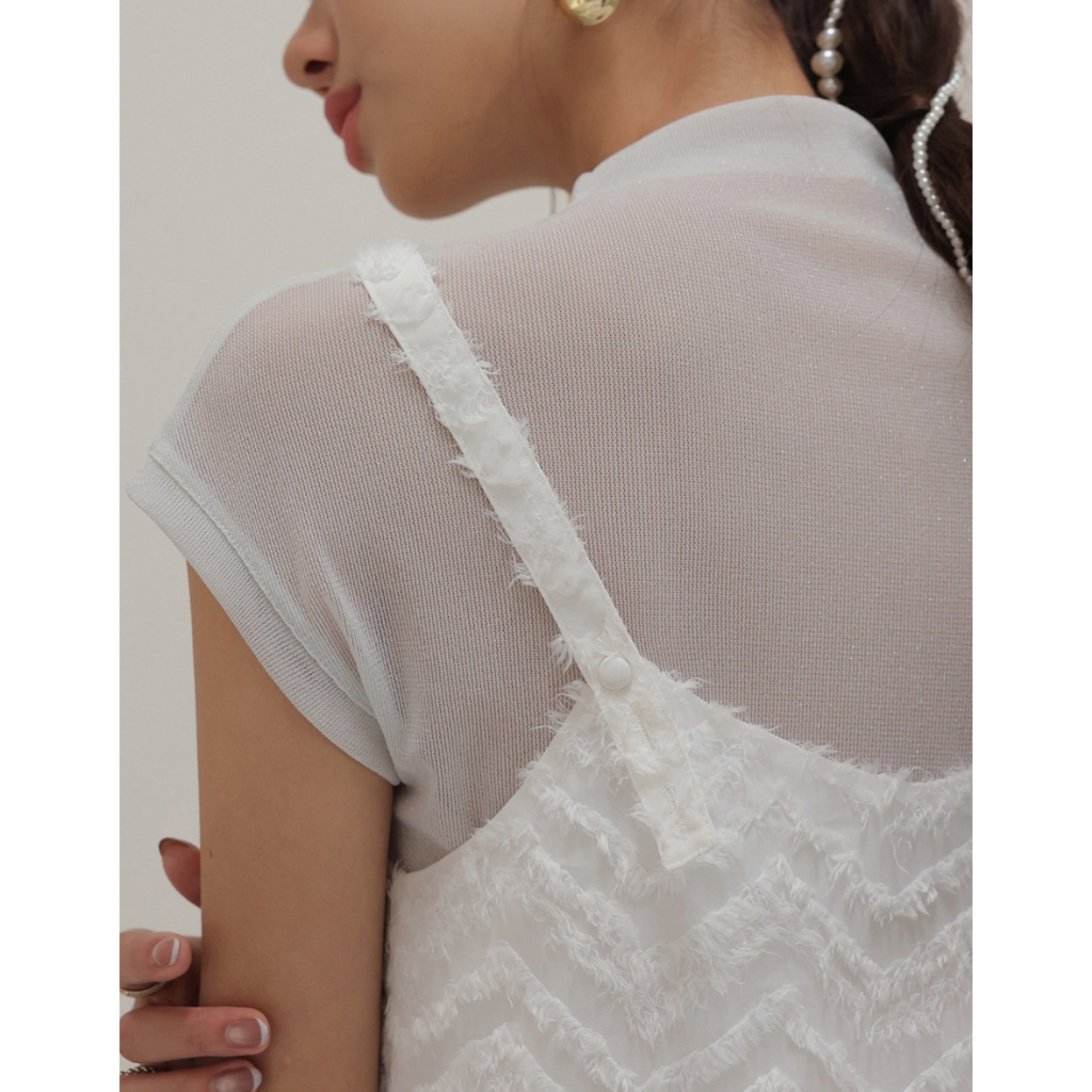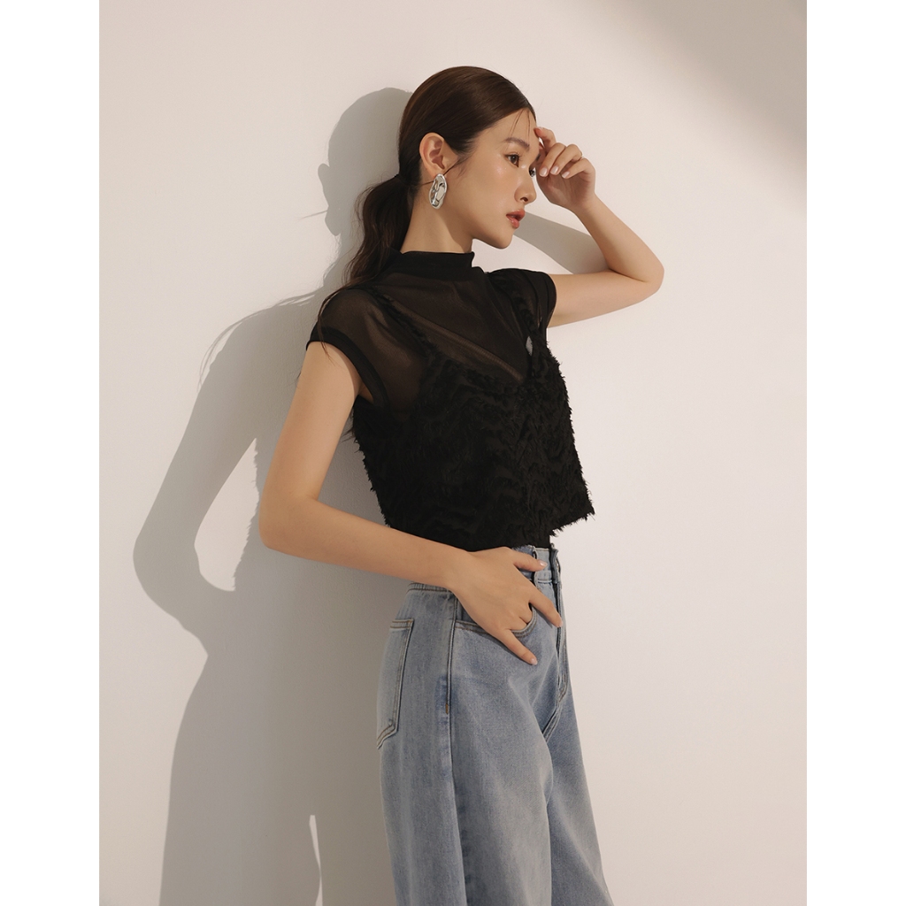 CHIC A SPACE 半高領透肌上衣波紋羽毛背心套裝(黑/白) 女裝 現貨黑,S|黑,M|黑,L|白,S|白,M|白,LIndividual SetsAIR SPACE