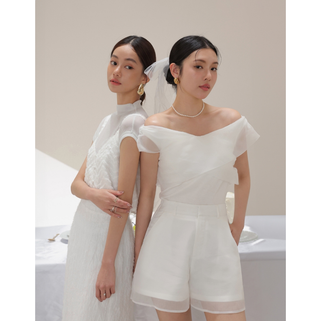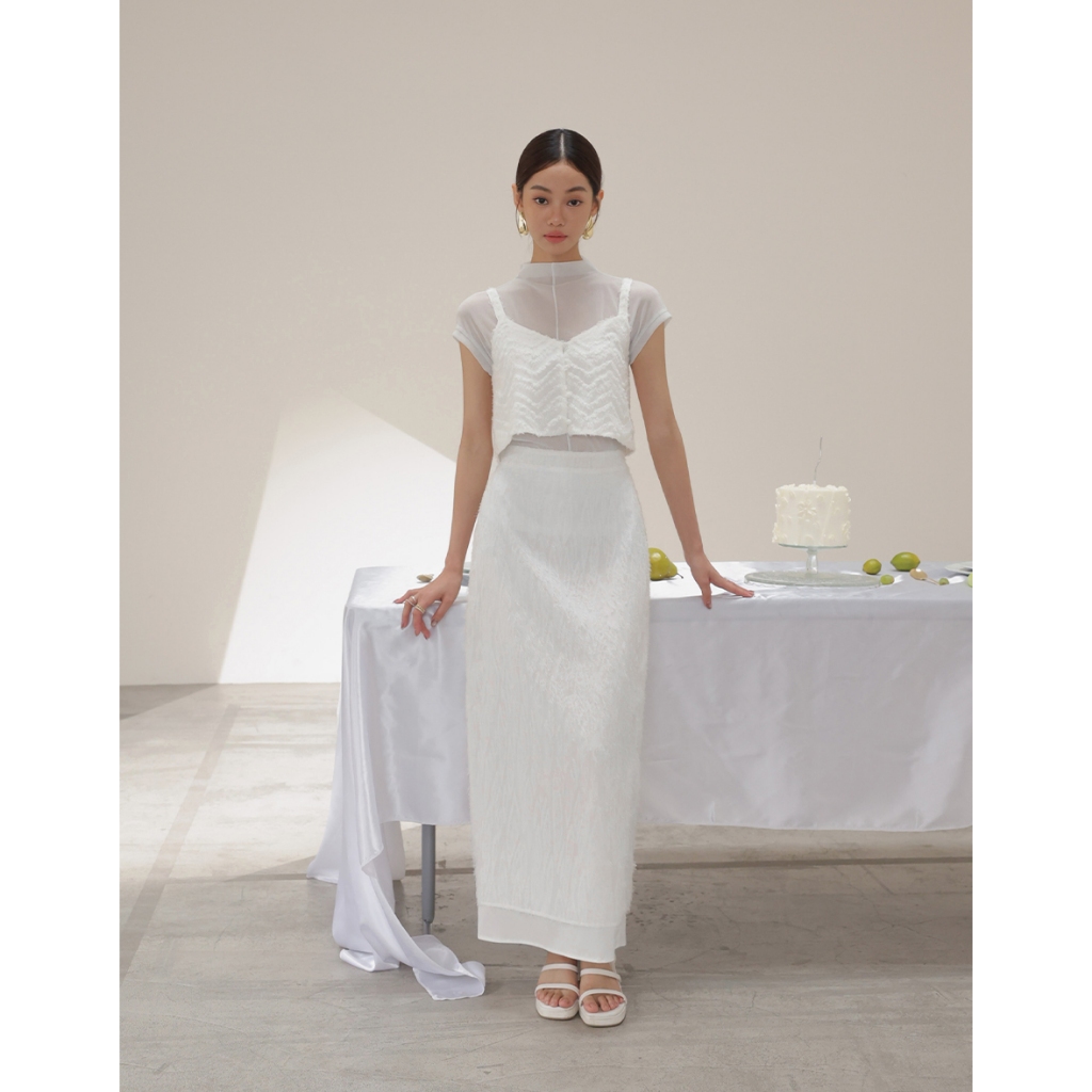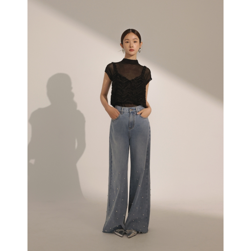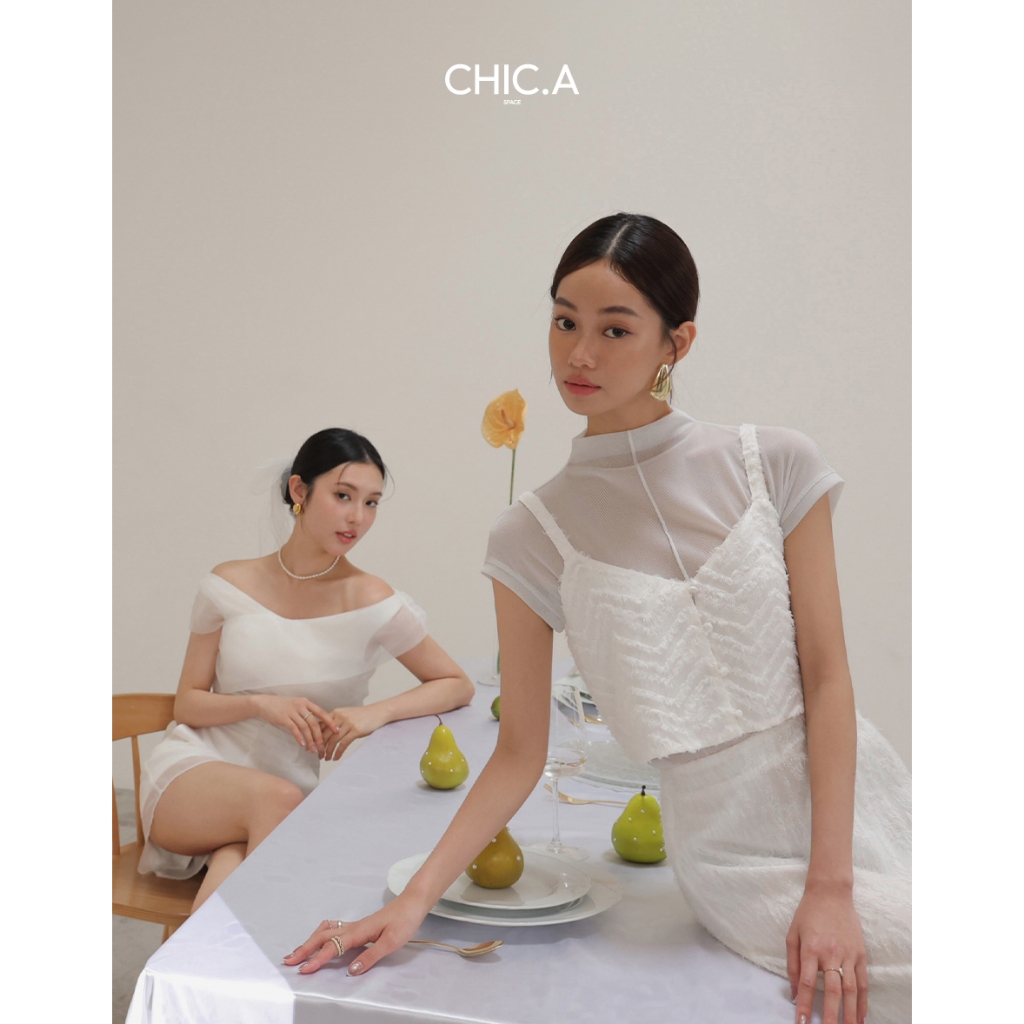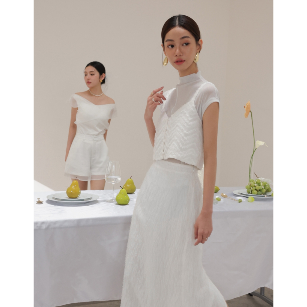 CHIC A SPACE 半高領透肌上衣波紋羽毛背心套裝(黑/白) 女裝 現貨黑,S|黑,M|黑,L|白,S|白,M|白,LIndividual SetsAIR SPACE