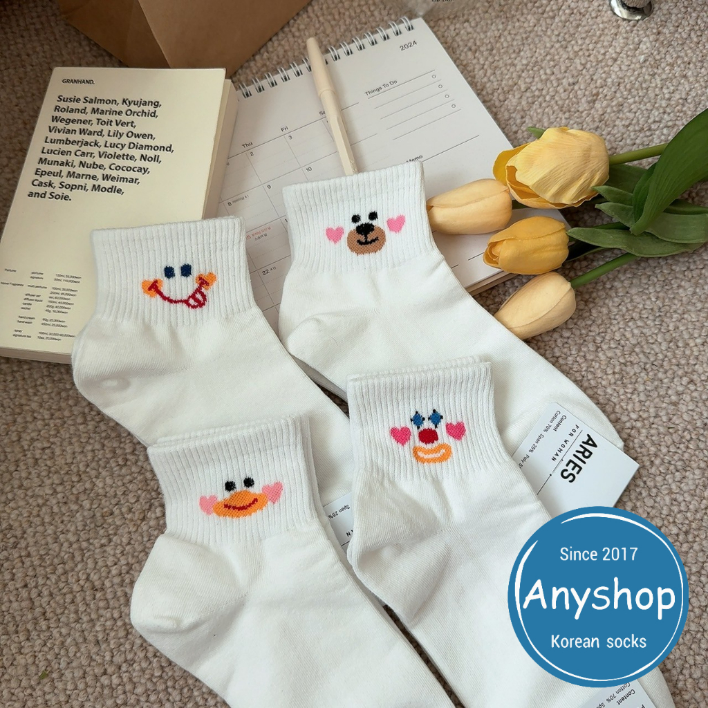 Anyshop韓國襪 可愛表情襪 韓國襪 踝襪 表情襪 熊熊 小丑 吐舌 鴨子 女襪 女孩襪 韓國襪子03703
