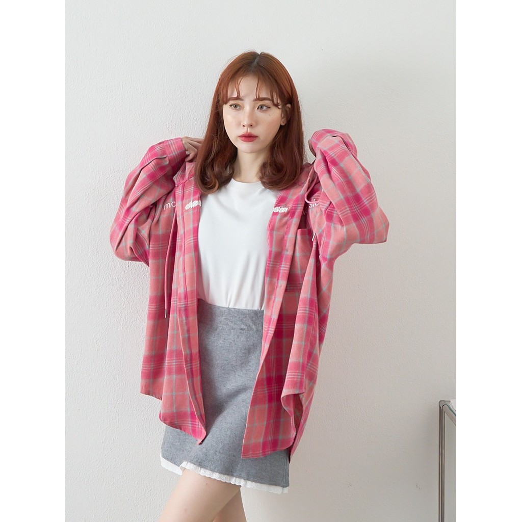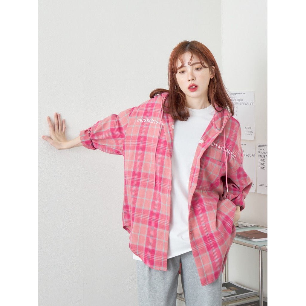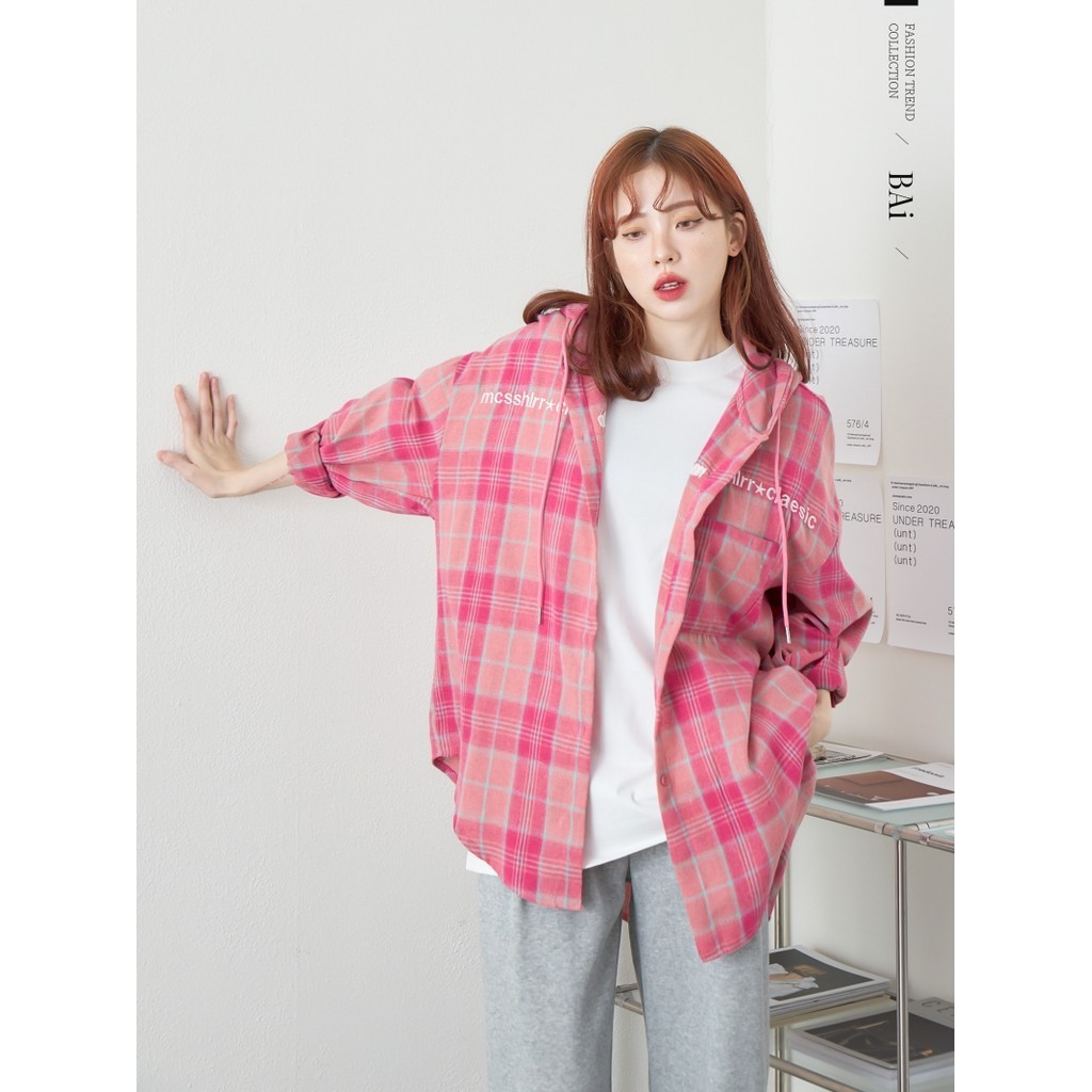 BAi白媽媽 整排印字格紋連帽襯衫/單口袋長袖開衫-台灣現貨 隔日到貨【350009】粉(13)Shirts & BlousesBAi白媽媽 品牌旗艦店