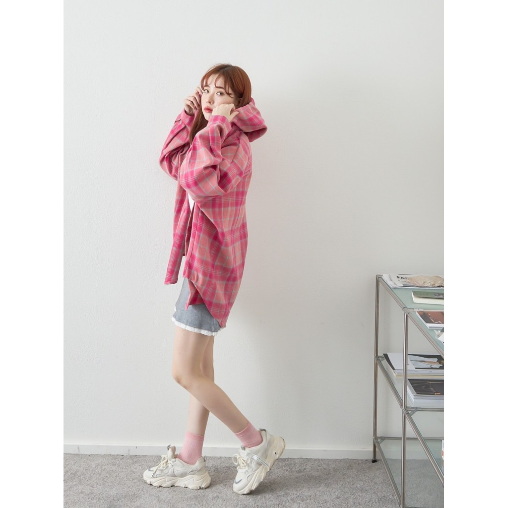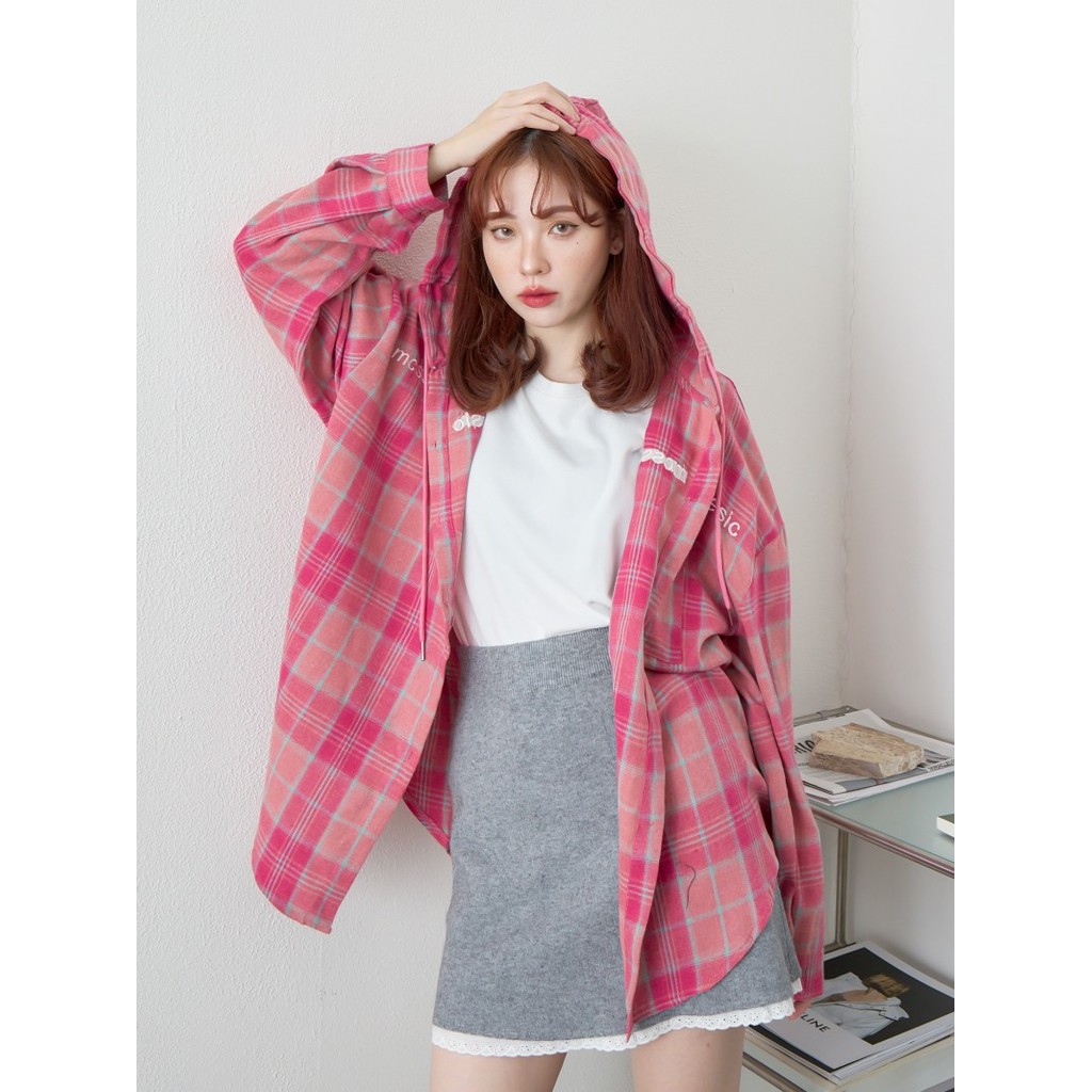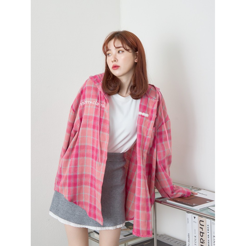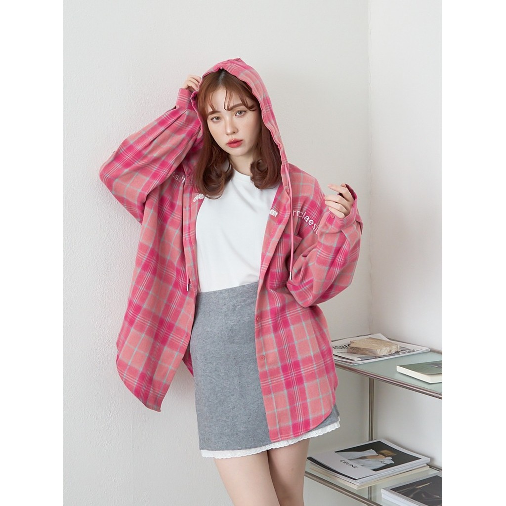 BAi白媽媽 整排印字格紋連帽襯衫/單口袋長袖開衫-台灣現貨 隔日到貨【350009】粉(13)Shirts & BlousesBAi白媽媽 品牌旗艦店